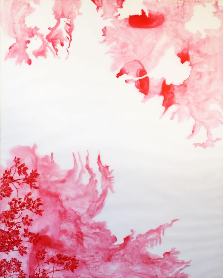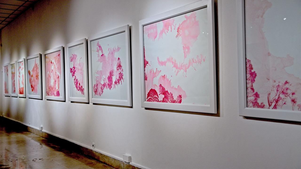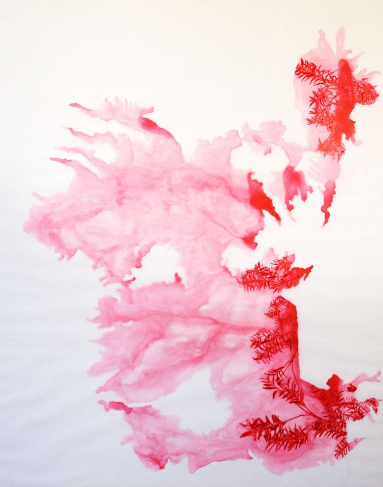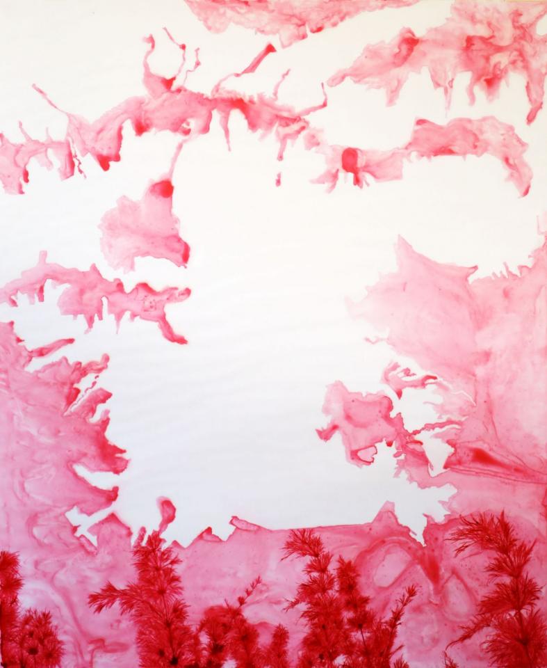 Ce dessein est repris dans les encres rouges des cartes micellaires où fourmillent de minuscules fractales d’une possible renaissance. L’artiste veut sensibiliser sur l’urgence de redessiner et de rêver à des territoires fertiles, de la couleur du vivant.