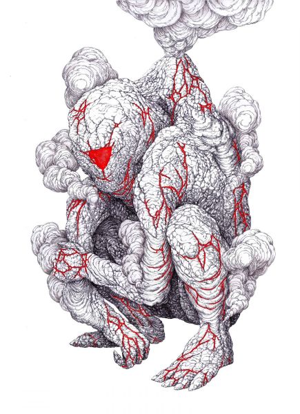 « Les géants s’organisent et apparaissent par séries : cosmologiques, telluriques, nébuleux. De pierre, de nuage, de planètes ou de cristaux, de pelage, ils suscitent une paréidolie inversée : on ne voit plus de silhouette dans les nuages, ou comme Malcolm de Chazal un corps de géant dans la pierre, mais la pierre dans le corps, le brouillard dans l’âme errante, le prisme dans la créature archaïque. »