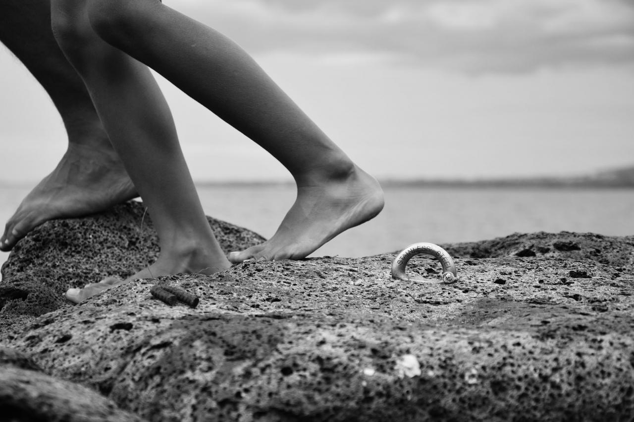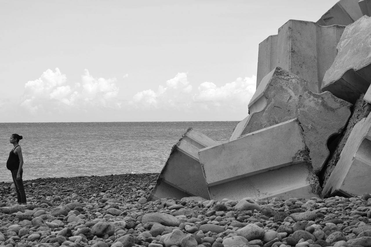 Trace de la performance Cent titres, Étang-Salé-les-Bains, 2015.Photo © Jérôme Chéreau