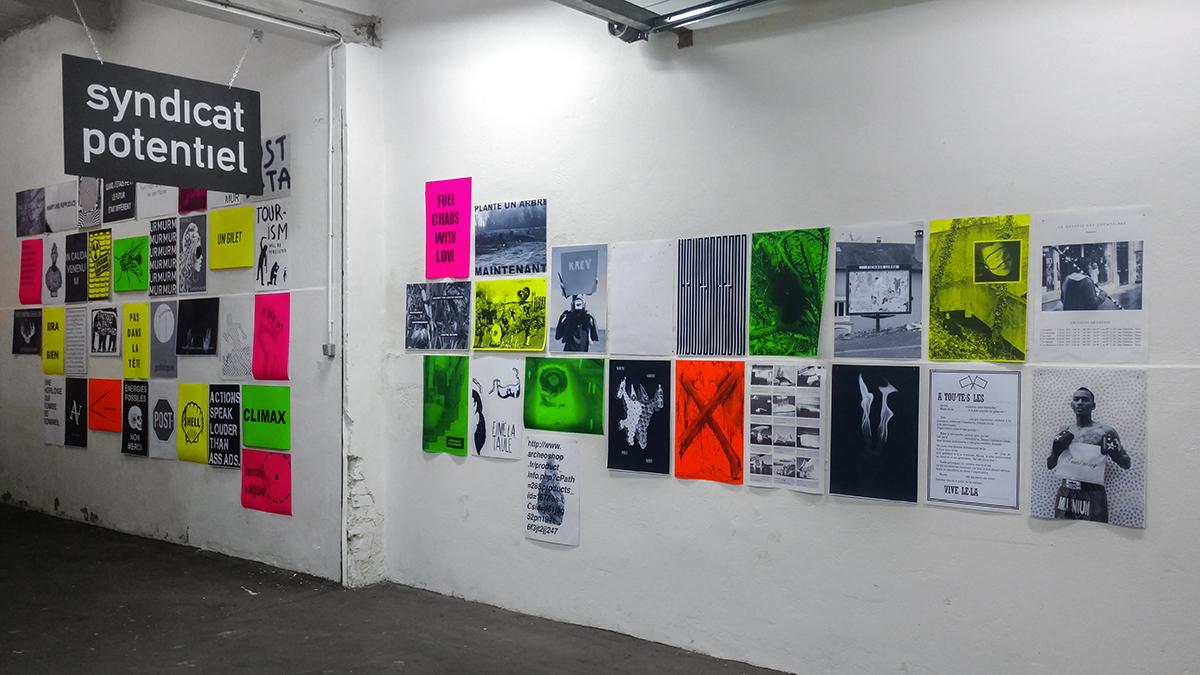 Vue de l’exposition Post-Posters, commissariat Antonio Gallego et Mathieu Tremblin, Syndicat Potentiel, Strasbourg.