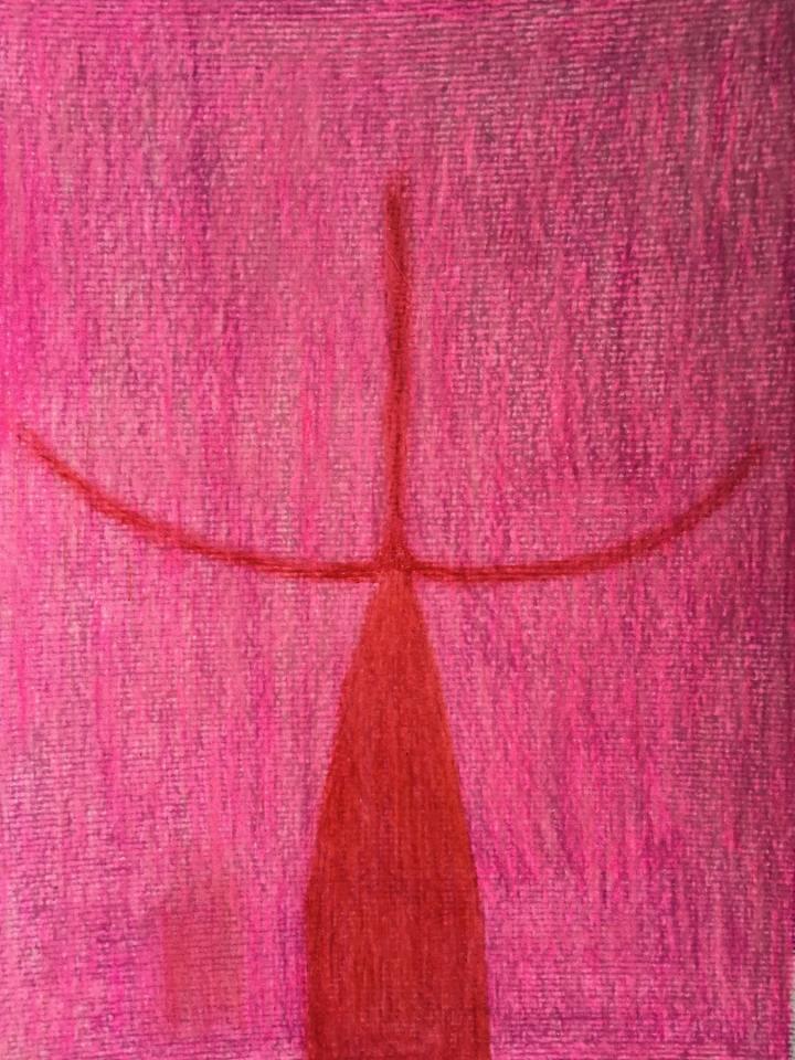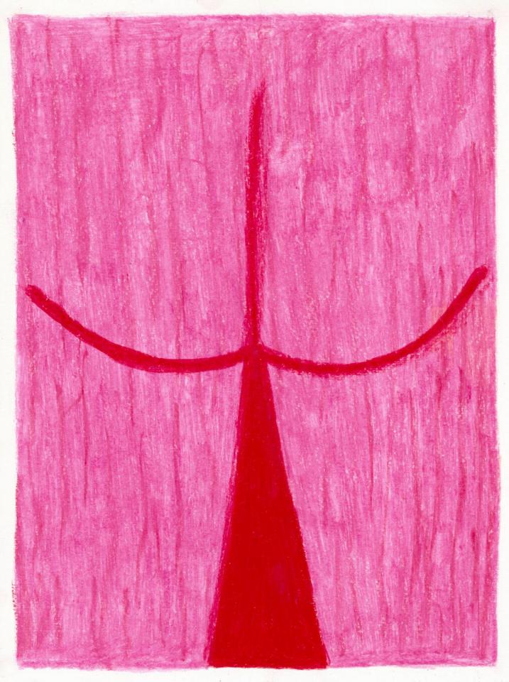 Pastel et crayon de couleur sur papier, 24 x 32 cm.