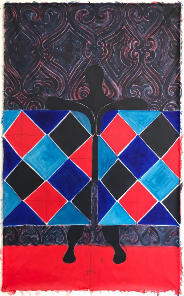 Acrylique, huile et pigments sur toile, 150 x 90 cm.