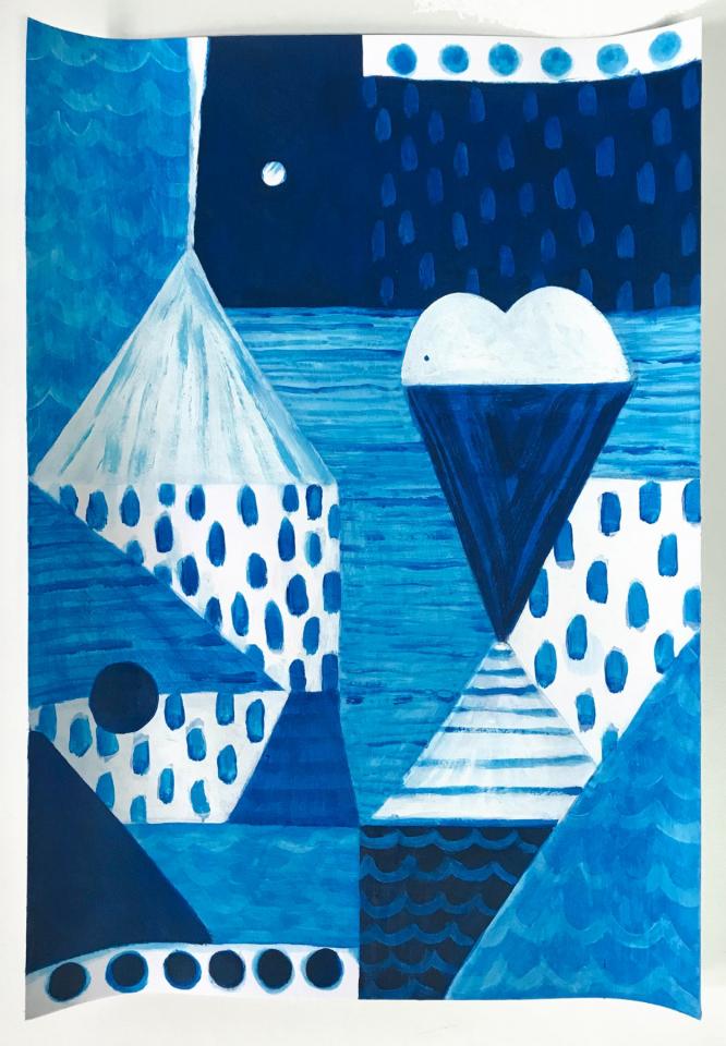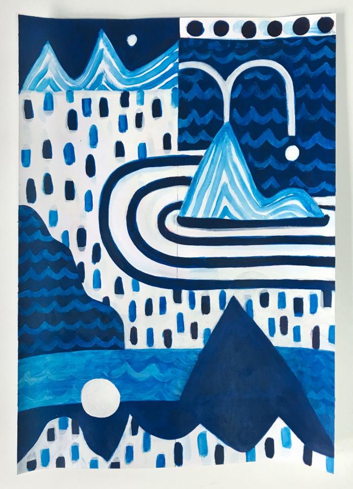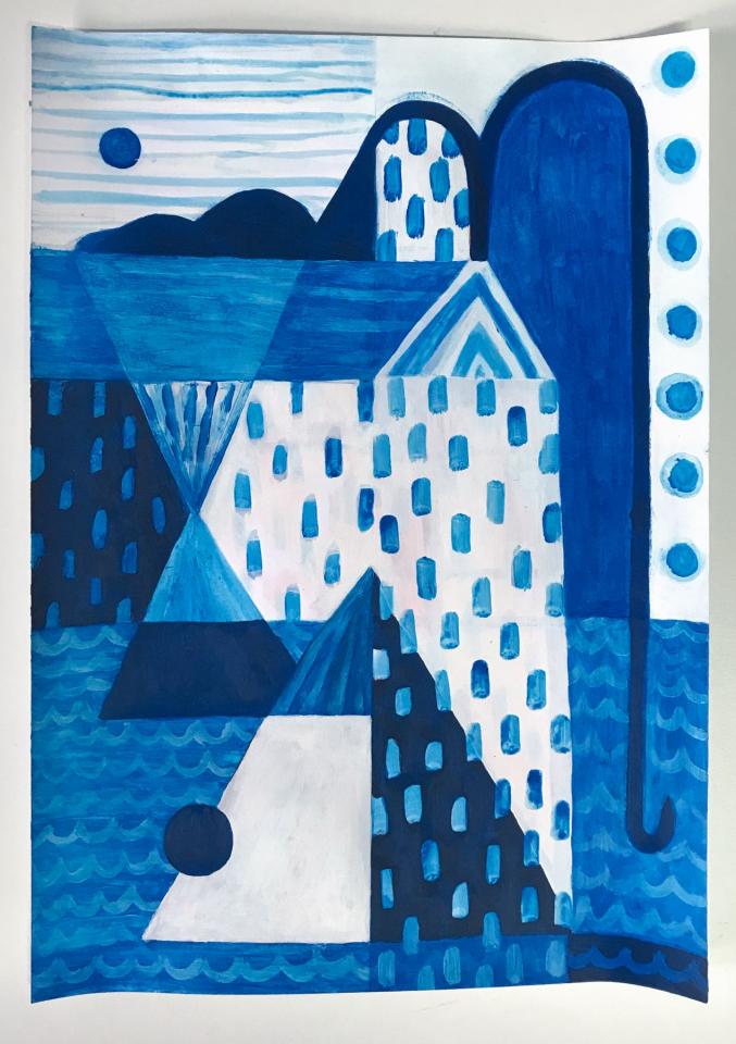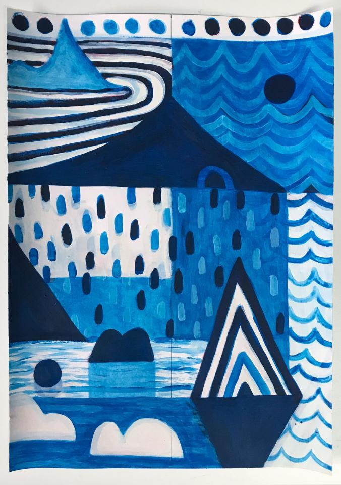 9 peintures, acrylique sur papier, 29,7 x 42 cm.
