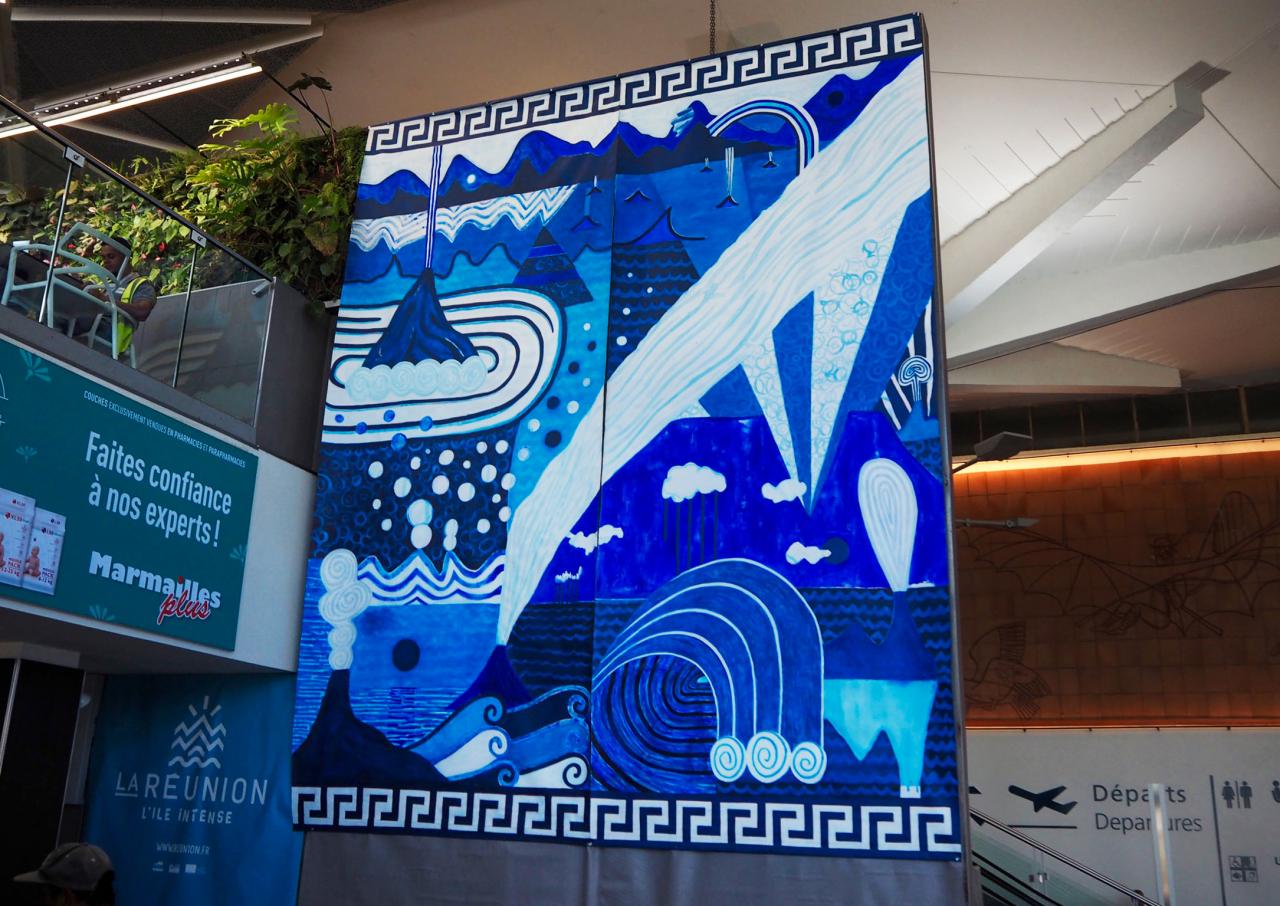 Exposition collective Voyage intérieur I, commissariat Modely Thibaud avec le Fonds Réunion des Talents, Aéroport Roland Garros, Saint-Denis, La Réunion, 2024.