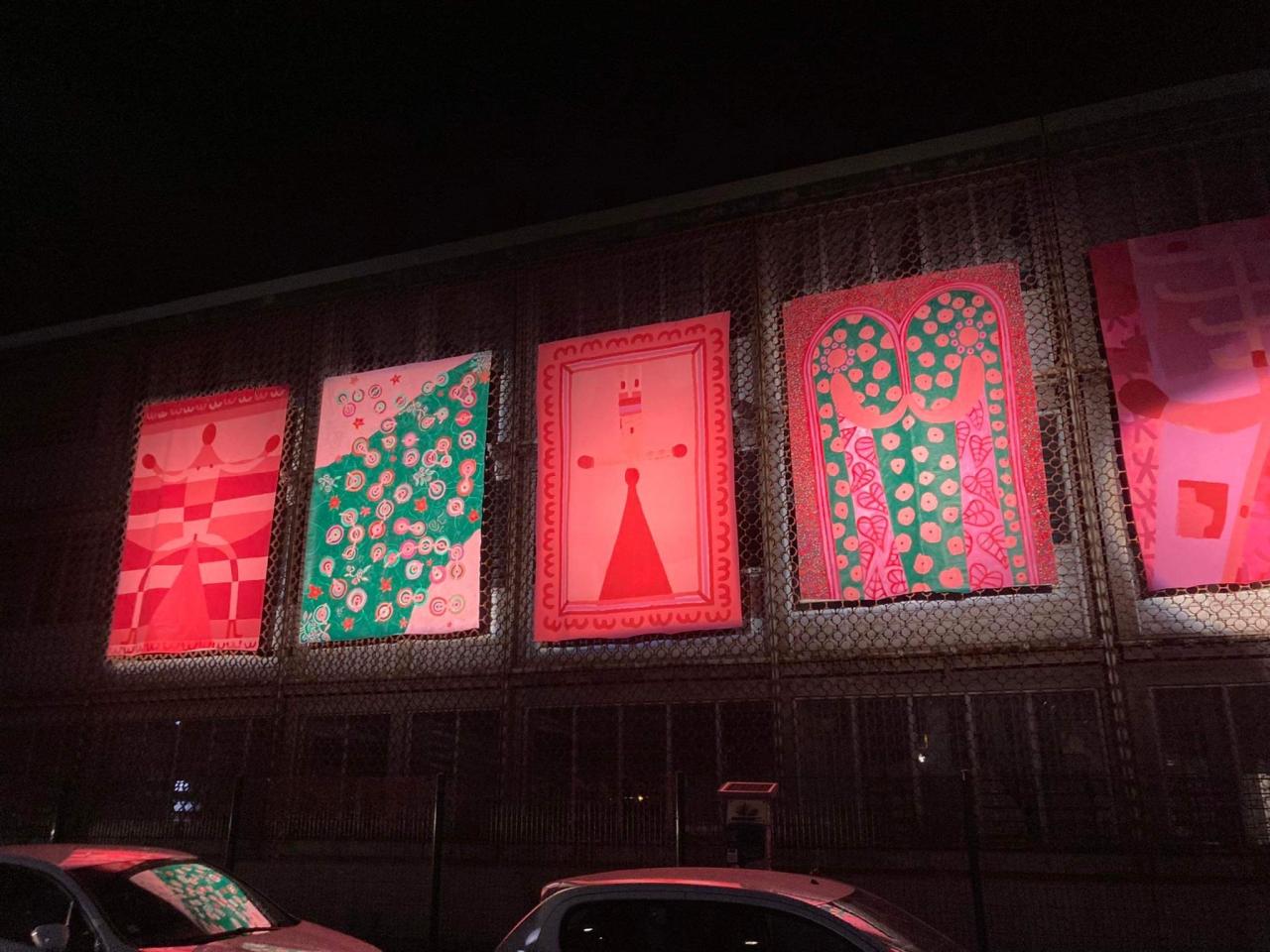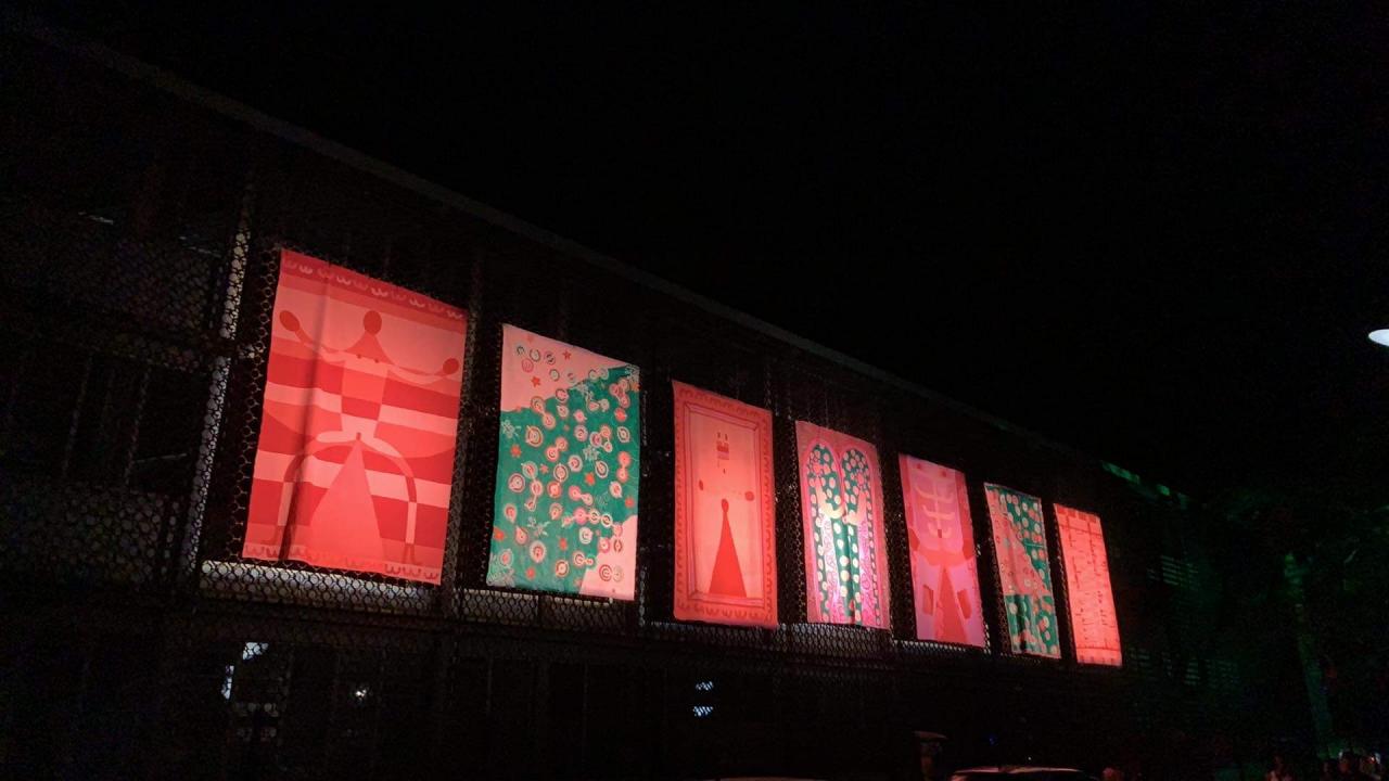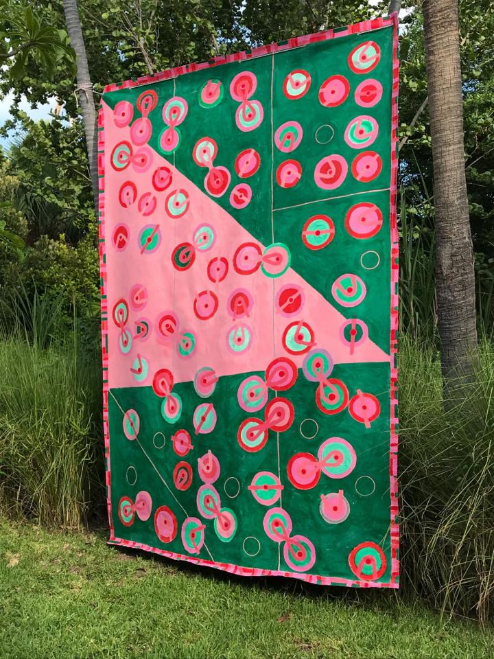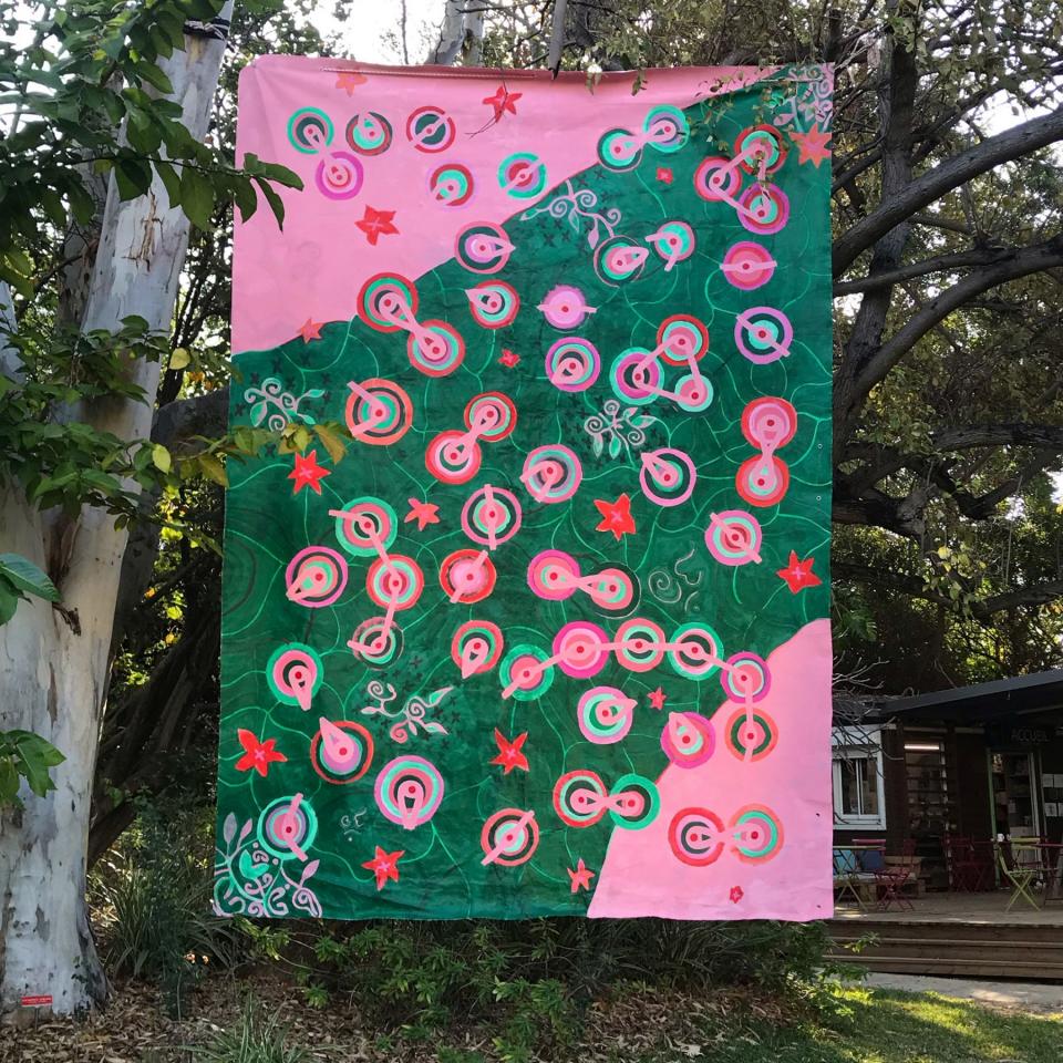Le bal des folles Le bal des folles, 2021Acrylique sur toile de coton libre, 280 x 400 cm.Résidence au Jardin d’Éden, Saint-Gilles, La Réunion, 2021. Festival Kromali, Saint-Paul, La Réunion, 2021.