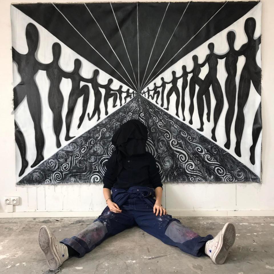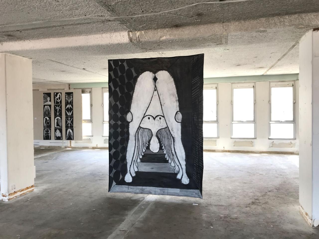 Ensemble de peintures, acrylique et encre sur toile, dimensions variables.