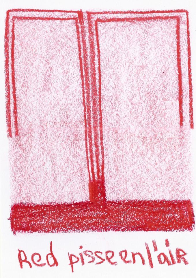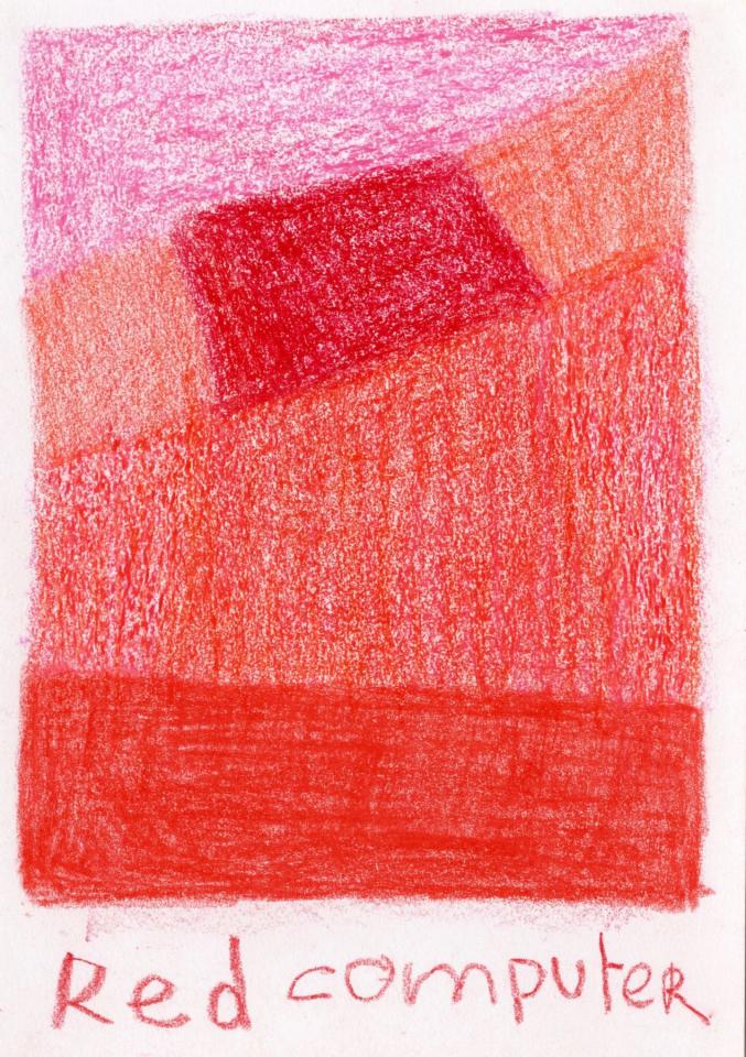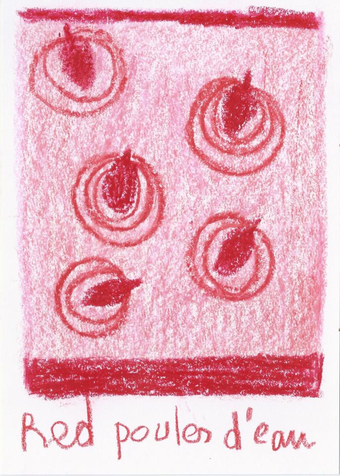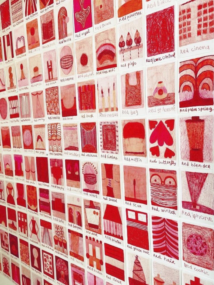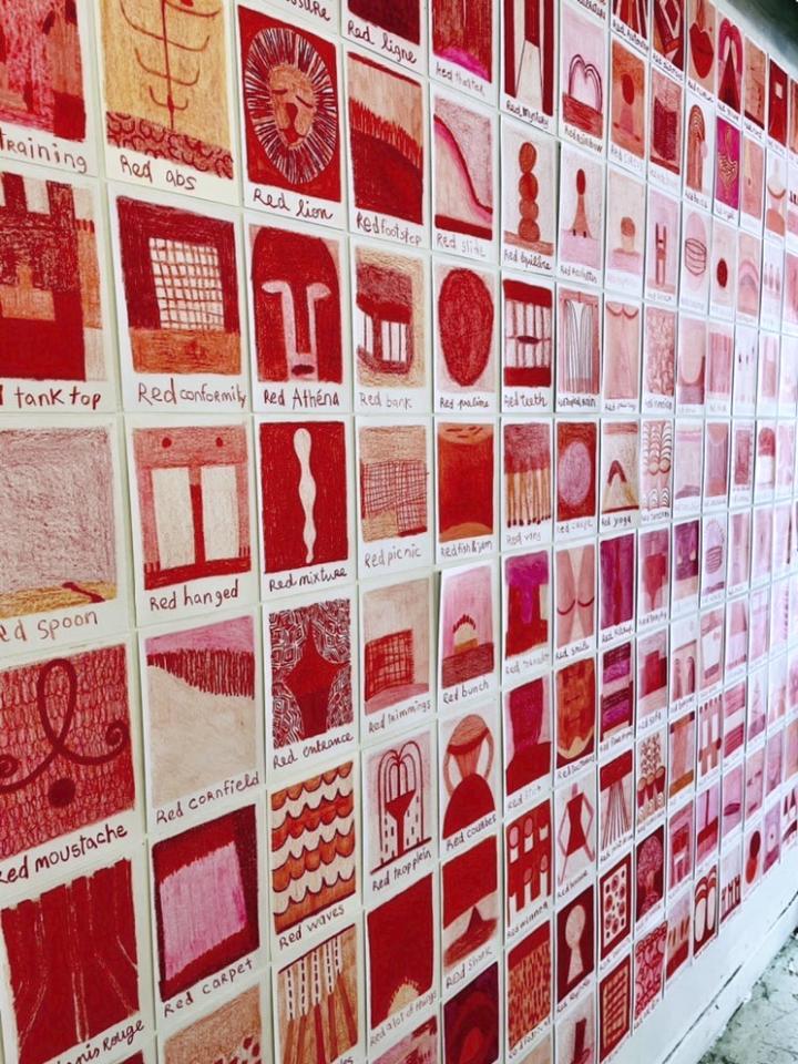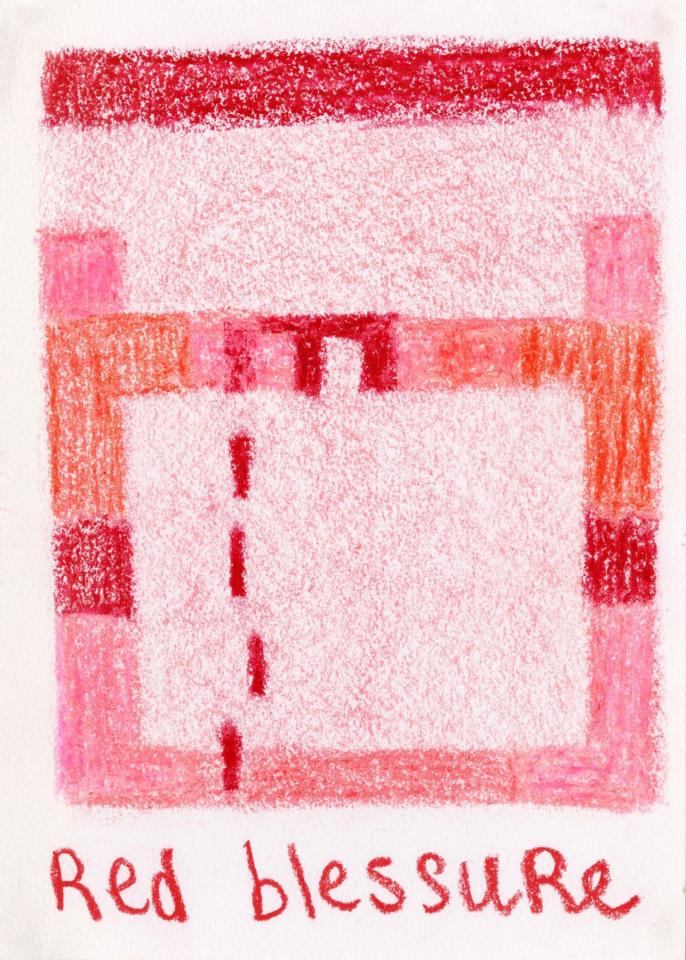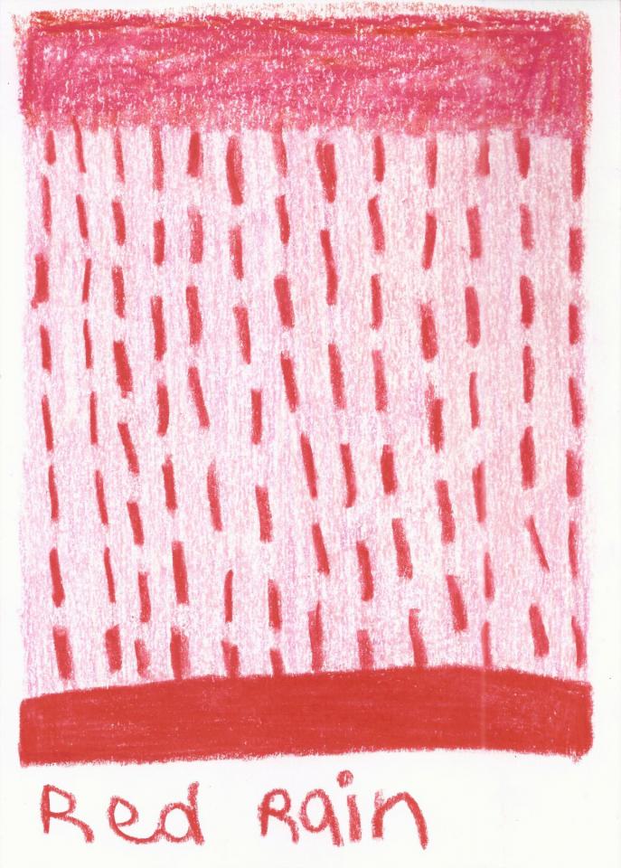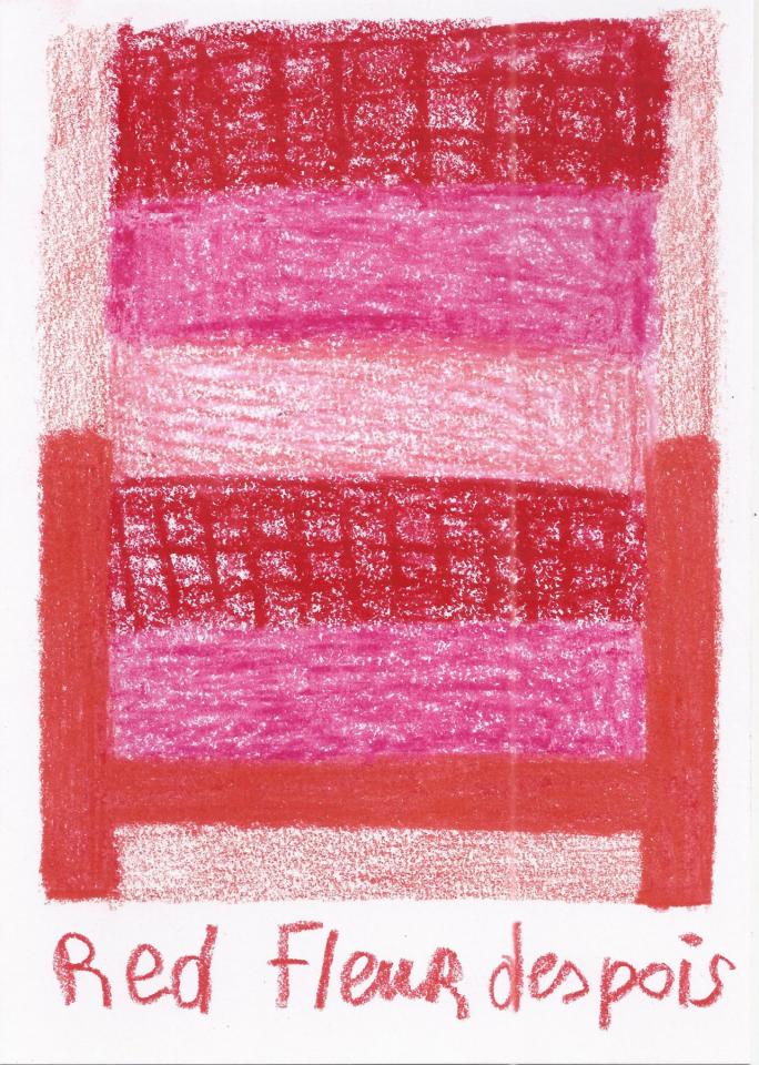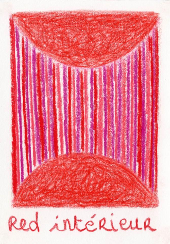 Corpus de dessins, crayon de couleur et pastel sur papier, 14,8 x 21 cm.