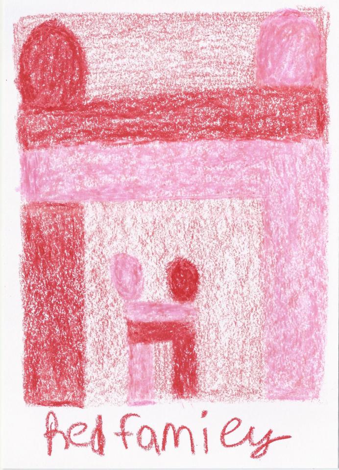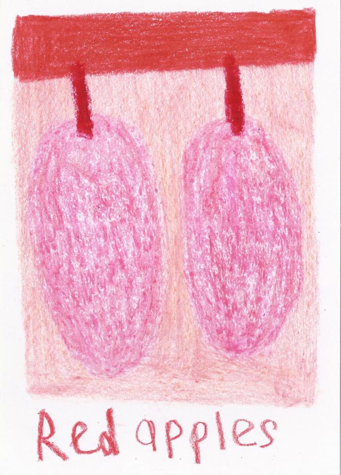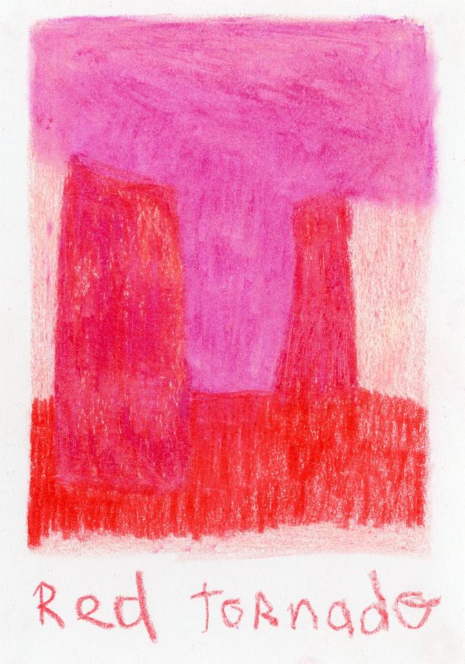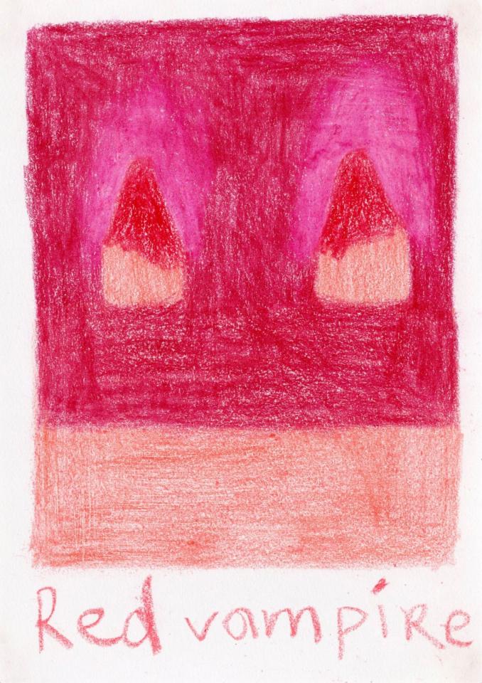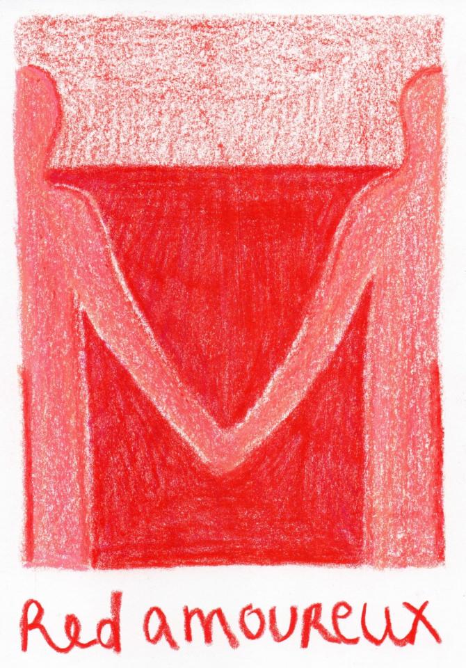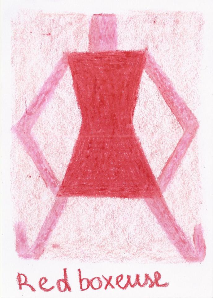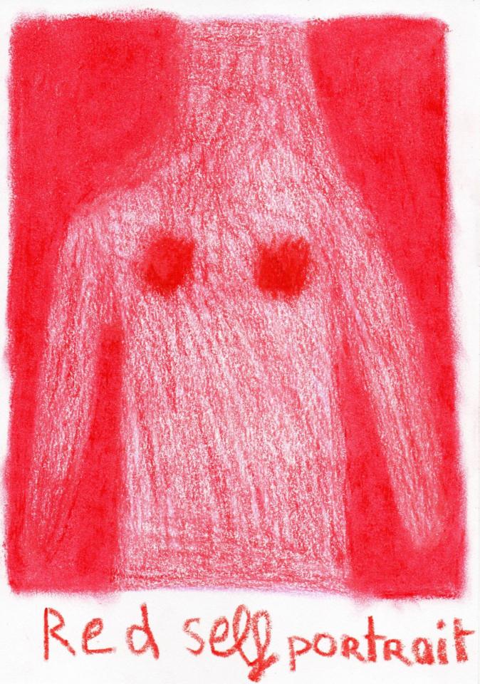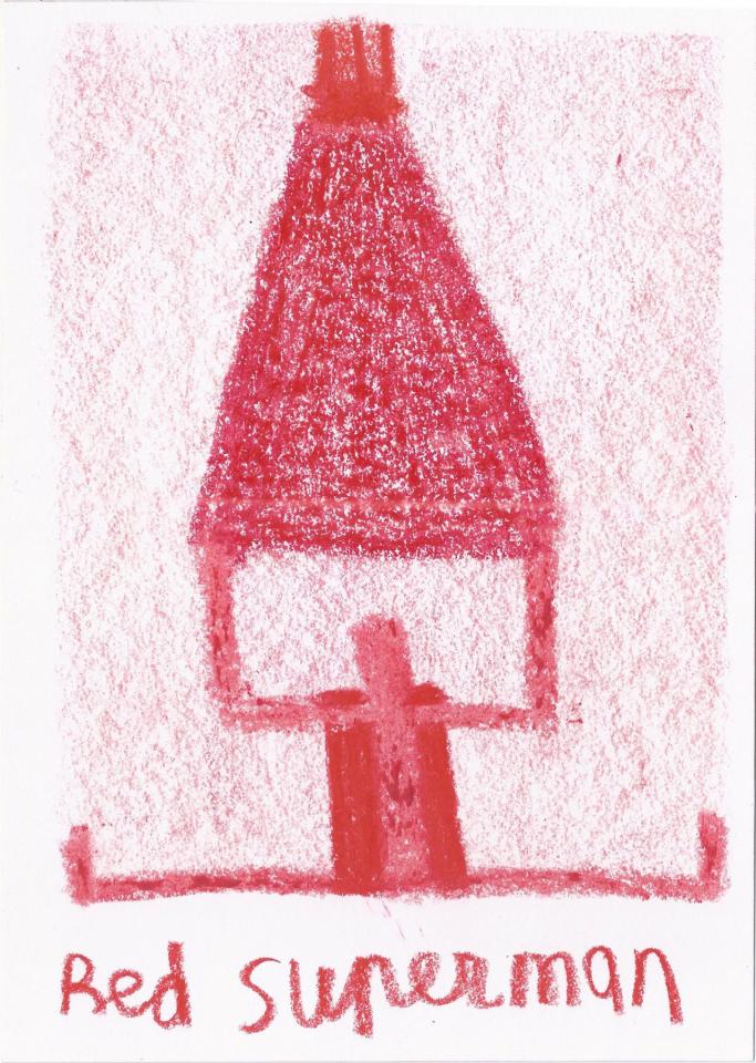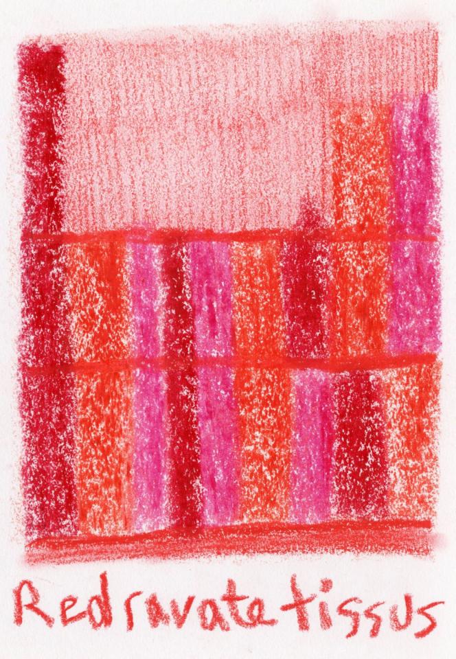 Corpus de dessins, crayon de couleur et pastel sur papier, 14,8 x 21 cm.