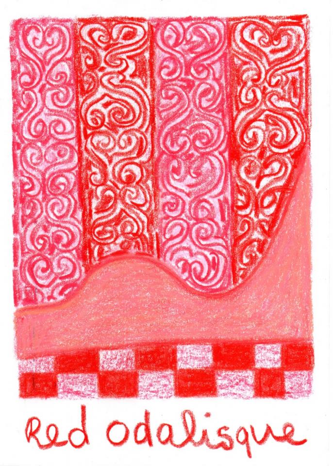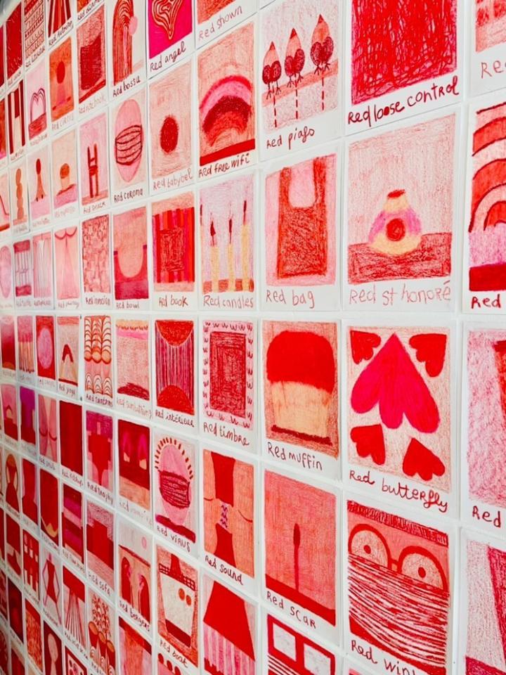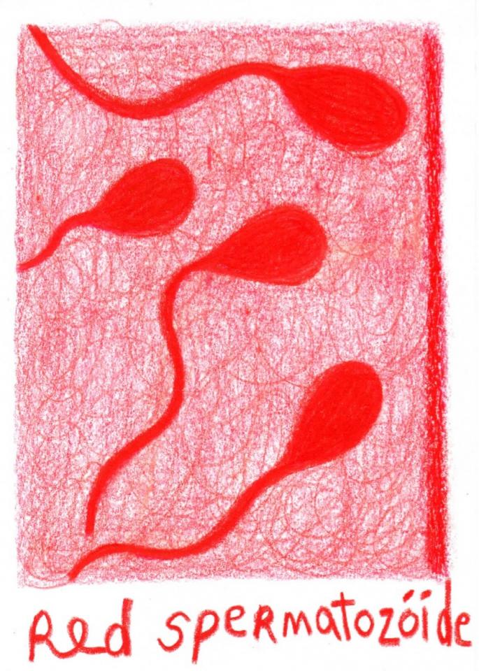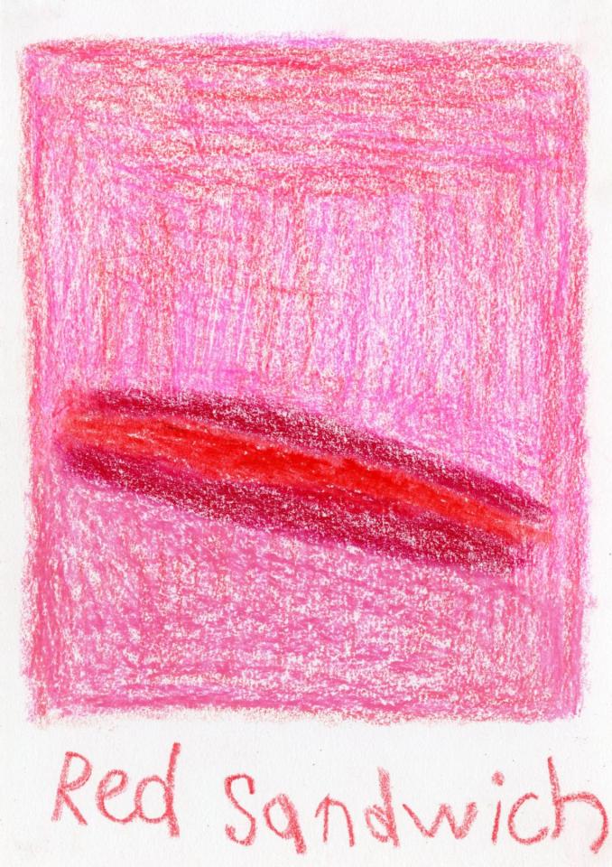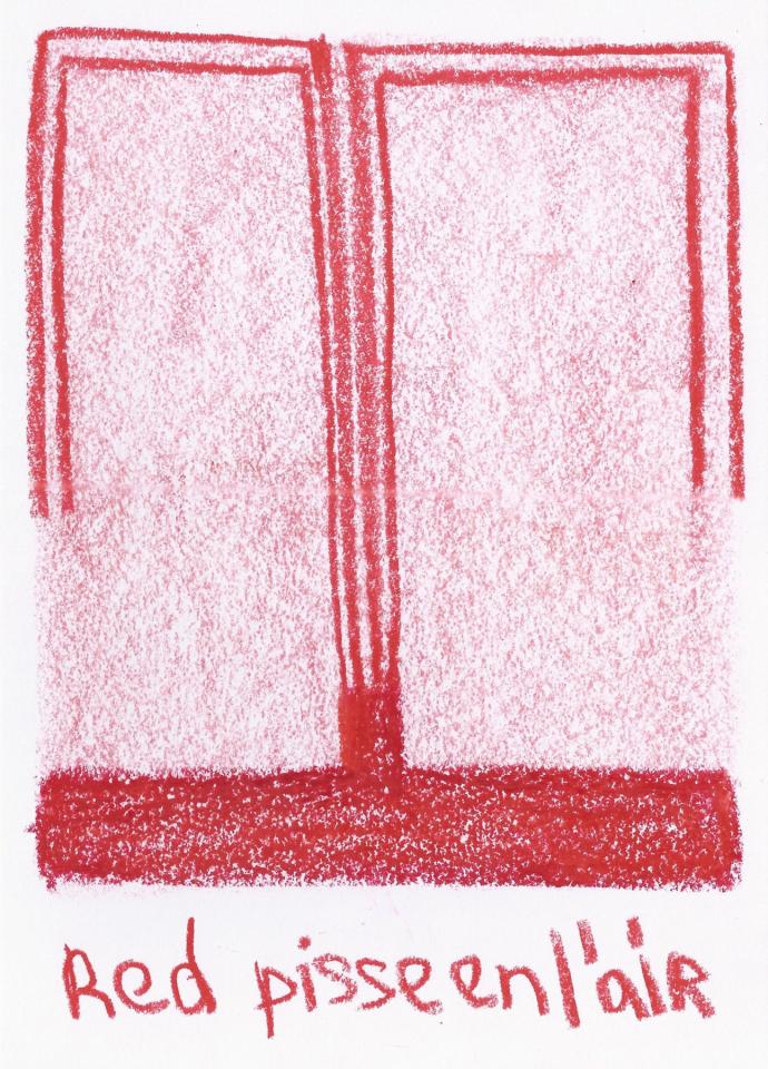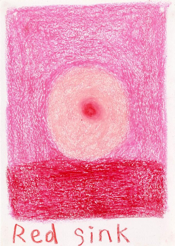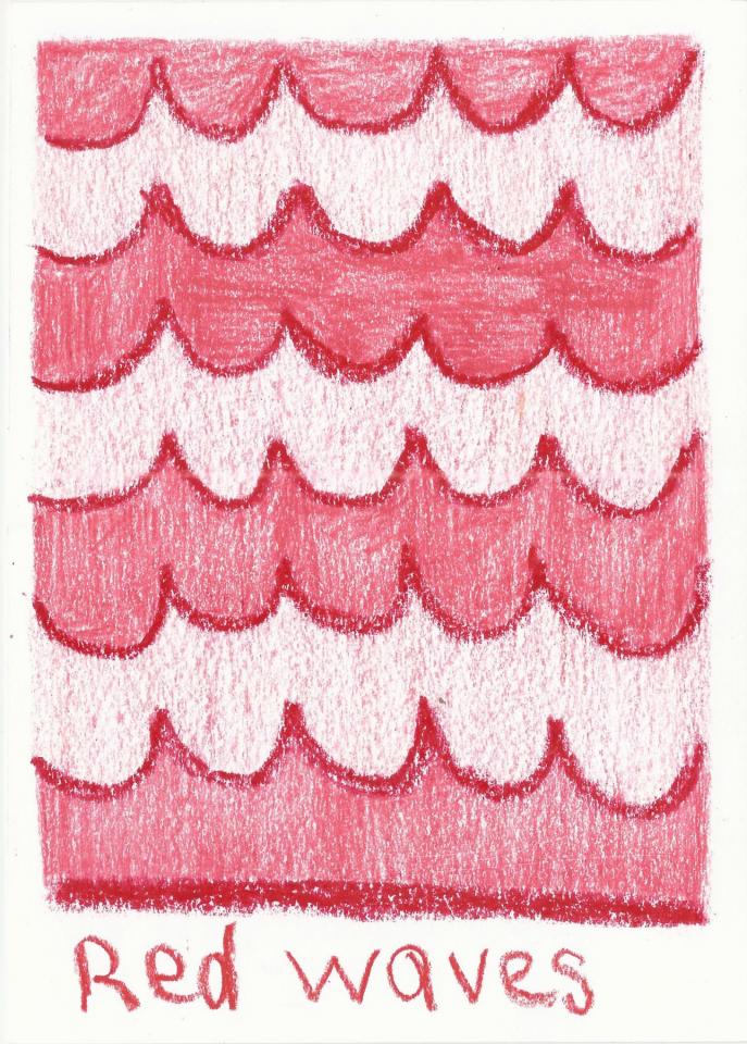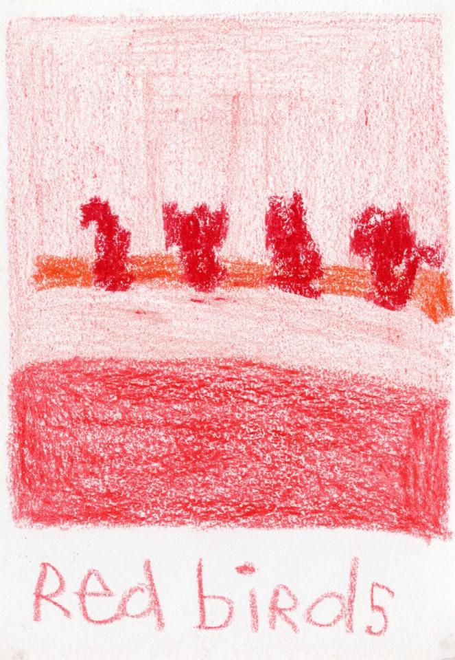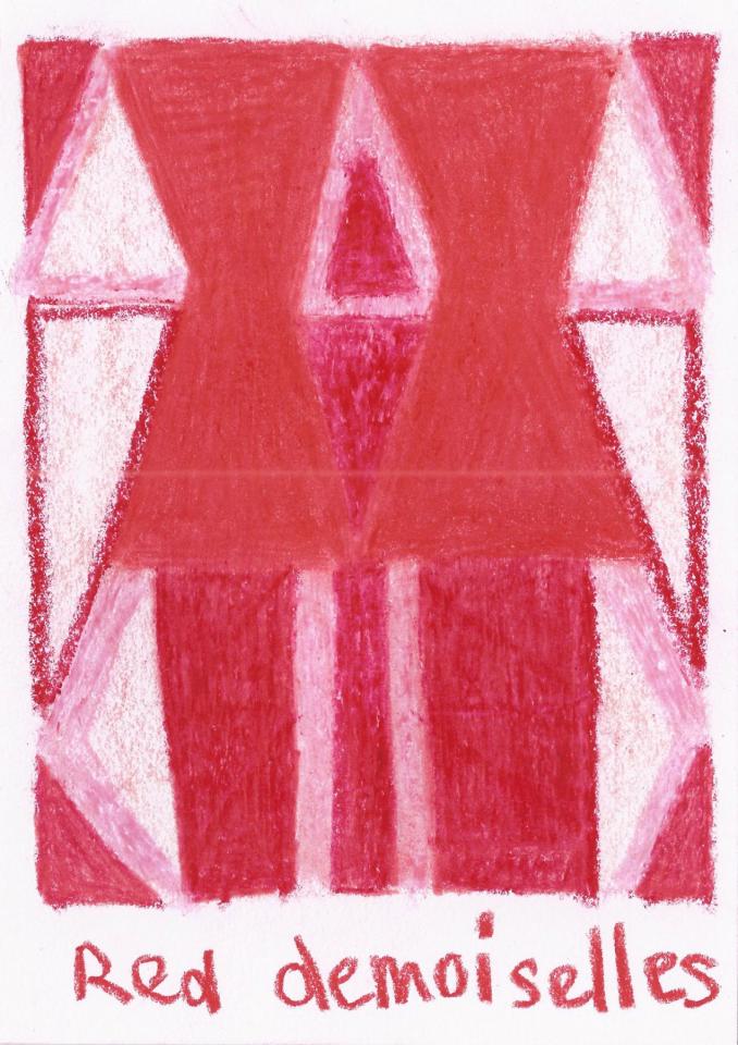 Corpus de dessins, crayon de couleur et pastel sur papier, 14,8 x 21 cm.