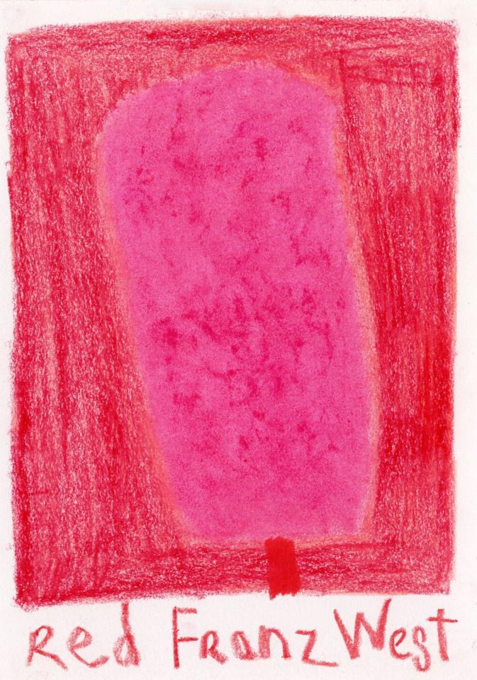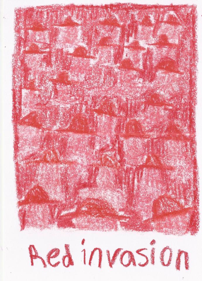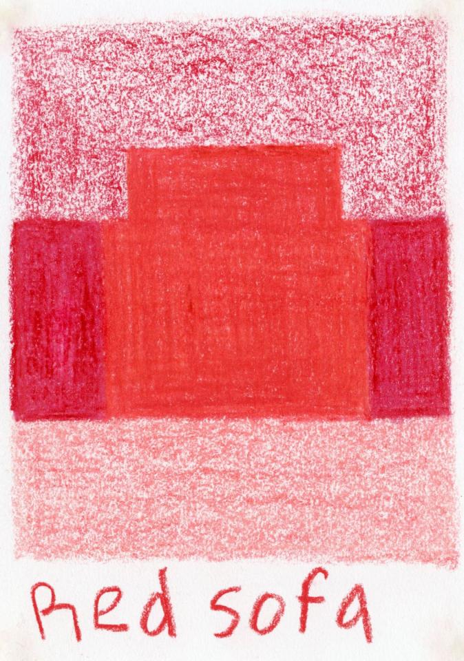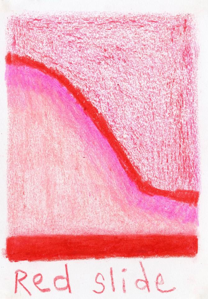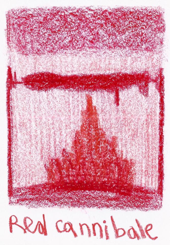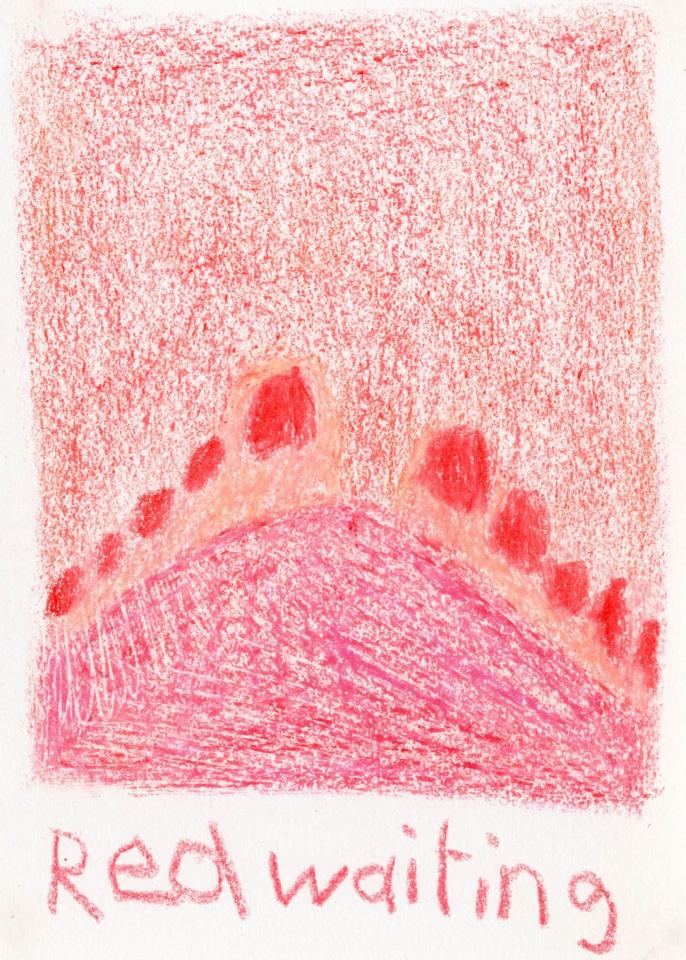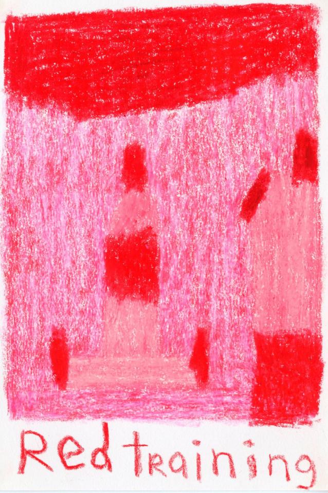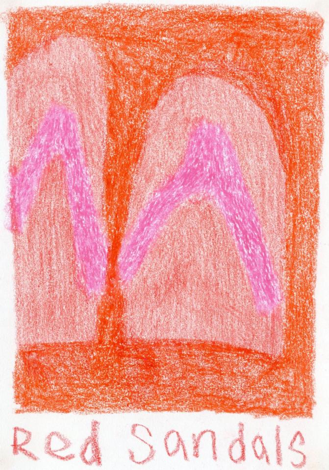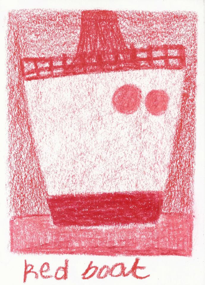 Corpus de dessins, crayon de couleur et pastel sur papier, 14,8 x 21 cm.