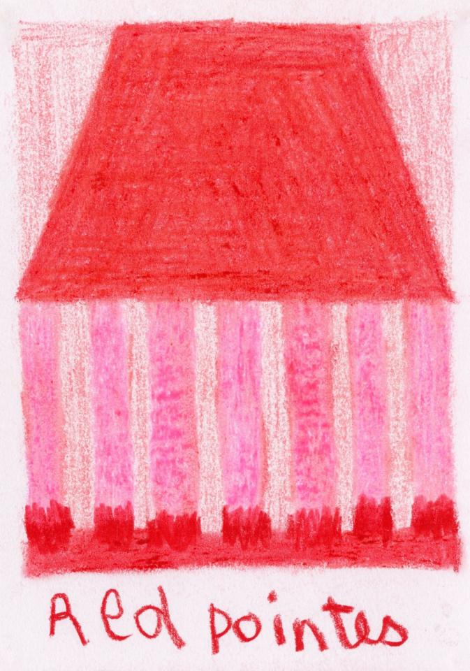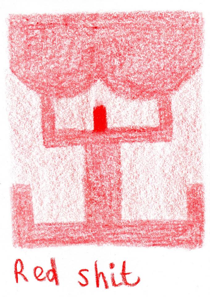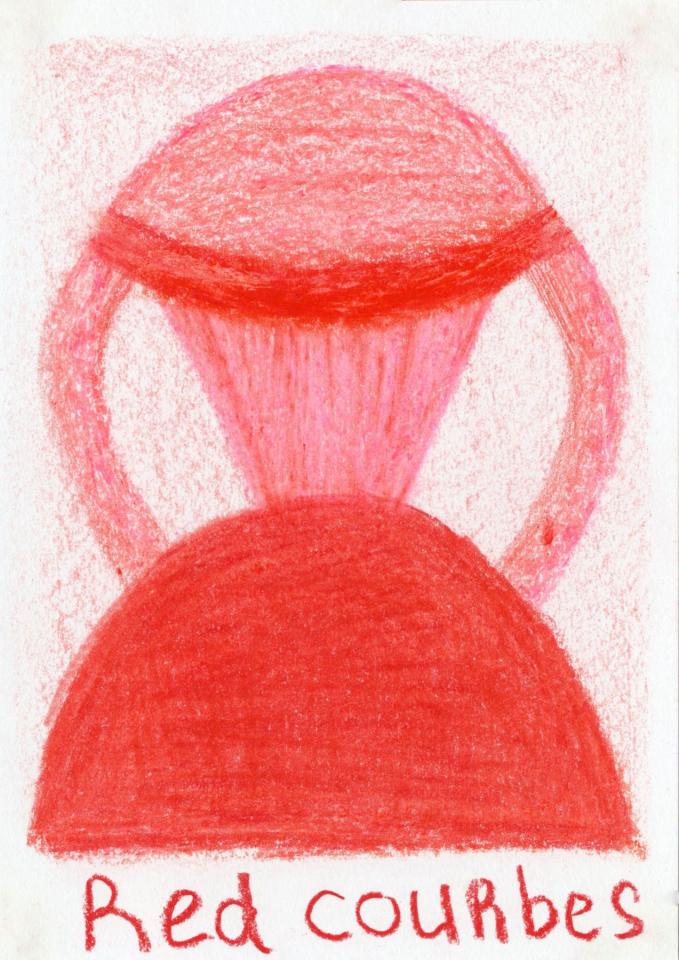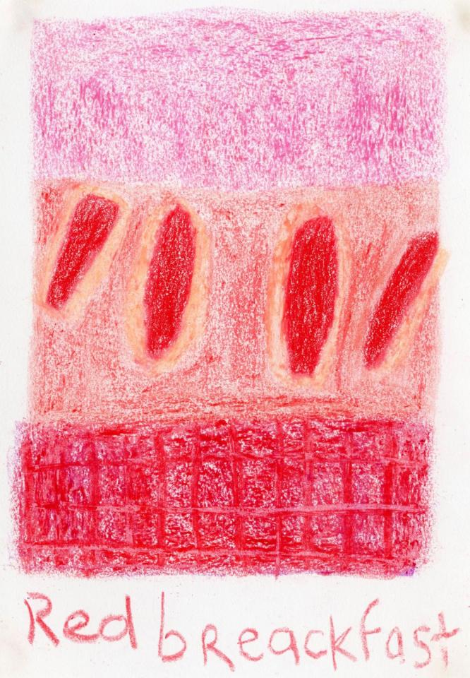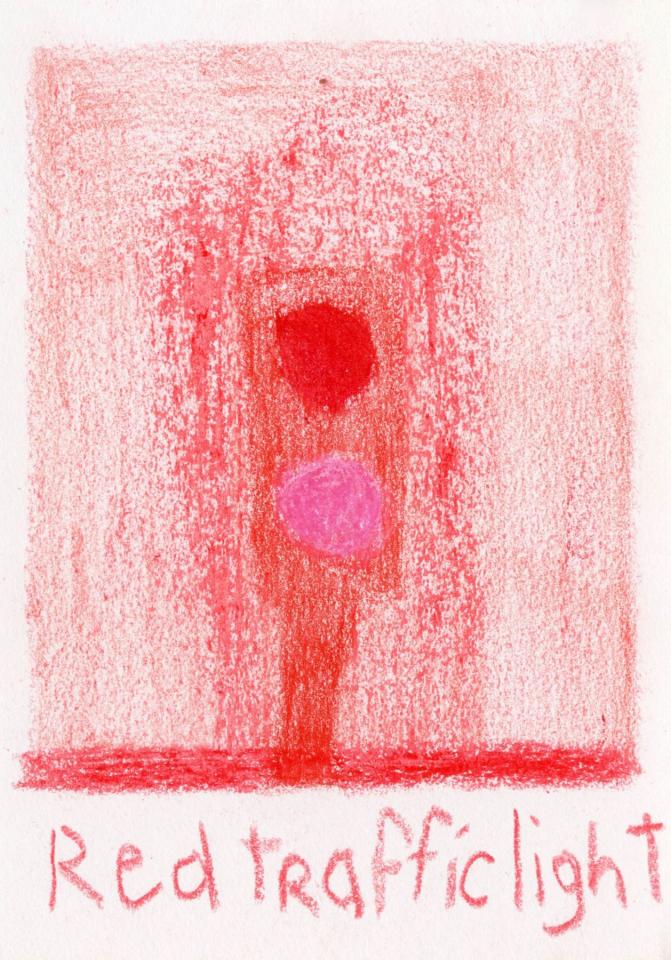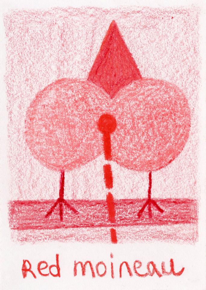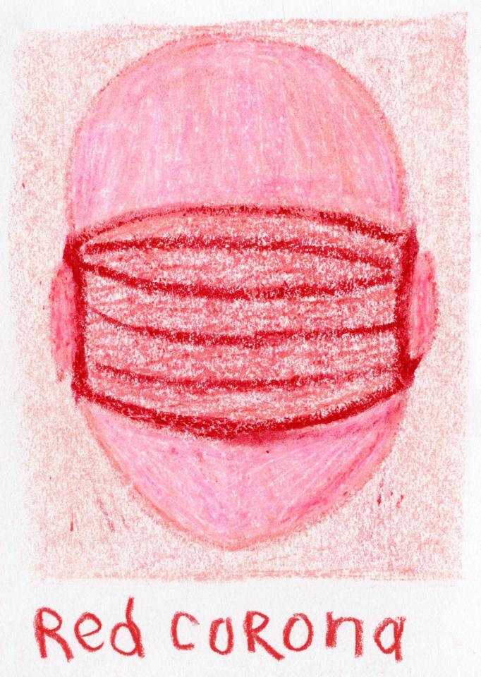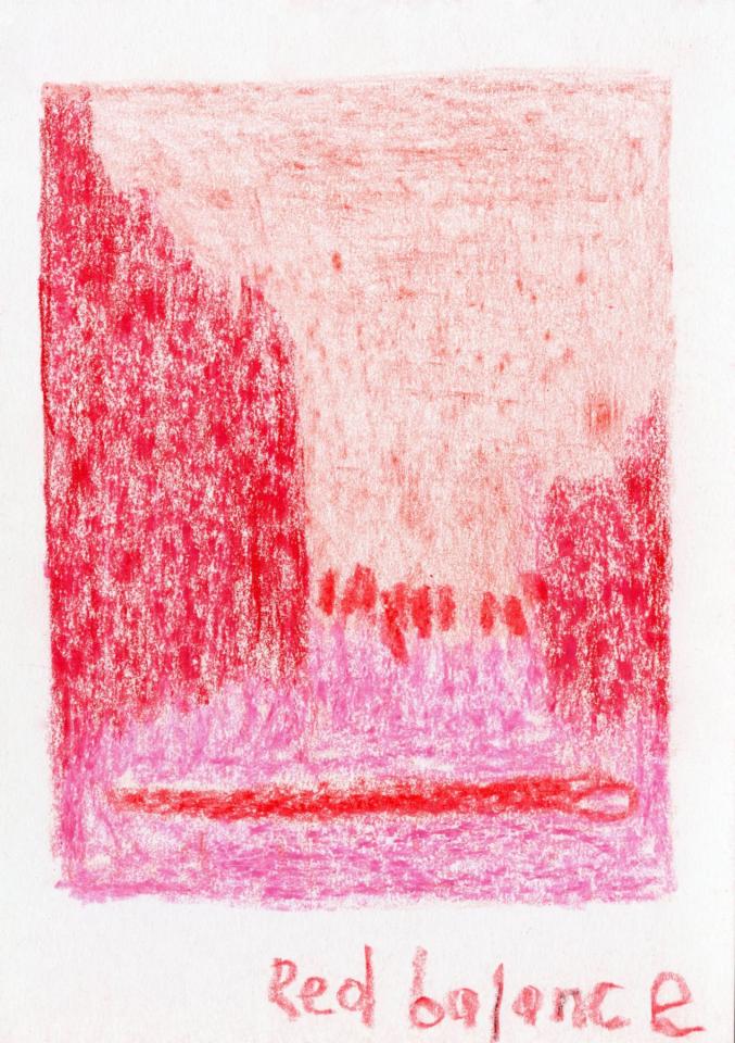 Corpus de dessins, crayon de couleur et pastel sur papier, 14,8 x 21 cm.