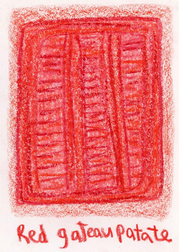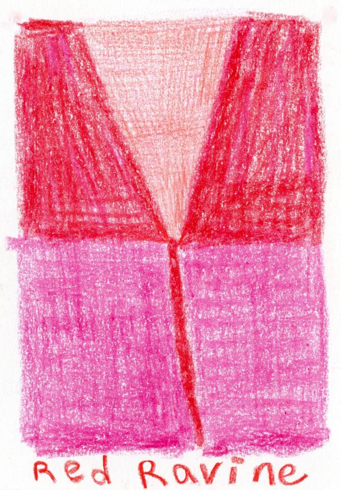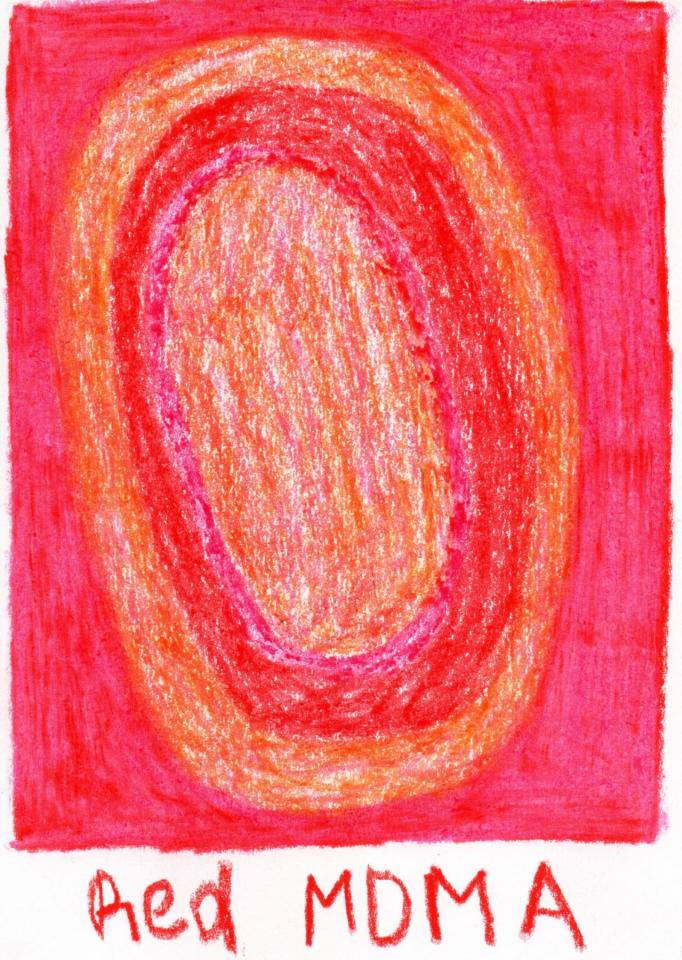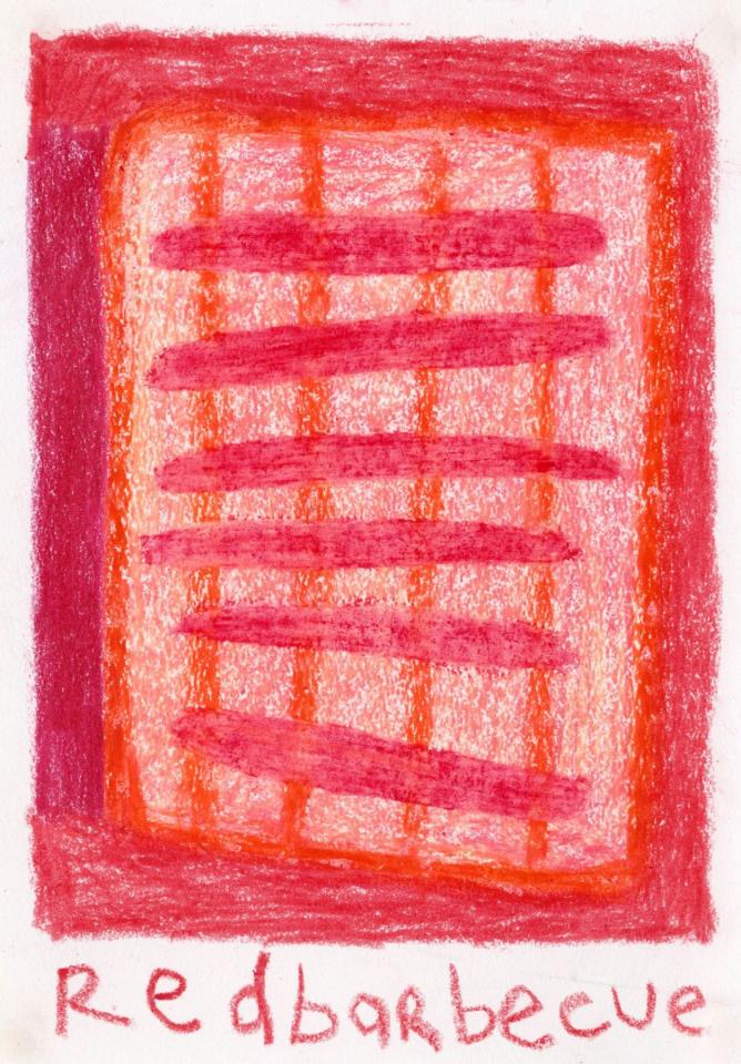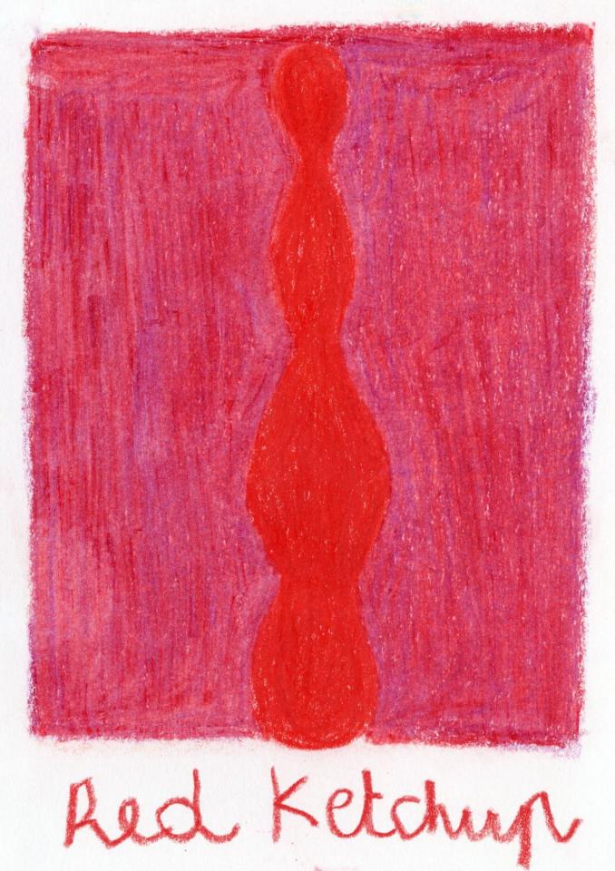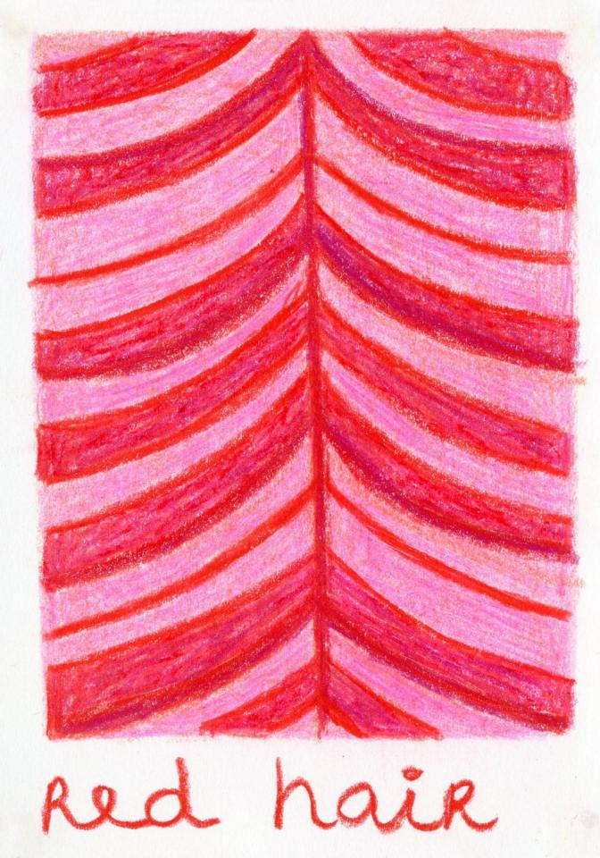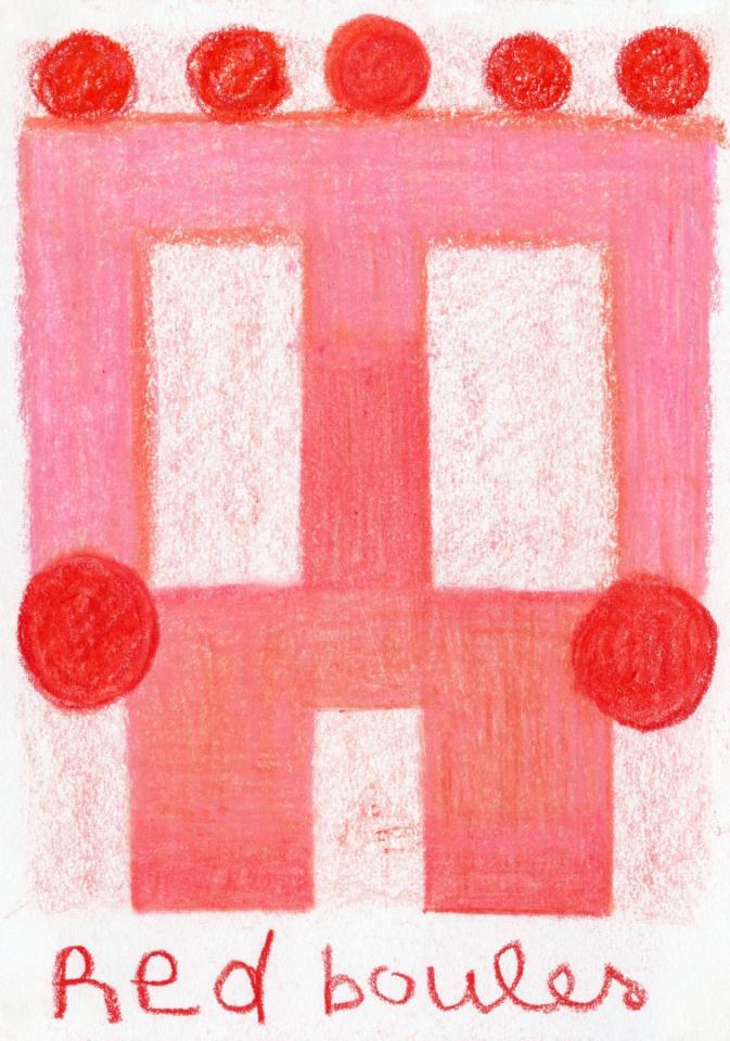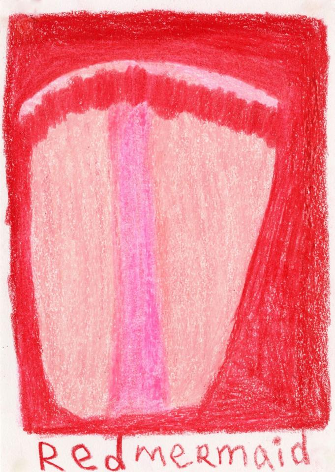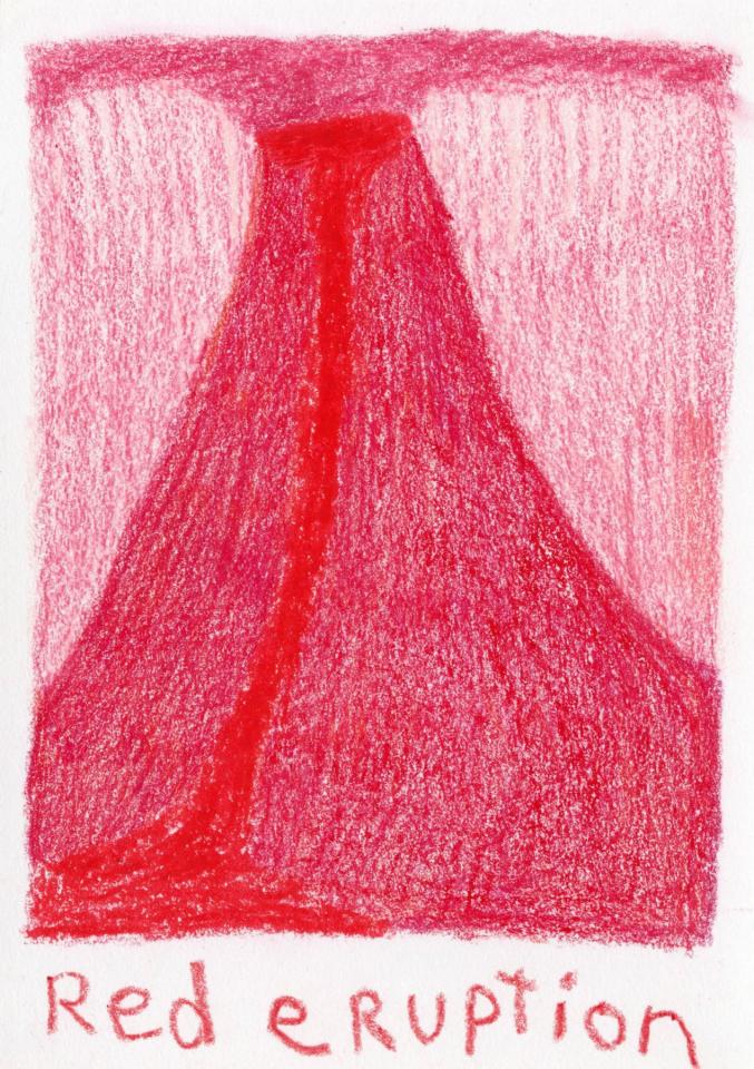 Corpus de dessins, crayon de couleur et pastel sur papier, 14,8 x 21 cm.