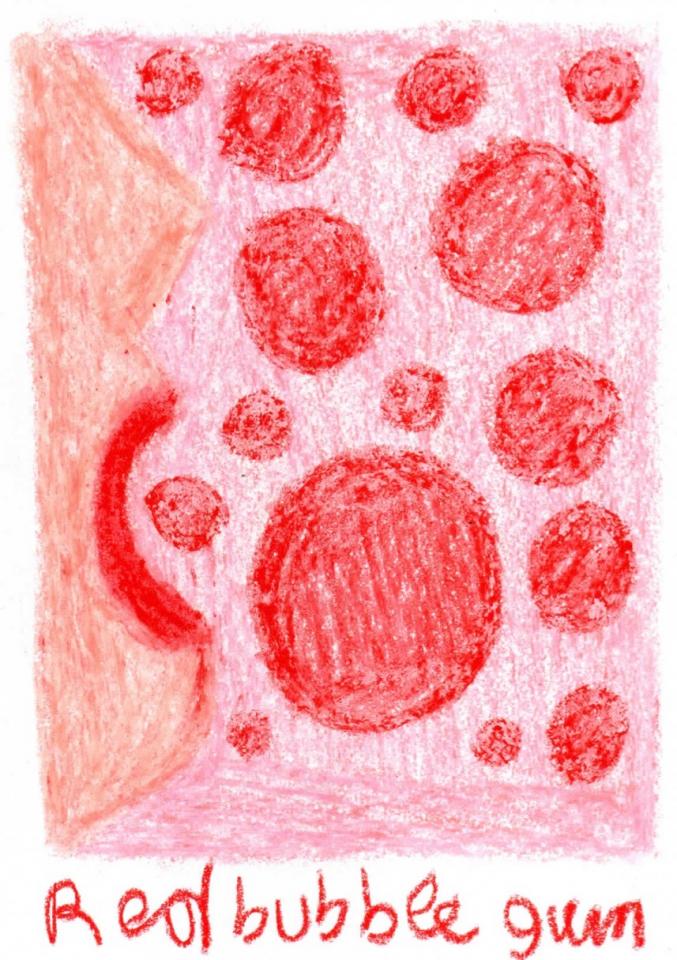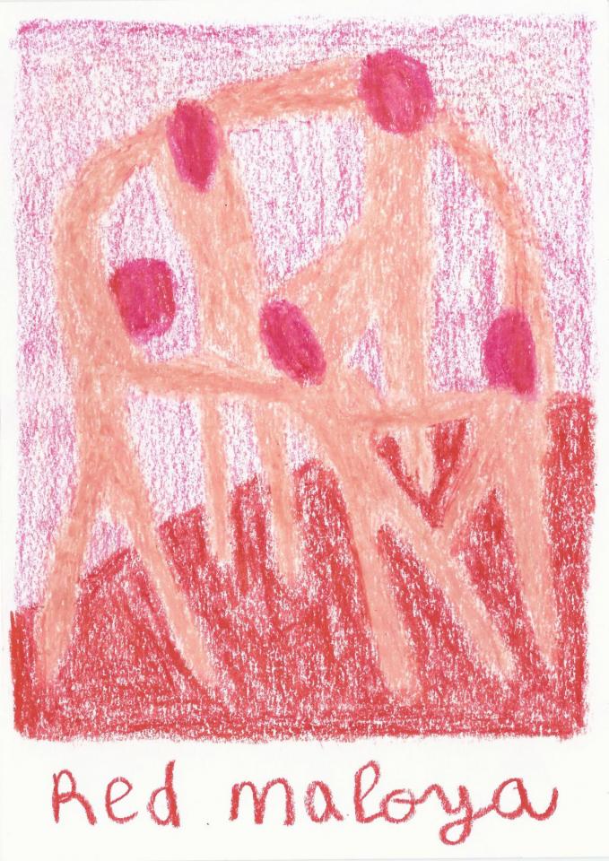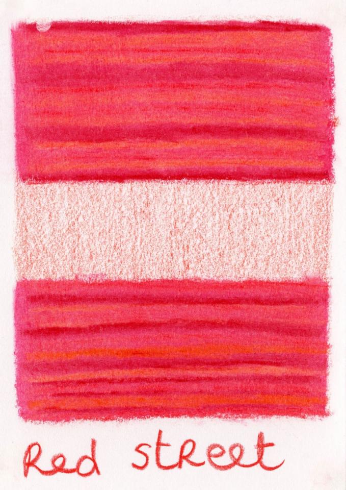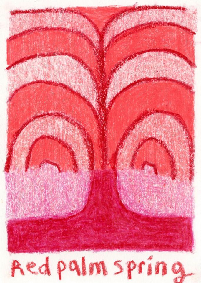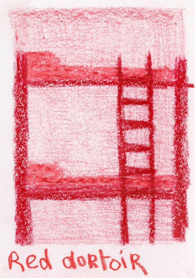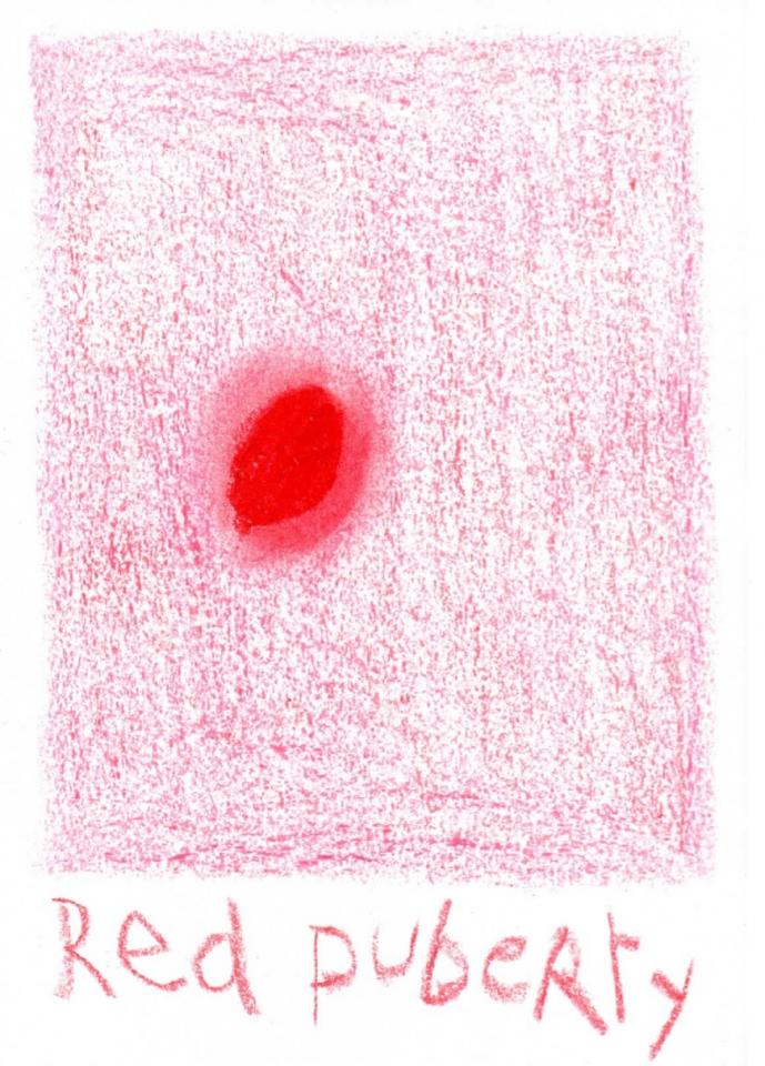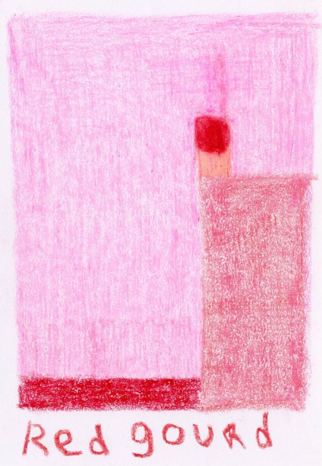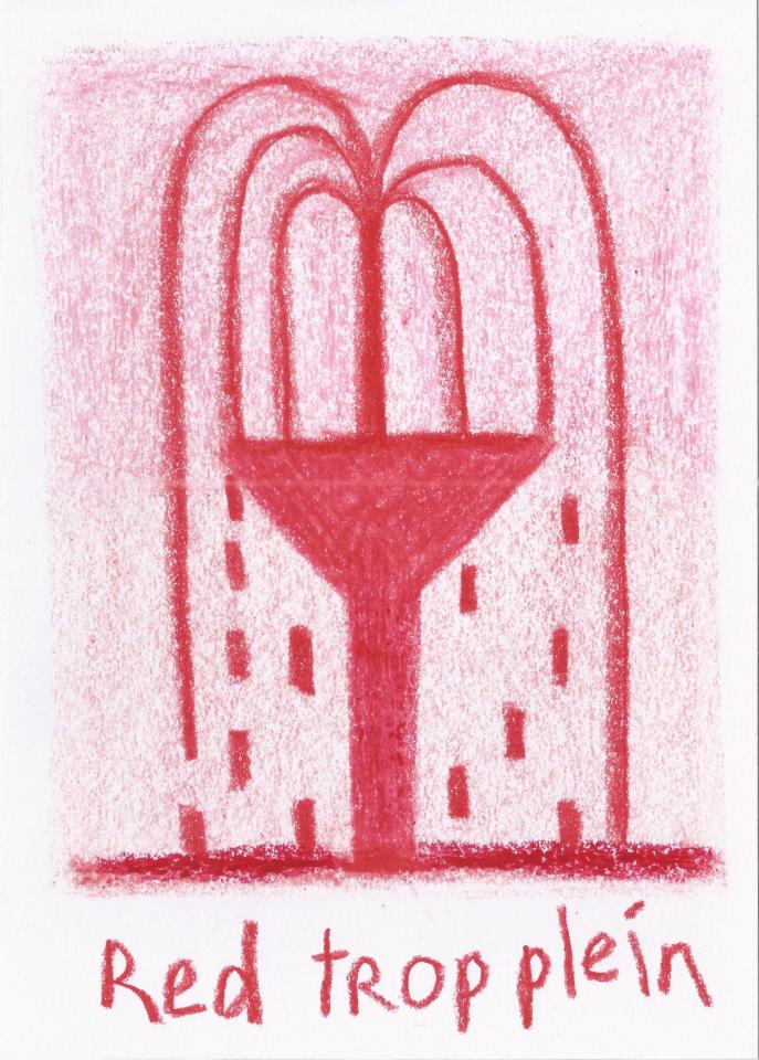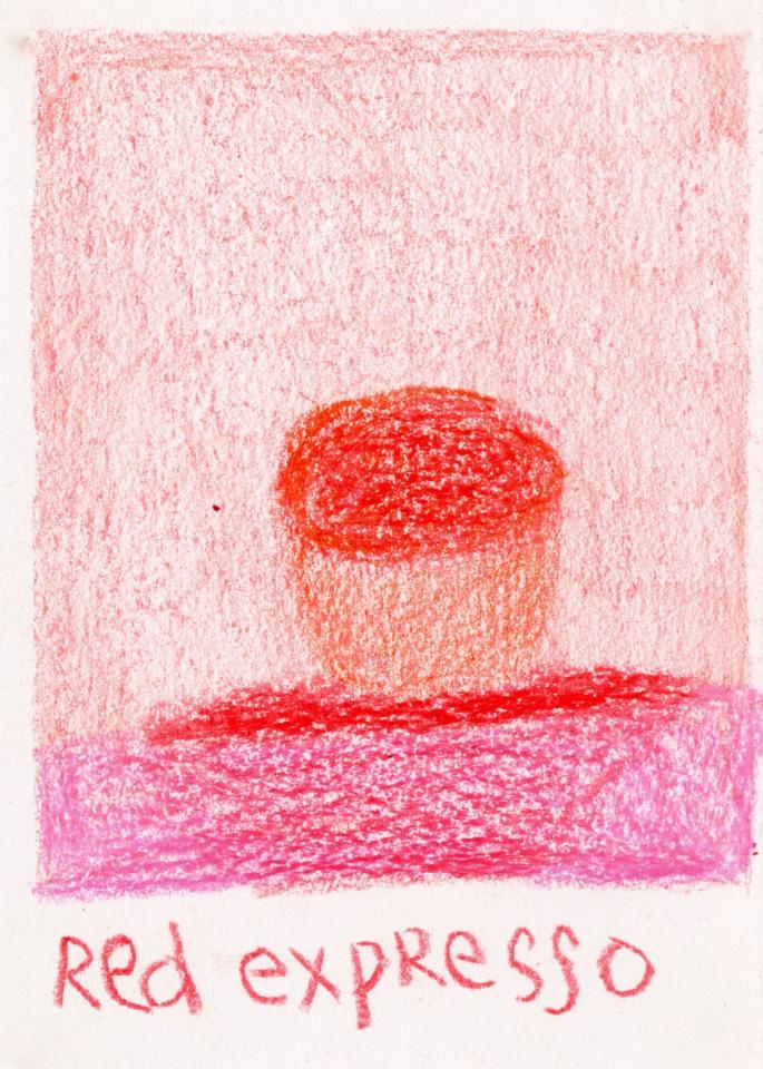 Corpus de dessins, crayon de couleur et pastel sur papier, 14,8 x 21 cm.
