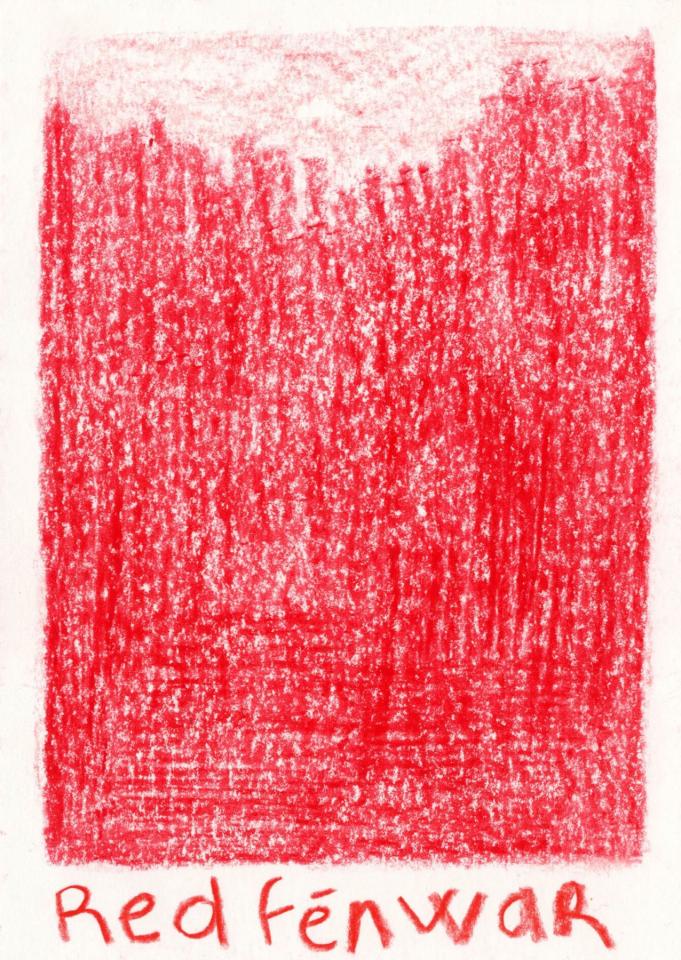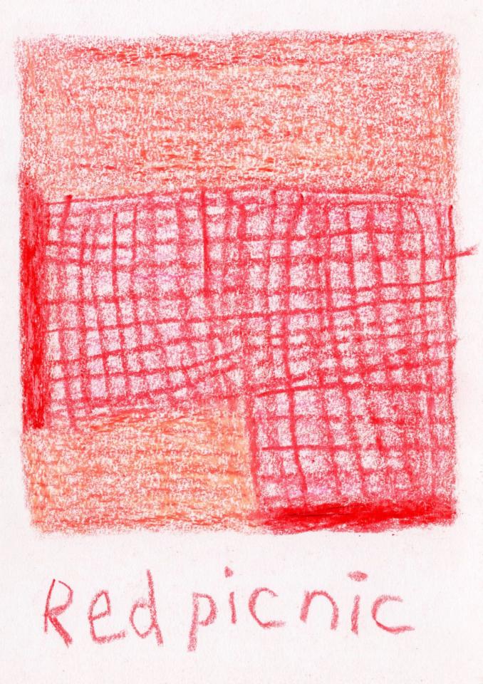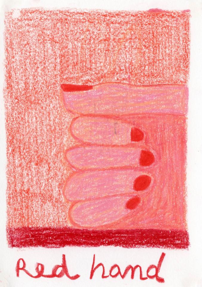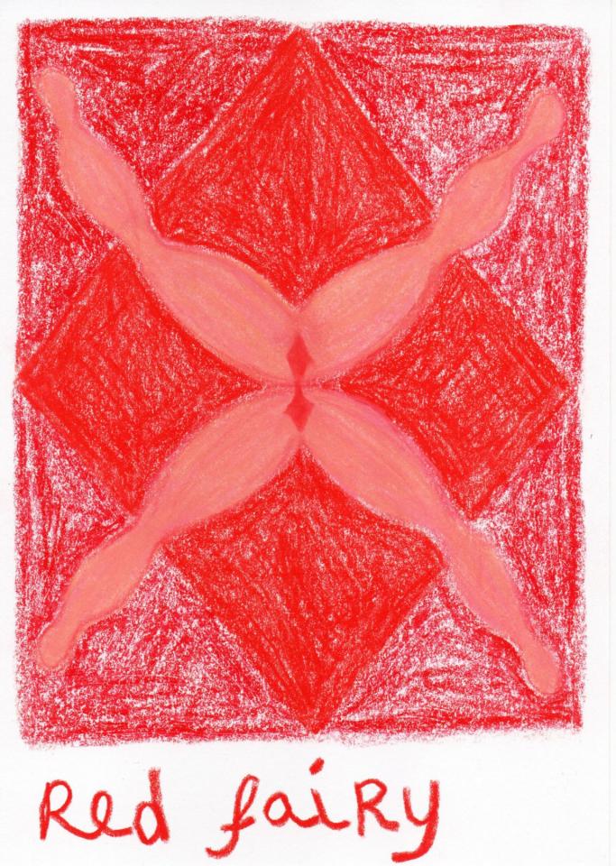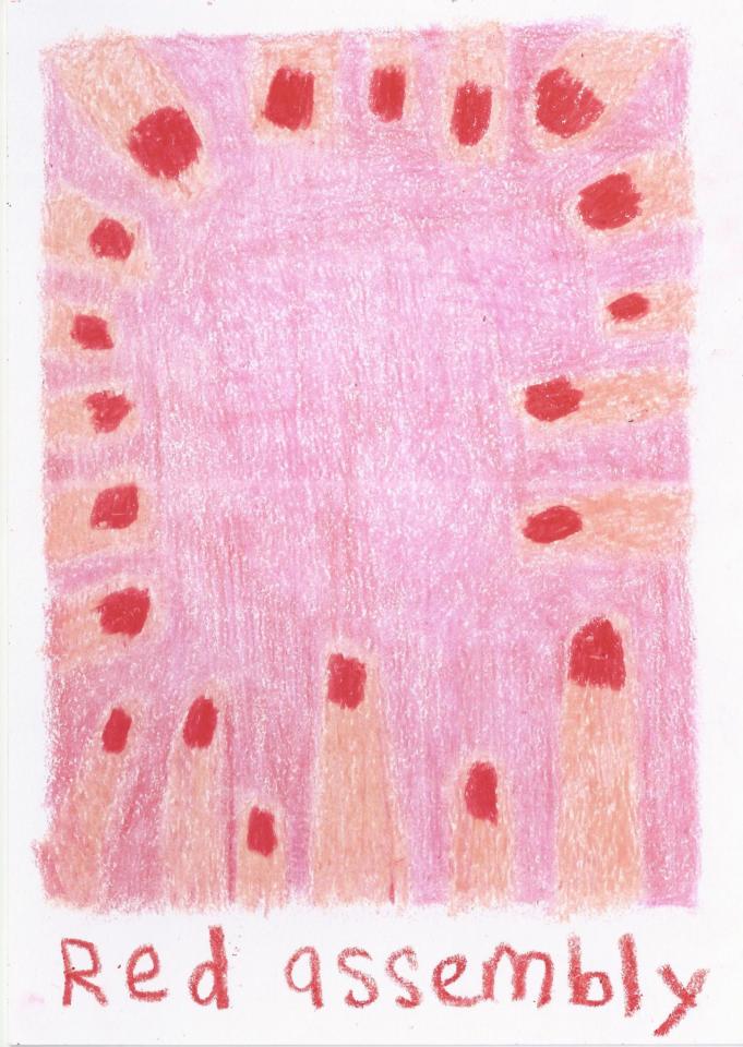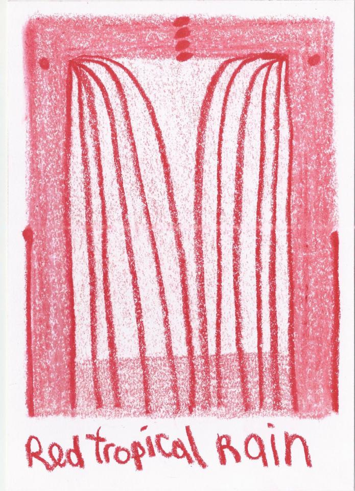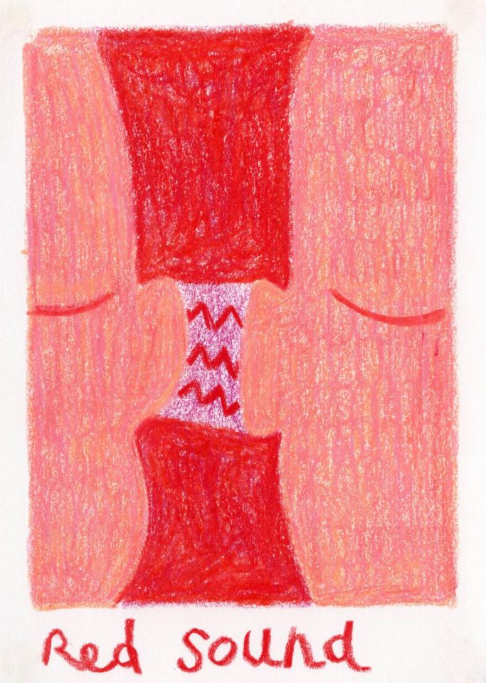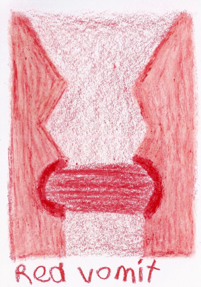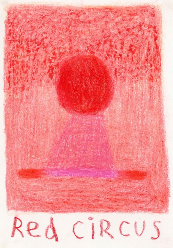 Corpus de dessins, crayon de couleur et pastel sur papier, 14,8 x 21 cm.