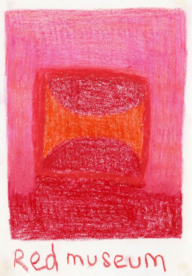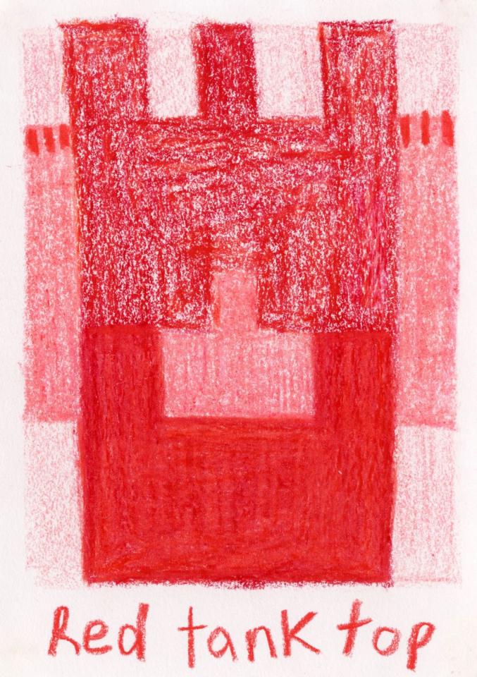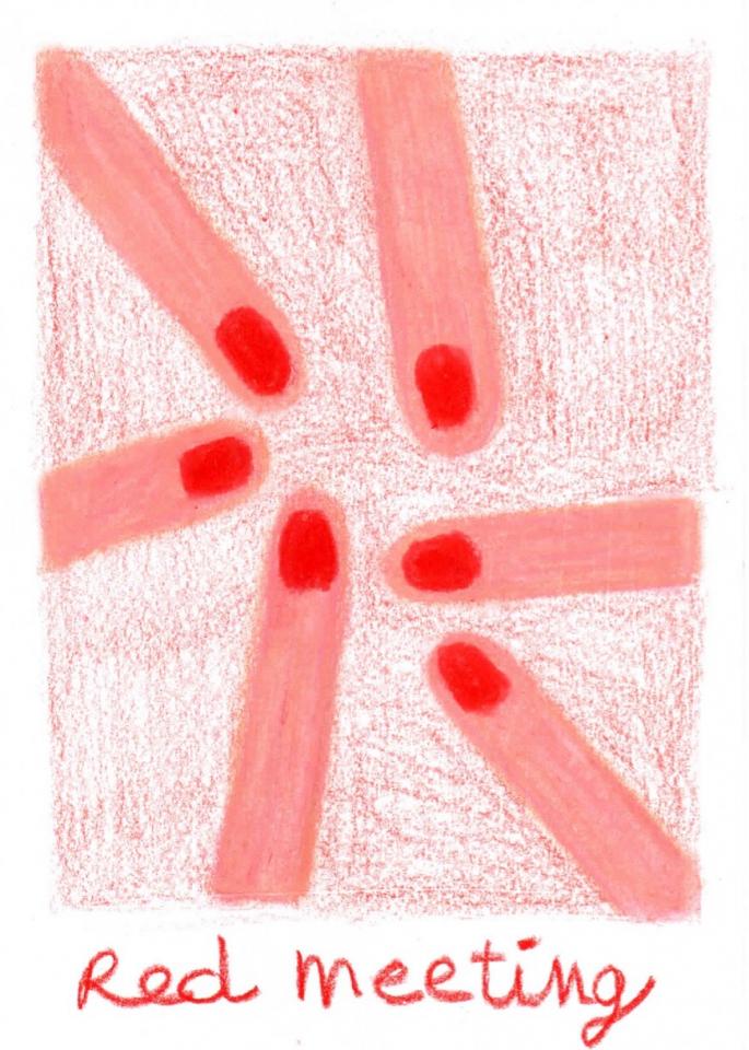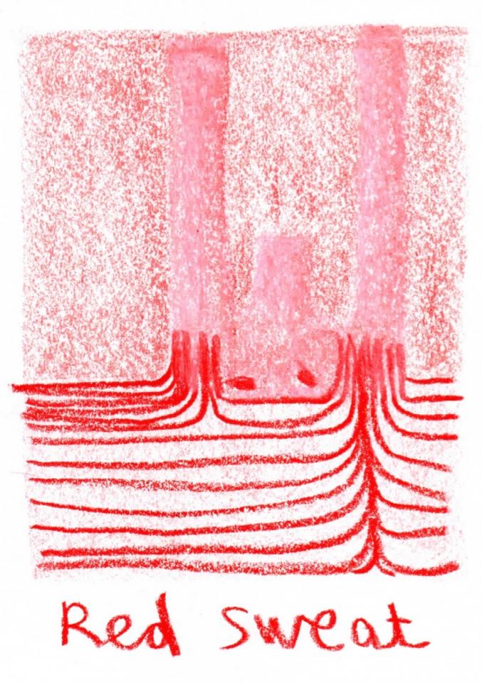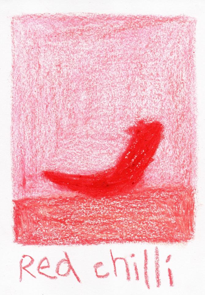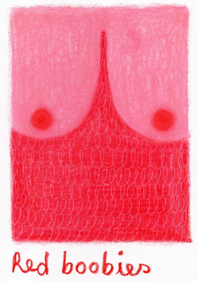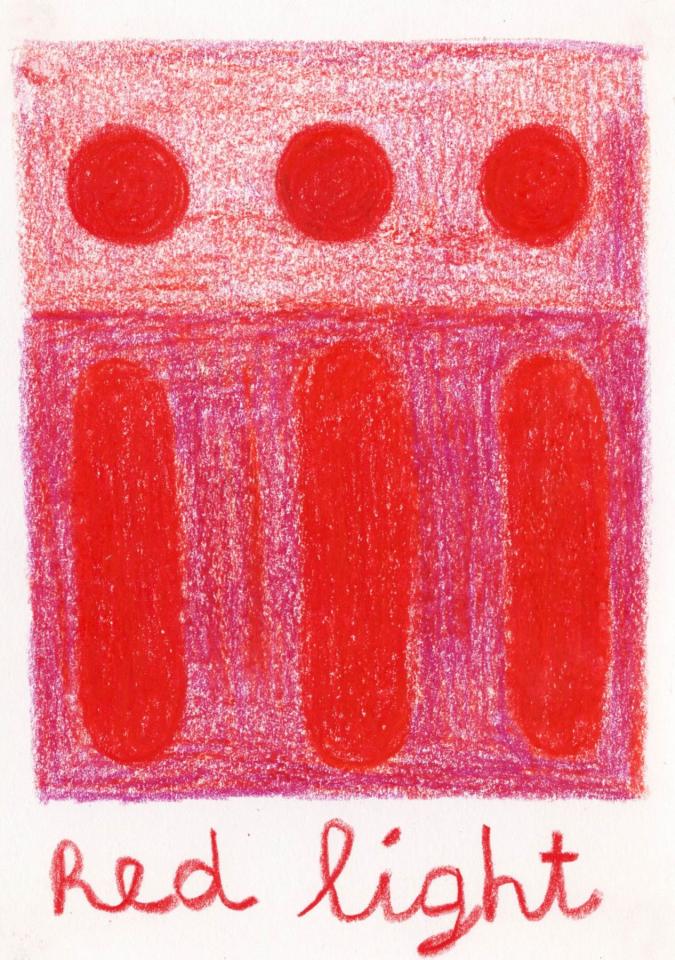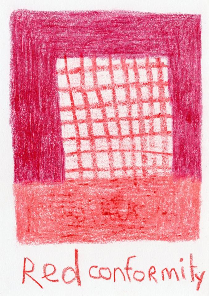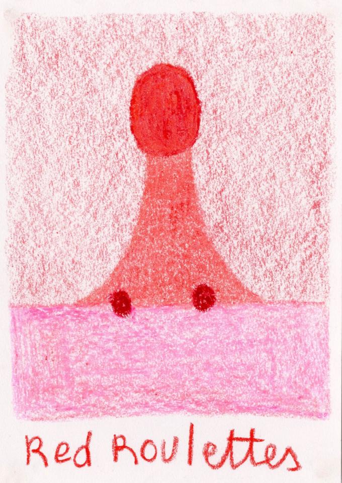 Corpus de dessins, crayon de couleur et pastel sur papier, 14,8 x 21 cm.