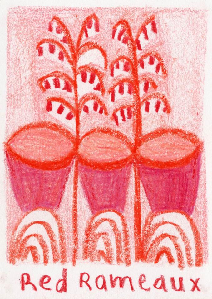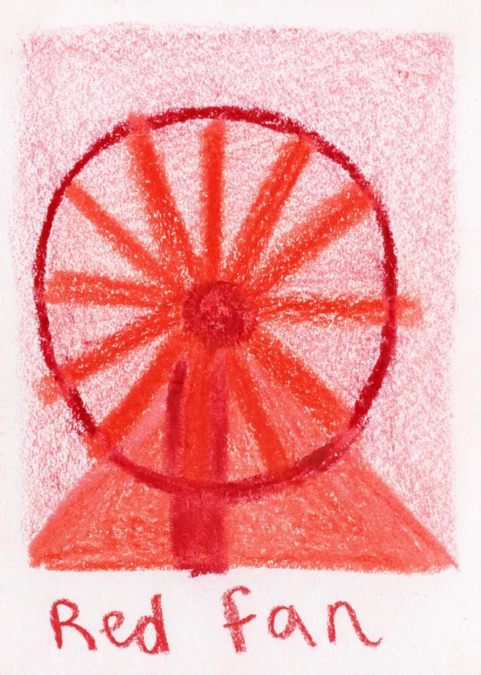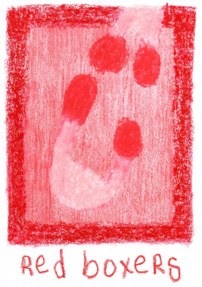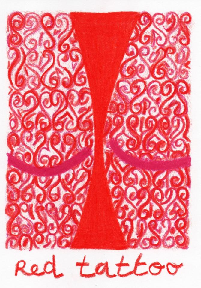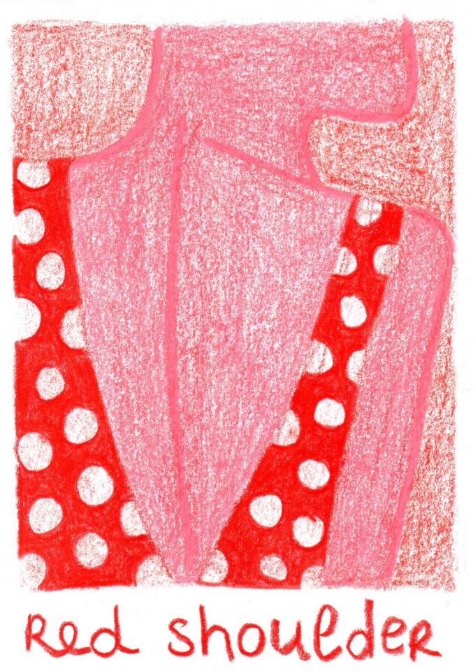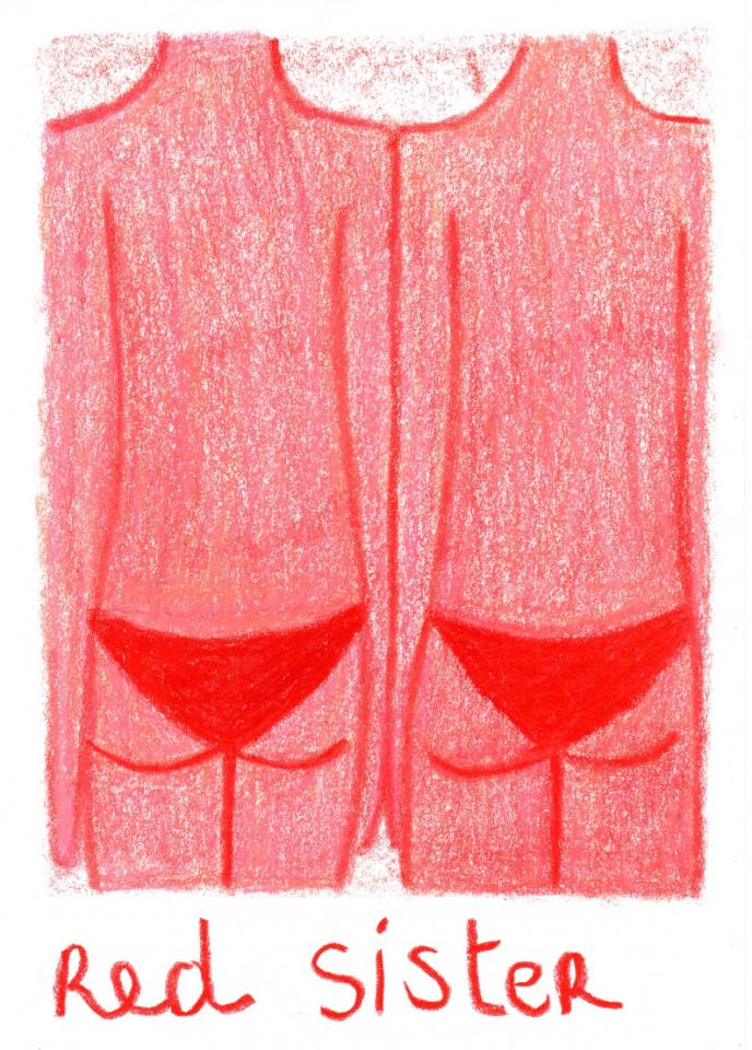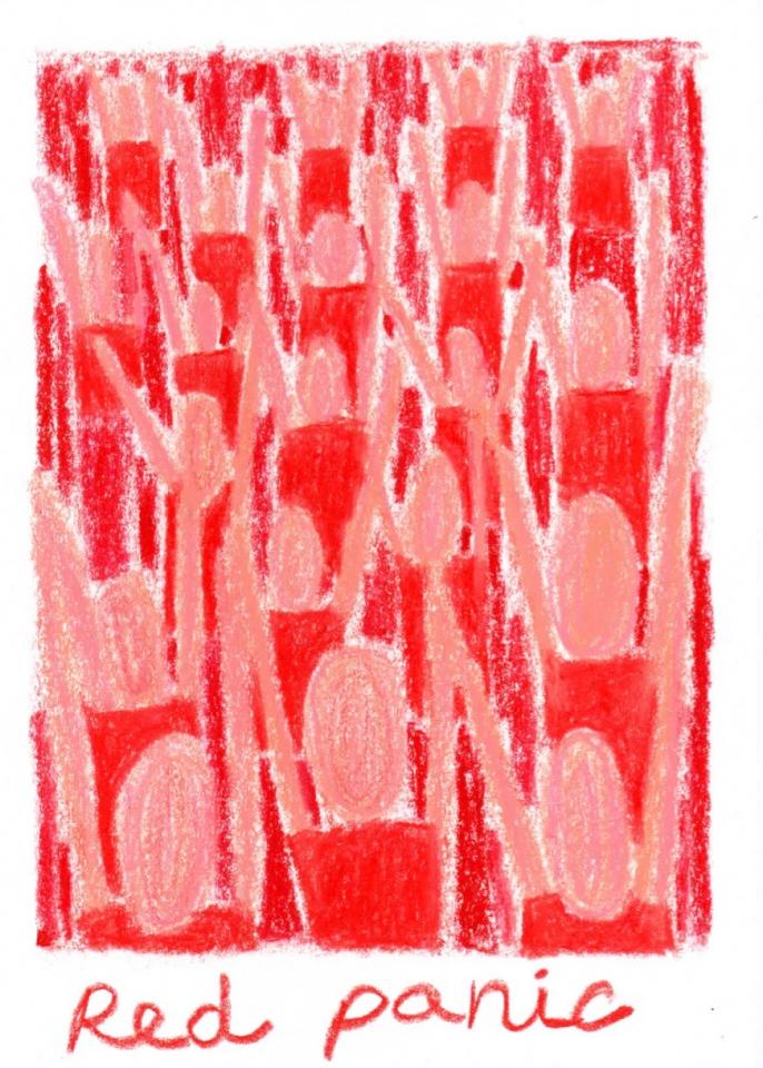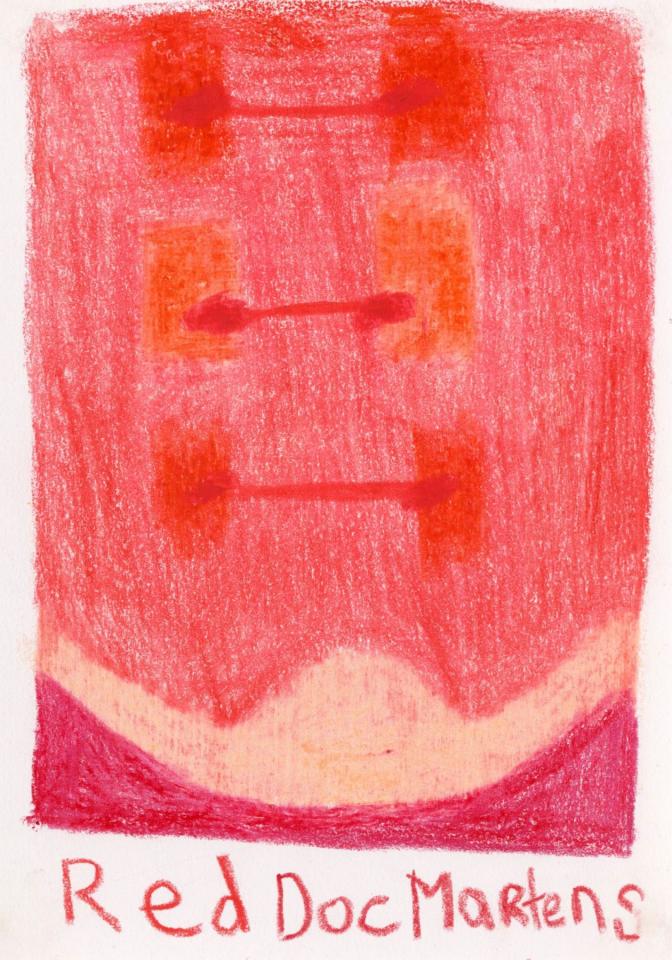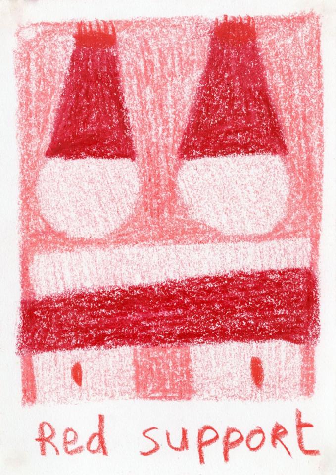 Corpus de dessins, crayon de couleur et pastel sur papier, 14,8 x 21 cm.