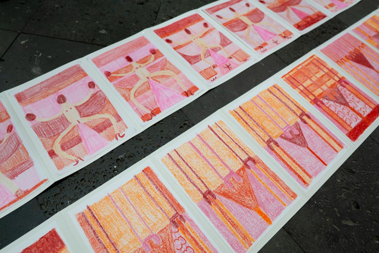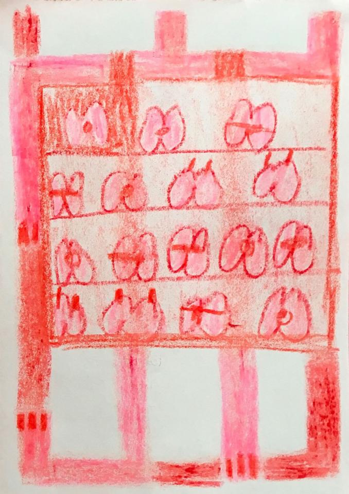 Pastel et crayons de couleur sur papier
