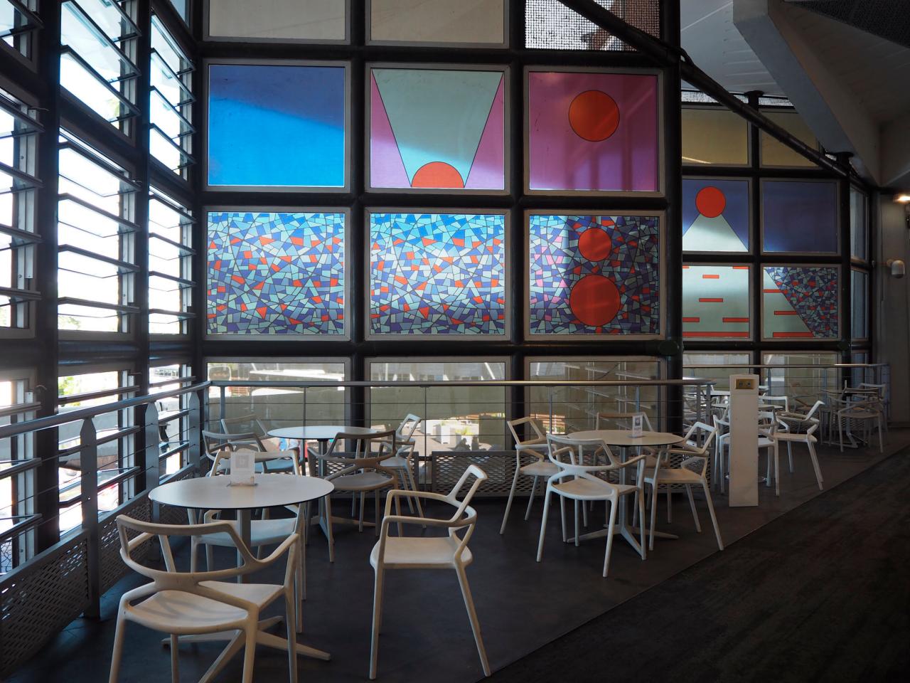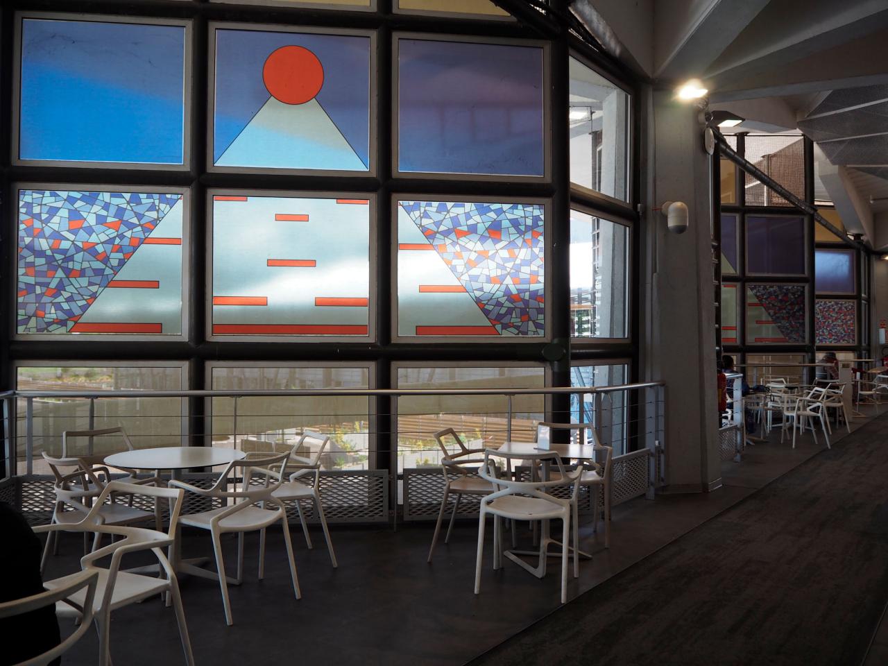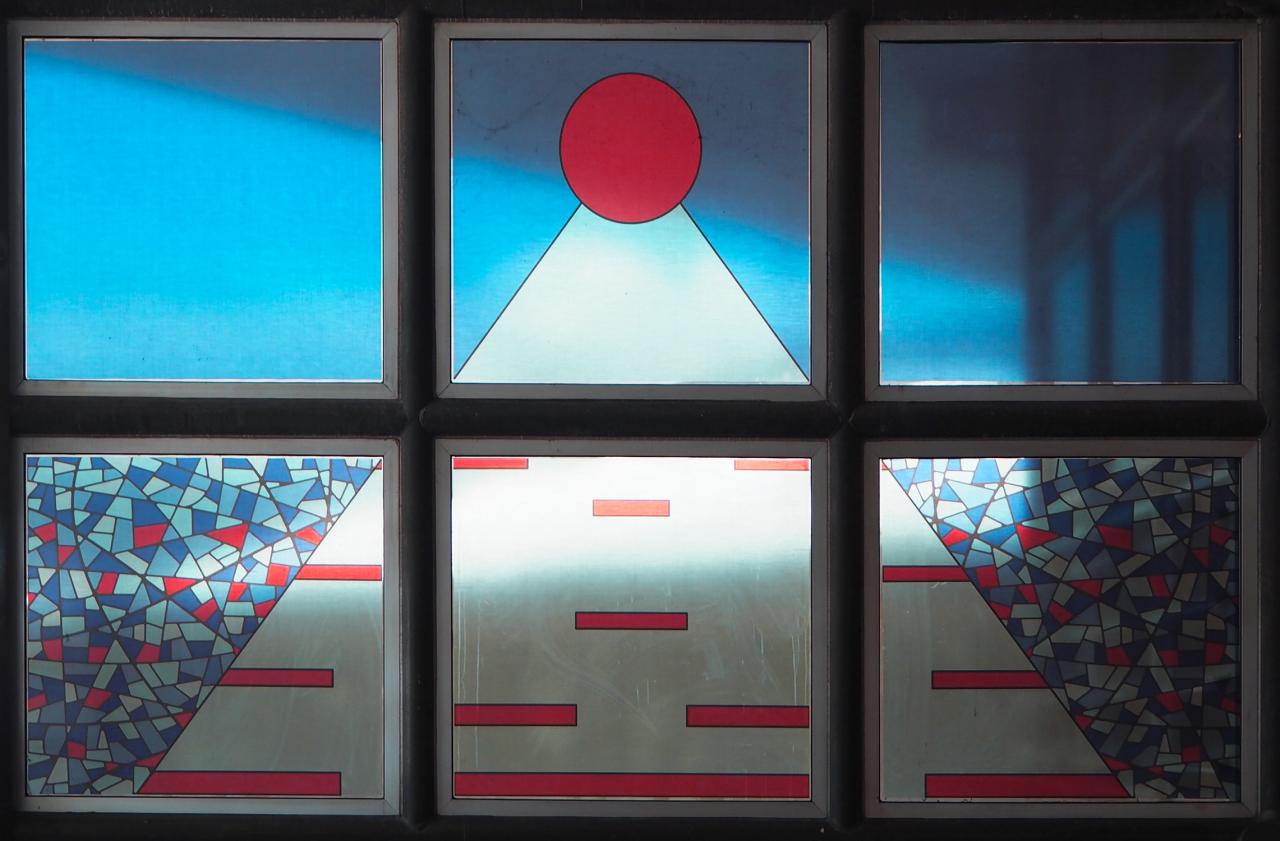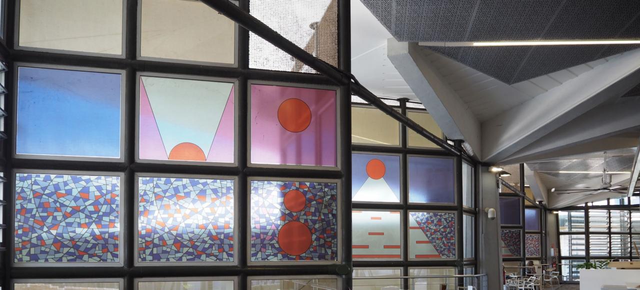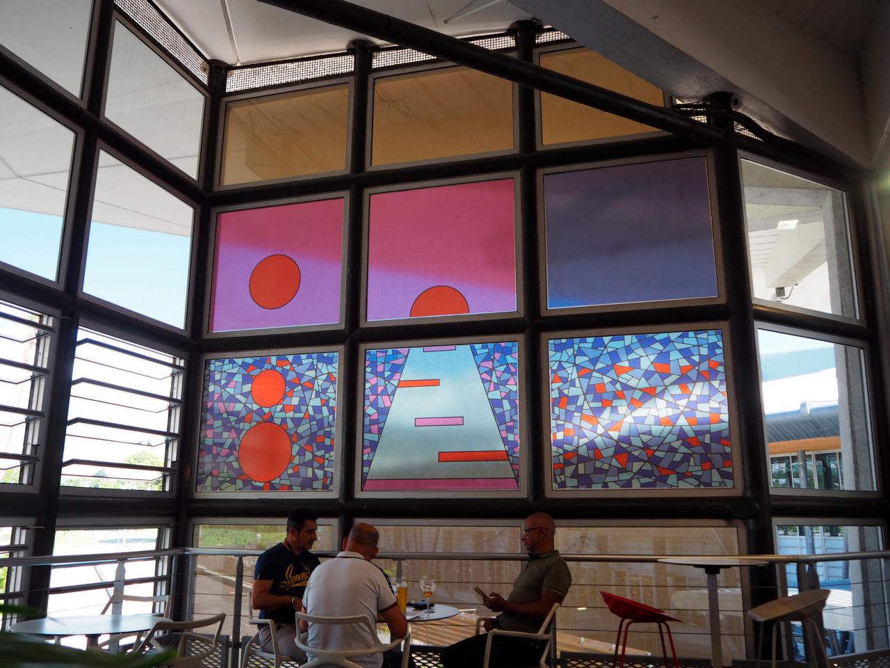Sunset Sunset, 2024 Vitrophanie collée sur verre, 4 pans, 26 m².Aéroport Roland Garros, Saint-Denis, La Réunion.