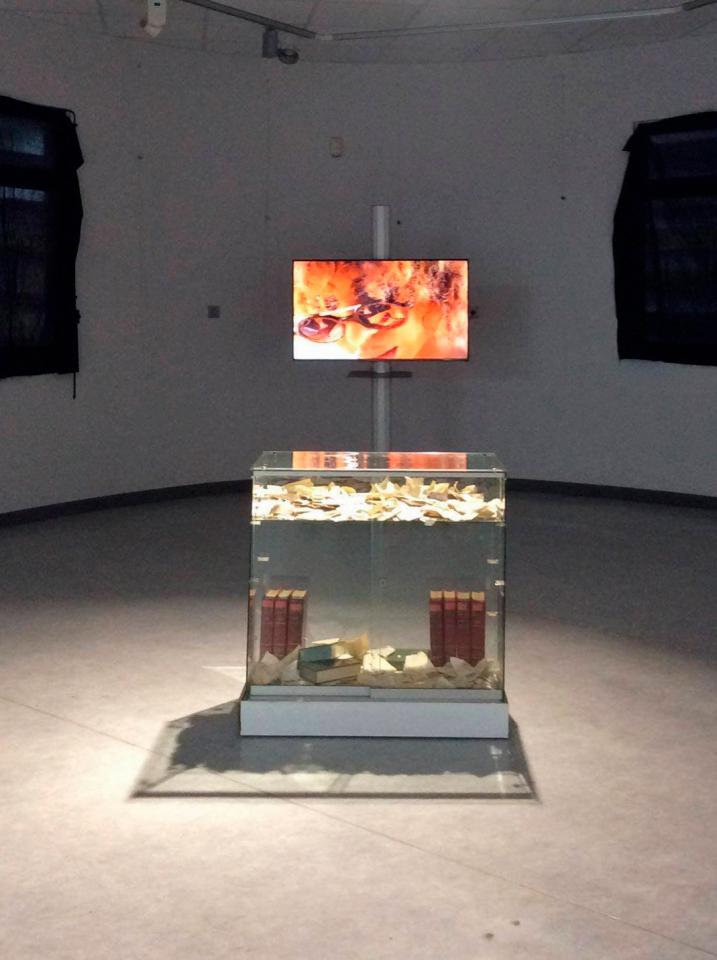 Vues de l’exposition collective Le Lys dans la vallée de Balzac et autres relectures, galerie de la bibliothèque universitaire du Tampon, La Réunion, 2020.