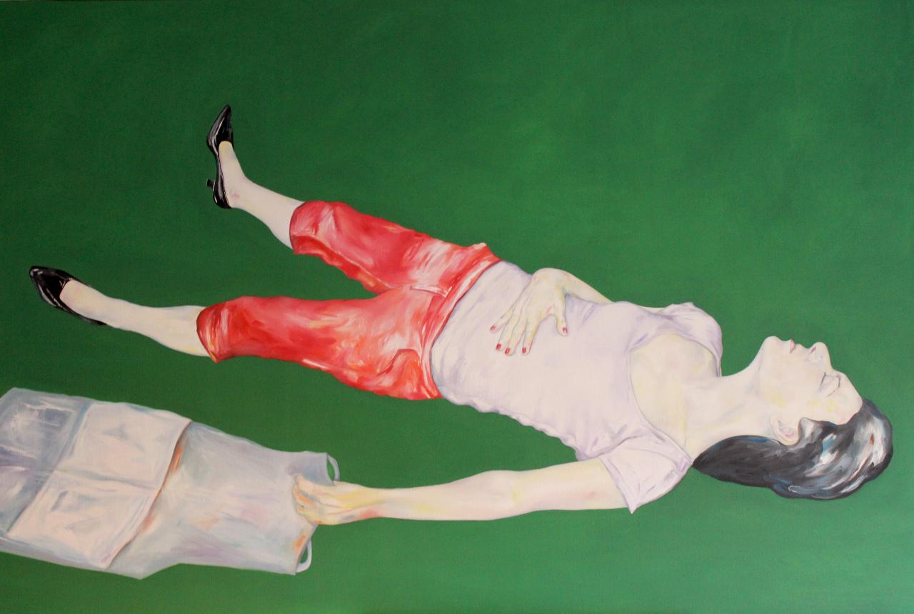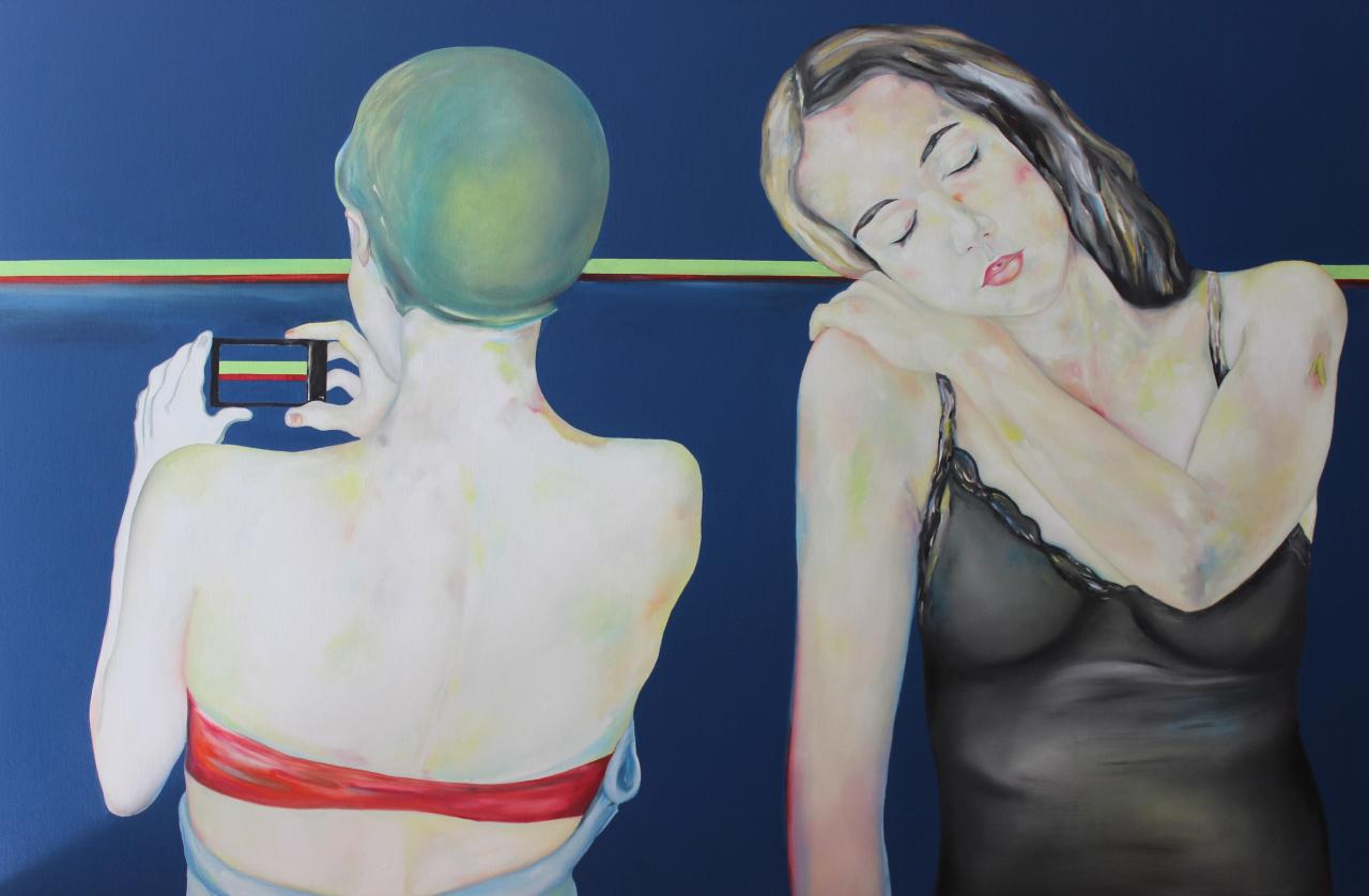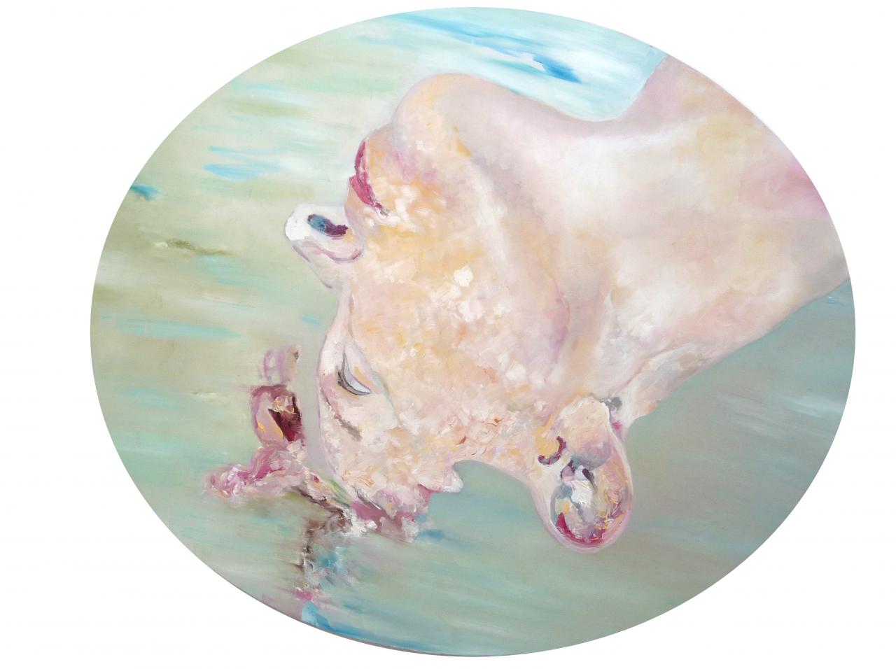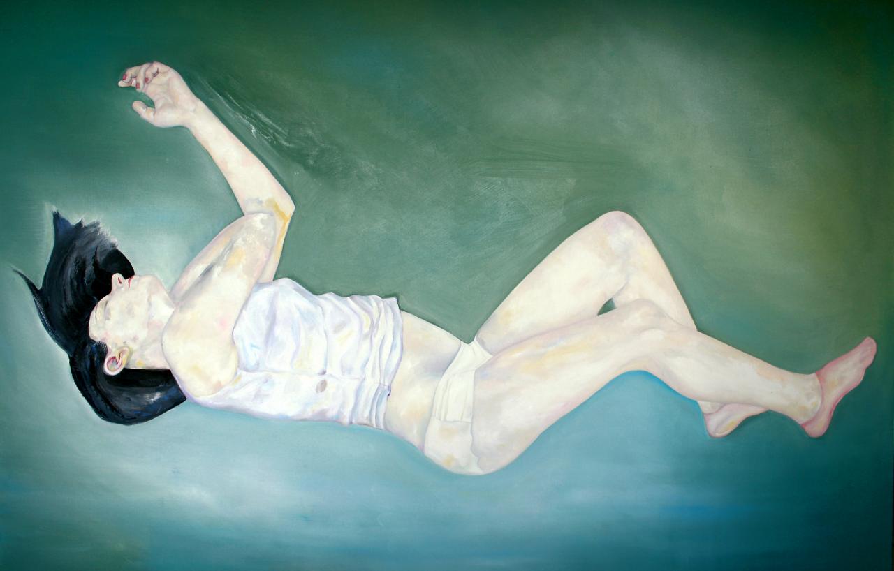 Entre les solitudes sombres et dures de Djamel Tatah et les carnations blessées des cadavres de Marlene Dumas, ces belles images sur papier glacé, lisses et pâles, souffrent et se noient comme des Ophélie contemporaines ou de Belles endormies exsangues. Les fonds colorés échouent à donner la gaieté espérée ; plus le bleu se fait dense et profond, plus la figure devient pâle, évanescente, plus elle semble s’évanouir, disparaître jusqu’à l’effacement, victime du temps ou du désœuvrement.