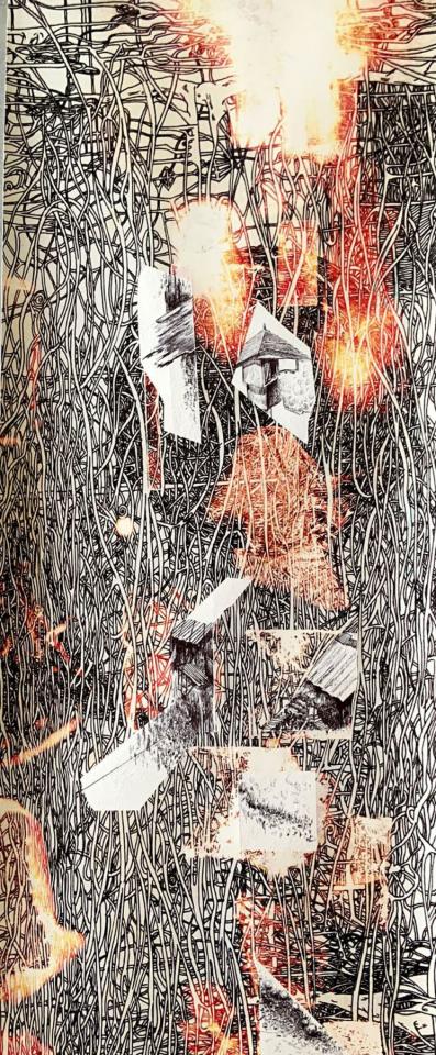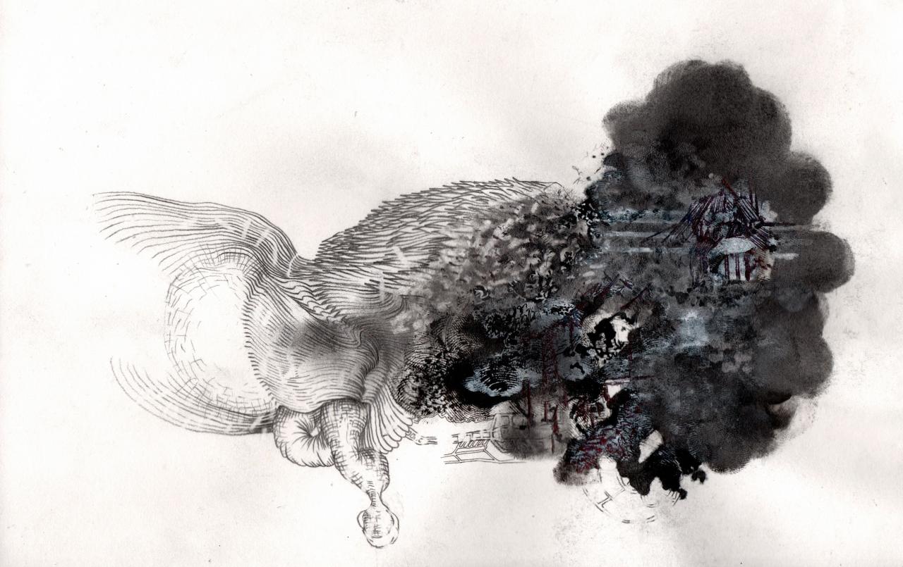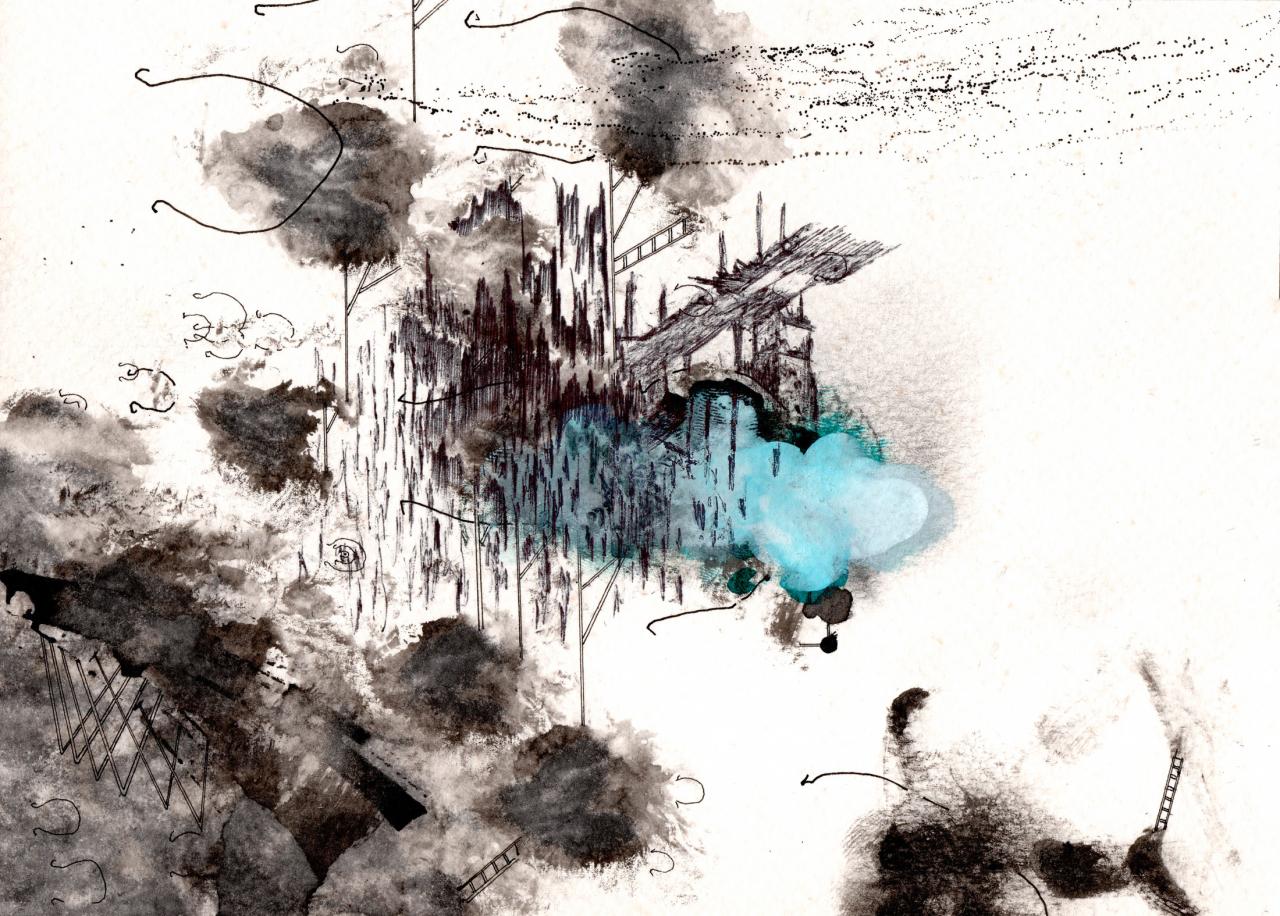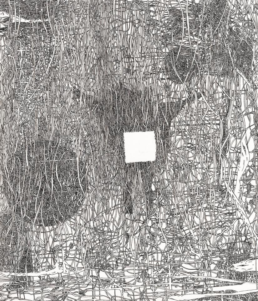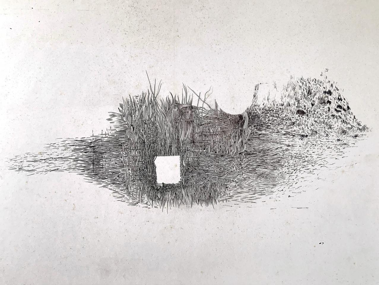 C’est un peu la même démarche que lorsque j’emprunte le titre Errance à Raymond Depardon. Pour moi, « c’est un grand terrain de nulle part » était parfait pour nommer ce corpus : il décrit cette immensité dans laquelle je ne sais pas exactement où aller. Je représente des morceaux de lieux, réels ou imaginaires, mais au fond, de quoi s’agit-il ? Du grand terrain de nulle part. Est-ce que ce grand terrain se situe autour de la feuille ? Est-ce que ce terrain est la réalité qui nous entoure ? Serions nous nulle part en étant là où nous sommes ?…