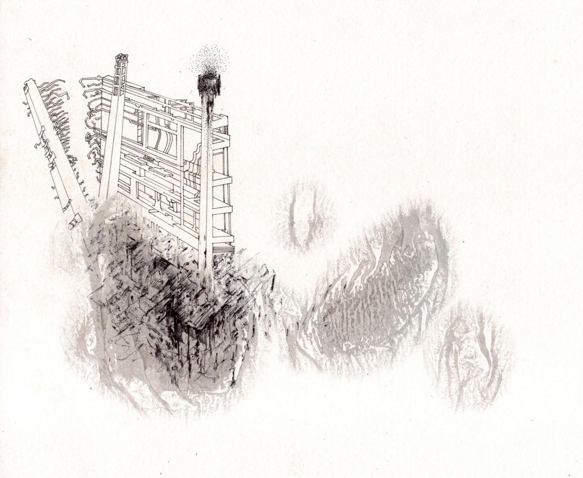 Il nous semblait qu’il y avait également une dimension dystopique dans ton travail, ou en tout cas quelque chose proche de la science-fiction. Tu parlais tout à l’heure de ce côté pré-apocalyptique. On retrouve cette esthétique dans tes dessins mais aussi dans tes vidéos. On peut même parler de fantastique, dans le sens où certaines œuvres présentent des détails très précis, une architecture par exemple, mais combinés à des éléments qui créent un univers complètement différent. On perd alors nos repères. Ton univers part du réel, mais s’y perd ou se propage ailleurs, et on ne sait plus exactement où l’on se trouve.