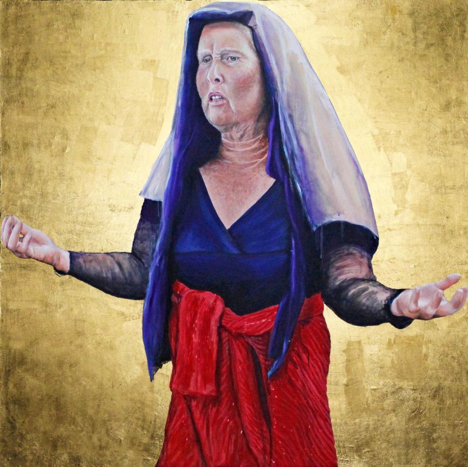 « (…) La marginalité de Madame Elyse Colette se situe ailleurs, sans doute la raison du choix d’un fond très différent de celui des autres portraits, un fond très profond, très noir, évoquant le côté sombre de cette femme. Toute la journée, à cap Méchant, elle récite une litanie menaçante, rythmée d’une déambulation à la gestuelle angoissante : un inventaire étrange dans laquelle « diable » et Jésus tiennent une place importante, elle serait animée d’un devoir divin. Sa logorrhée effrayante, sa peau brûlée par le soleil et ses yeux versant des larmes perpétuelles sont magnifiquement rendus en fines couches successives d’acrylique. Stéphanie Hoareau rend compte de son inquiétude, plus loin, le son de cette voix lancinante permet de mesurer cette marginalité énigmatique.(…) »