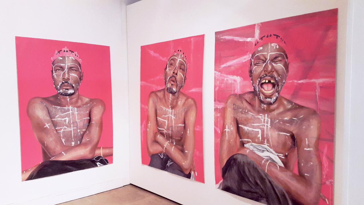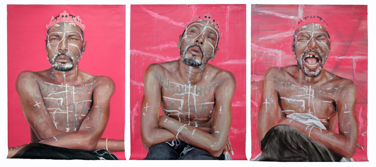 « (…) En 2012, elle entreprend un projet d’ampleur consacré aux figures marginales de l’Île. Des hommes et des femmes dont tout le monde connaît les visages et les prénoms. Des individus qui vivent à l’écart de la société, suscitant aussi bien la méfiance que la fascination. Ils sont à l’origine de légendes puisqu’à leurs propos court une multiplicité de rumeurs, d’histoires et d’anecdotes. L’artiste est allée à leur rencontre, à Saint-Denis, au Port et ailleurs, instaurant avec eux une relation de confiance, par la discussion, l’écoute, la présence et l’entraide. Au fil des jours et des semaines, Charlotte, Jean-François, Jacqueline, Maximin et Elyse sont devenus les modèles que l’artiste a photographiés et dessinés. Elle s’est concentrée sur leurs visages, leurs aspérités, mais surtout sur leurs regards qui oscillent entre errance et profondeur. Stéphanie Hoareau prend le temps de rendre visibles celles et ceux que nous croisons ou que nous évitons soigneusement. Des photographies à la peinture, en passant par la sculpture et la vidéo, l’intensité des regards nous interpelle. La confrontation des regards, les leurs, les nôtres, produit autant de fascination que de malaise. À la marginalité de ses personnages, Stéphanie Hoareau préfère la liberté et la fragilité de leurs existences en rupture avec le réel organisé de la société. »