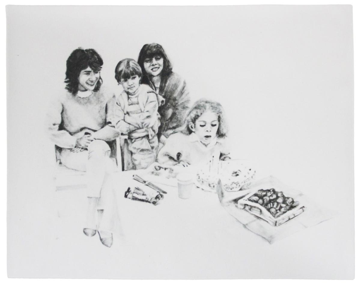 « Réactiver la mémoire pour évoquer les souvenirs et se confronter à sa propre image d’enfant, c’est un des enjeux qu’aborde la plasticienne dans ses derniers travaux. À partir d’un corpus de photos de famille, l’artiste REconstruit des scènes de la vie quotidienne ; repas du soir, pique-nique et partie de pêche. Les personnages semblent les mêmes, mais à bien y regarder… on découvre que chacun est enfermé dans son petit bout de vie ; des regards distanciés qui ne se croisent jamais soulèvent le paradoxe du vivre ensemble et des complexités de la relation. La frontière est mince entre la réalité des images et la fragilité du souvenir. »