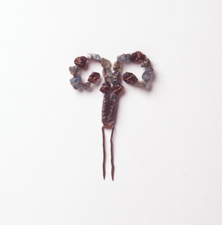 Les fibules et les épingles, luxe vestimentaire, sont en cuivre rouge, rehaussé de pierres, cheveux ou émaux, elles ornaient la poitrine de ceux dont elles retenaient le vêtement. La spirale, symbole de fertilité, d’énergie et d’éternité est largement utilisée.