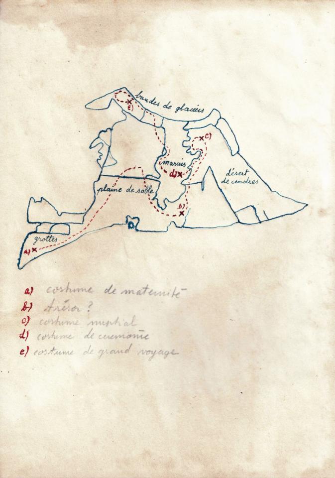 Le carnet rend compte de fouilles archéologiques menées 4000 ans après notre ère. Les divers objets et vêtements découverts lors de ces fouilles constituent le corpus montré dans l’exposition Étrangeté familière à l’Artothèque de La Réunion en 2000.