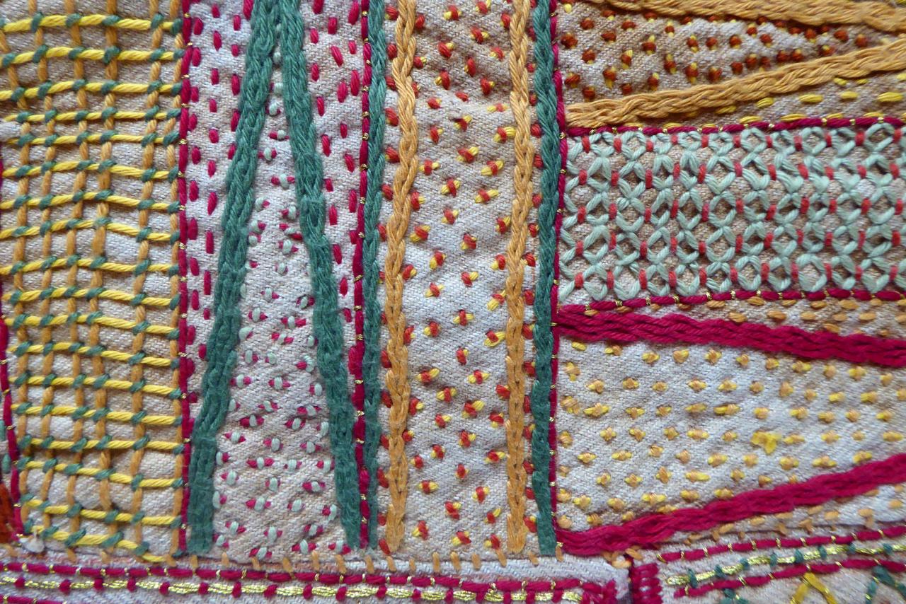 Tapis de laine rebrodée.