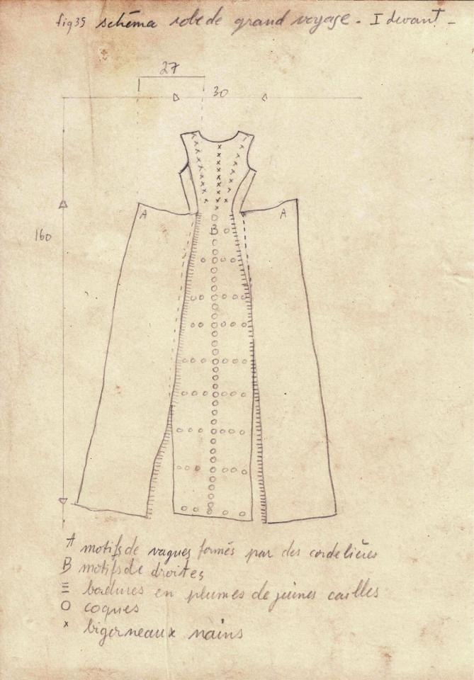 La symbolique des matériaux et des formes utilisés pour ce type de costume montre le désir du voyageur de se laisser emporter dans une ascension céleste ou encore au gré des flots vers une destinée inconnue. »