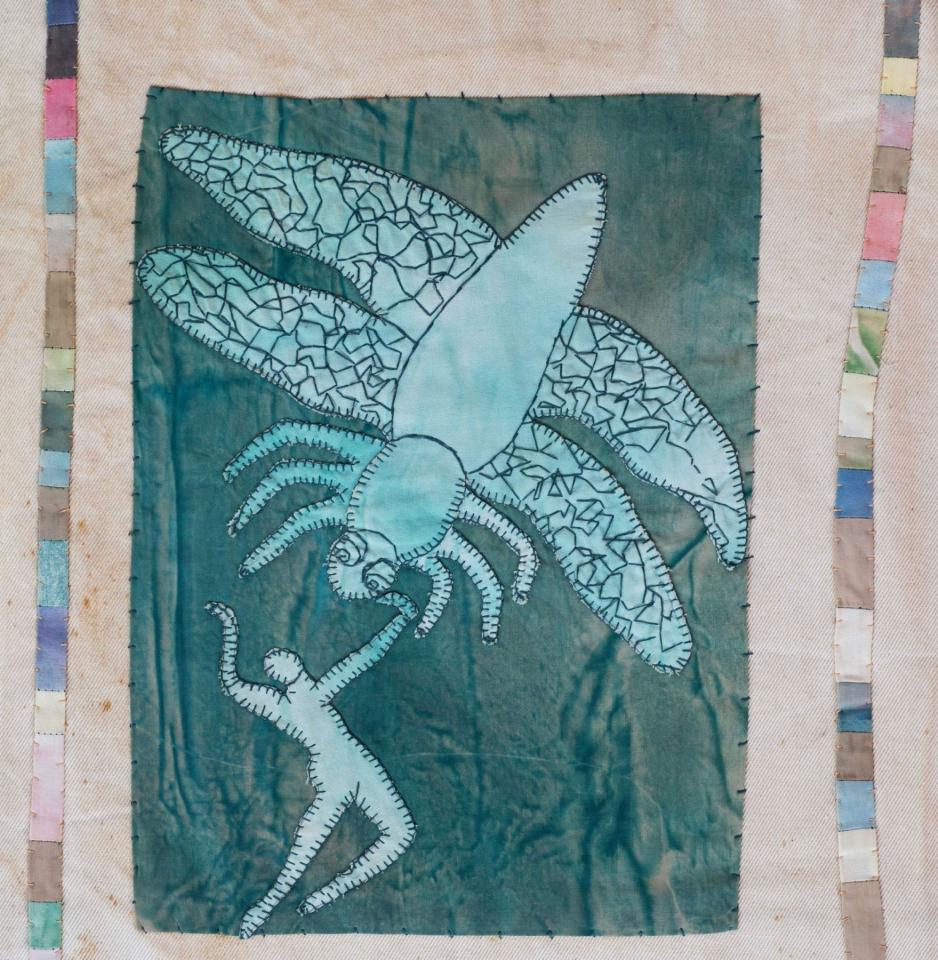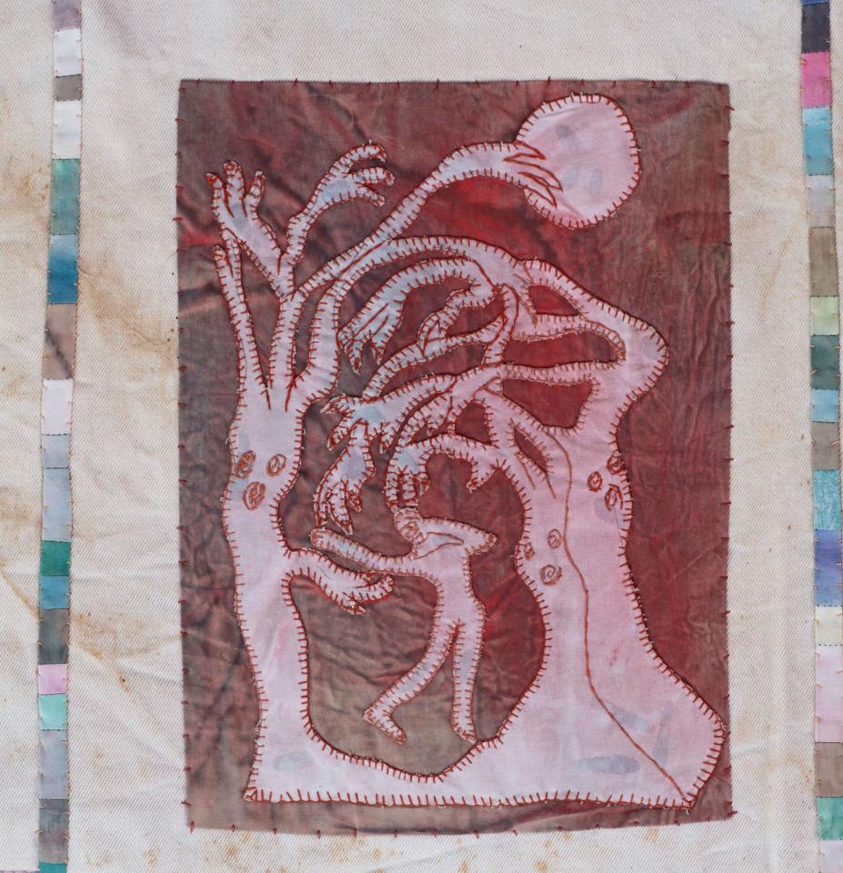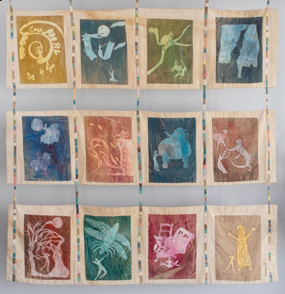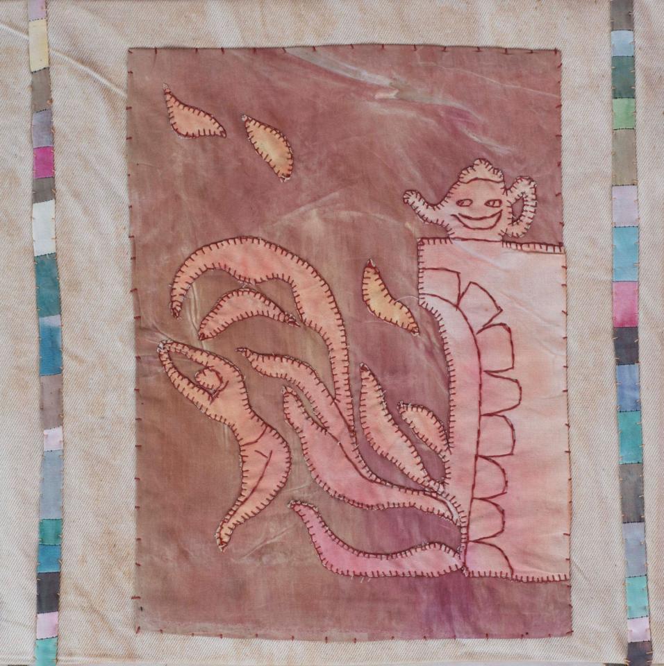 L'Enfant et les sortilèges - 1998 L’Enfant et les sortilèges, 1998Broderies sur toile de coton teint, 150 x 143 cm.Photographie © Documents d’artistes La Réunion