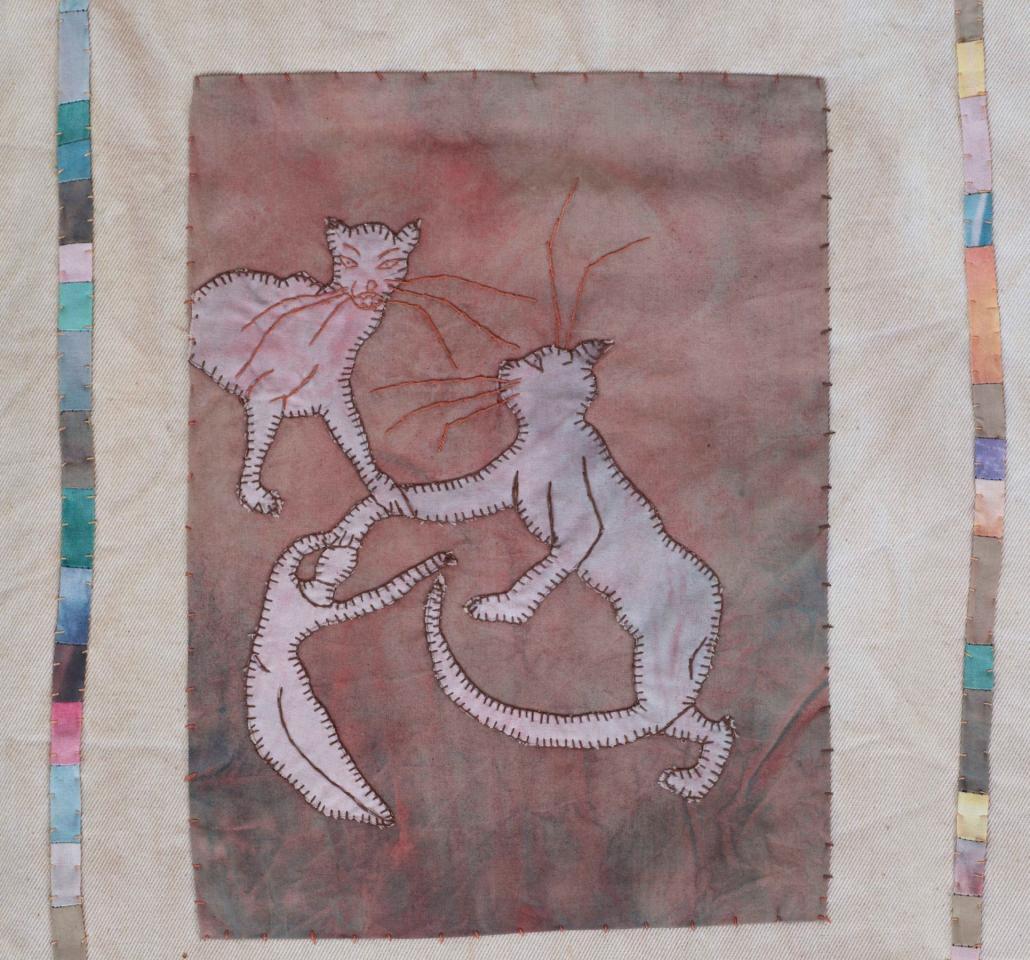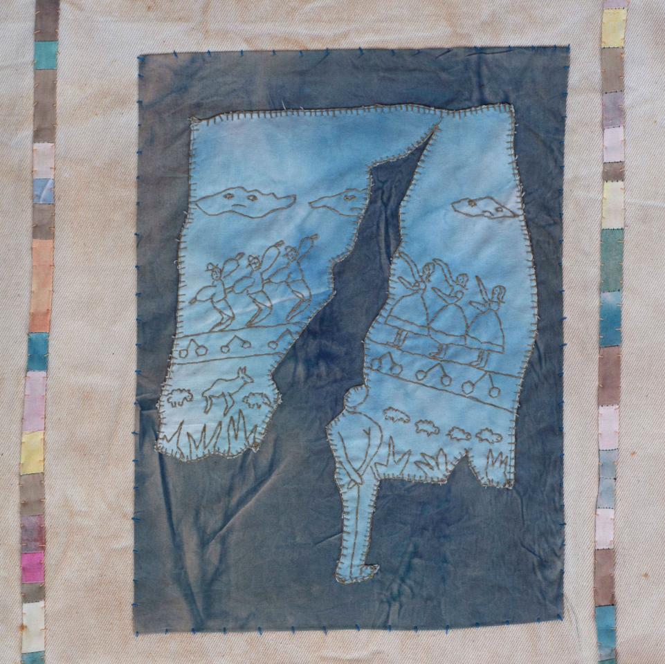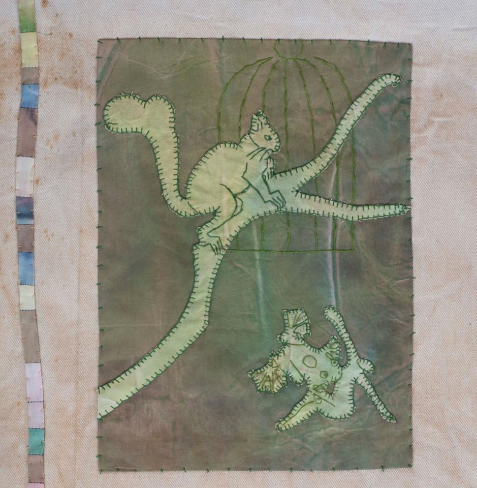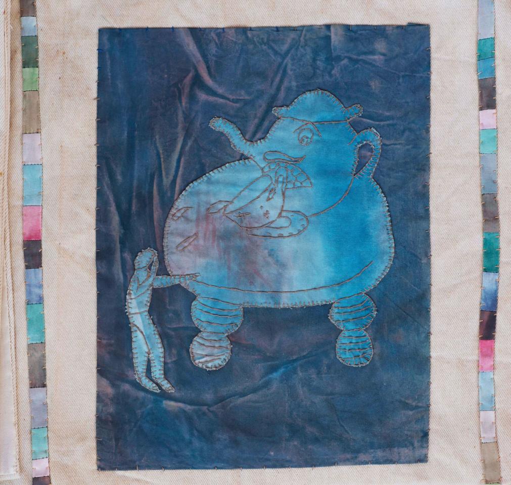 L'Enfant et les sortilèges - 1998 L’Enfant et les sortilèges, 1998Broderies sur toile de coton teint, 150 x 143 cm.Photographie © Documents d’artistes La Réunion