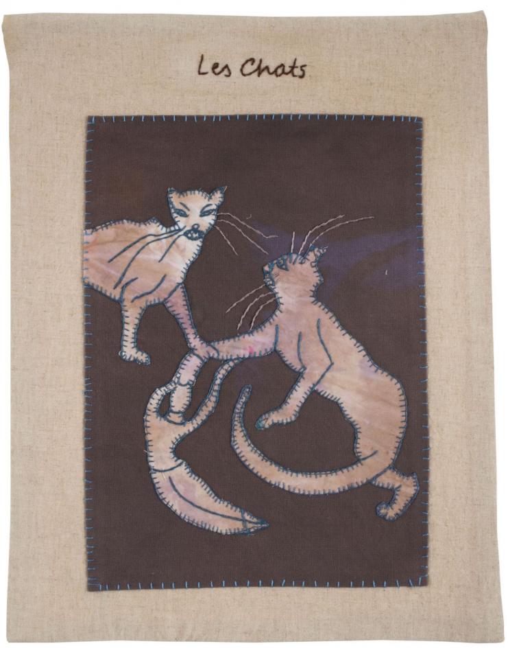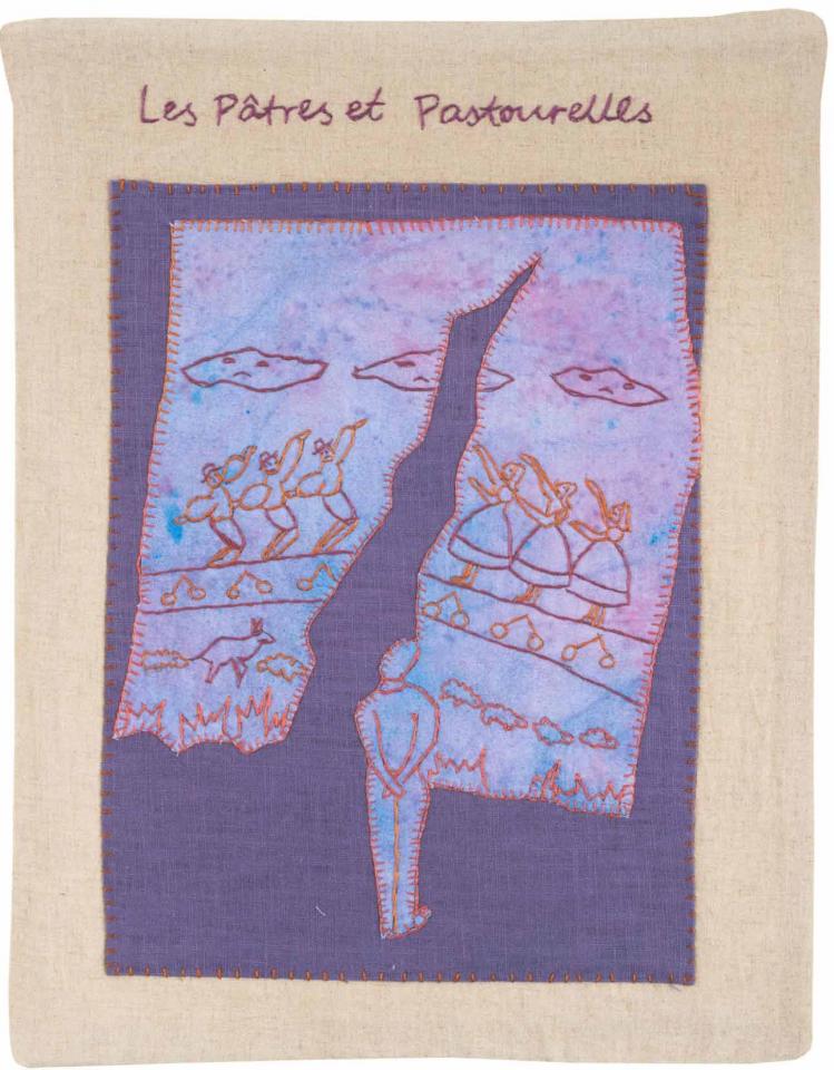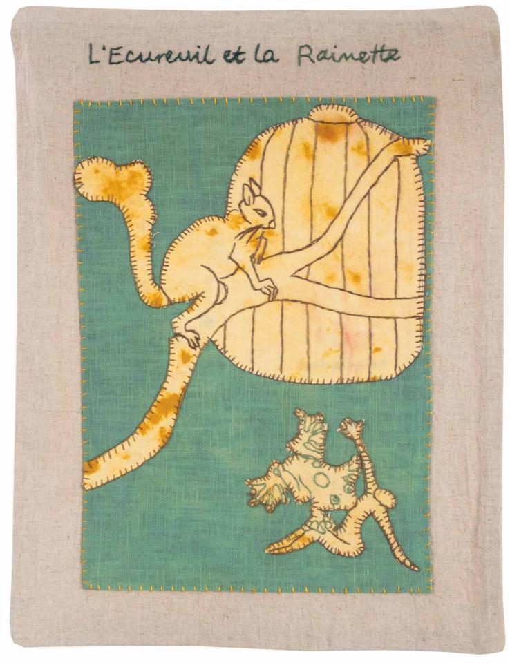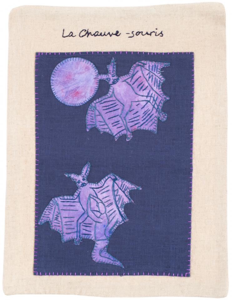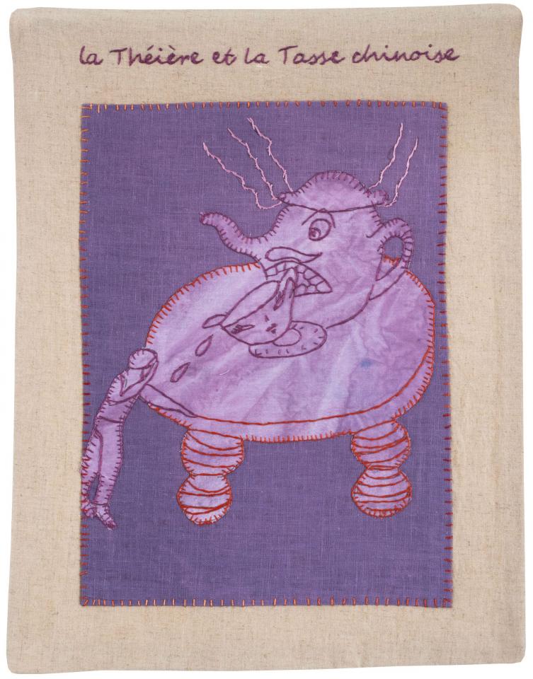 L'Enfant et les sortilèges - 2024 L’enfant et les sortilèges, 2024Broderies sur toile de coton et lin teint, douze tableaux de 42 x 32 cm.Photographies © Documents d’artistes La Réunion