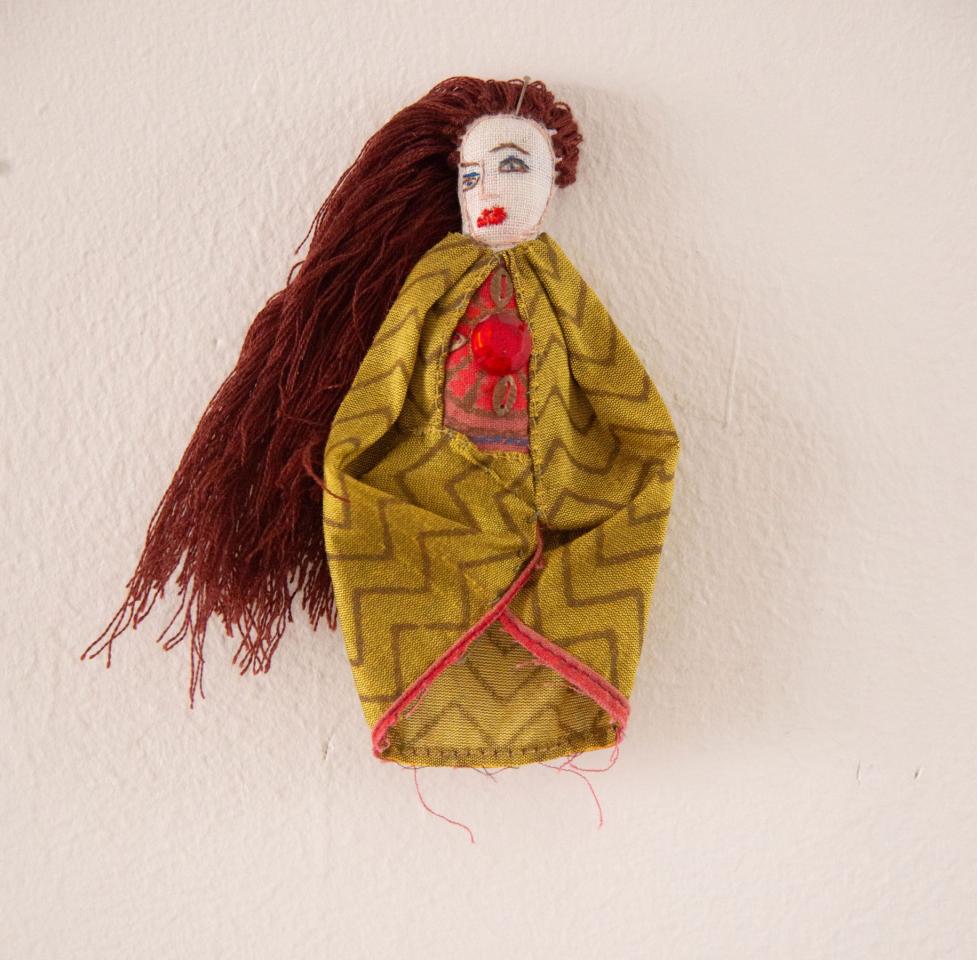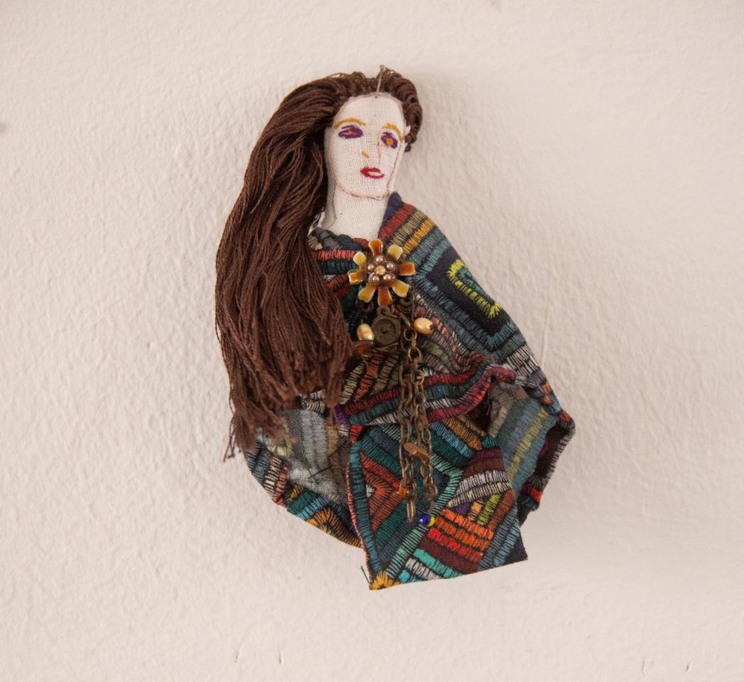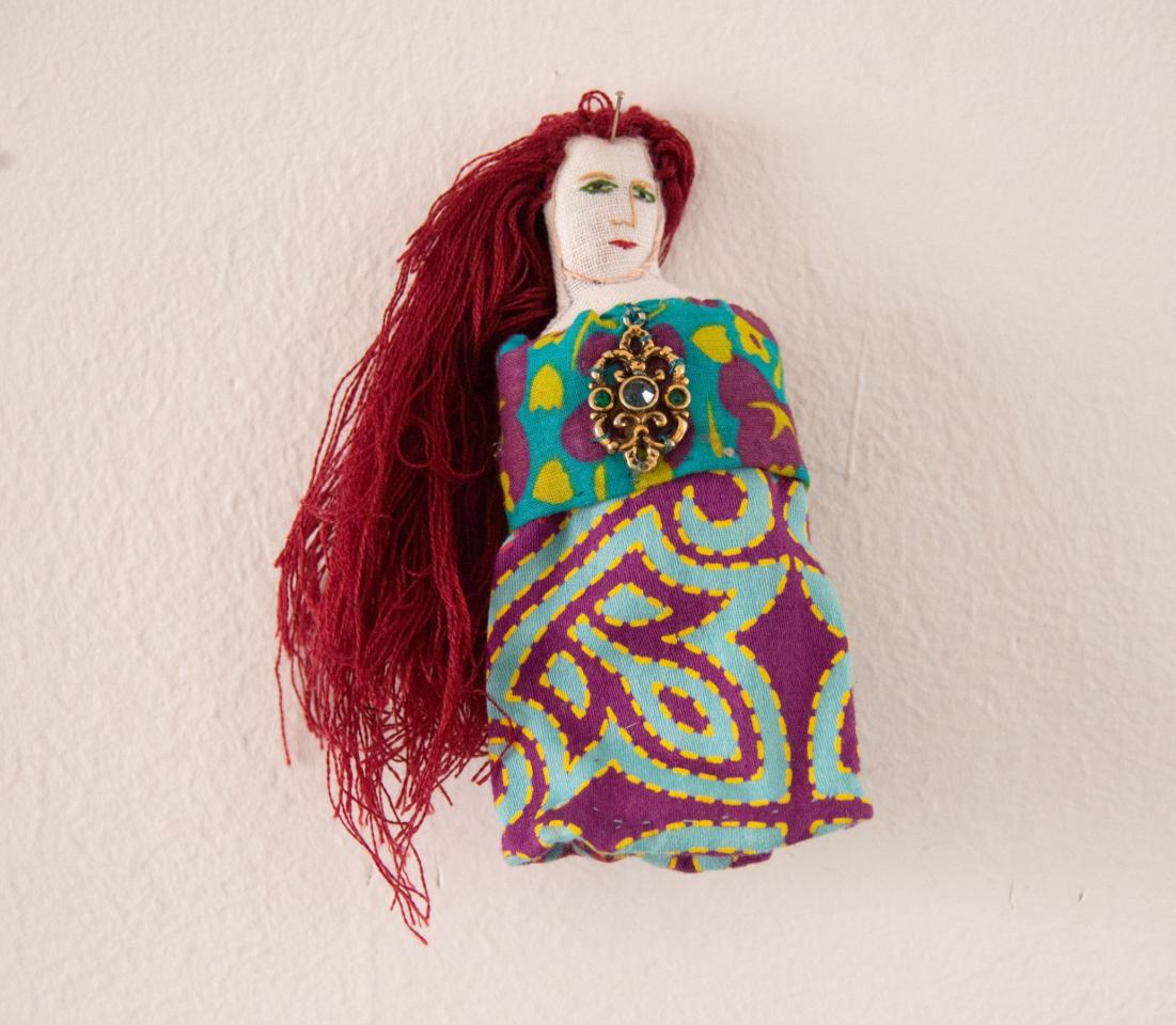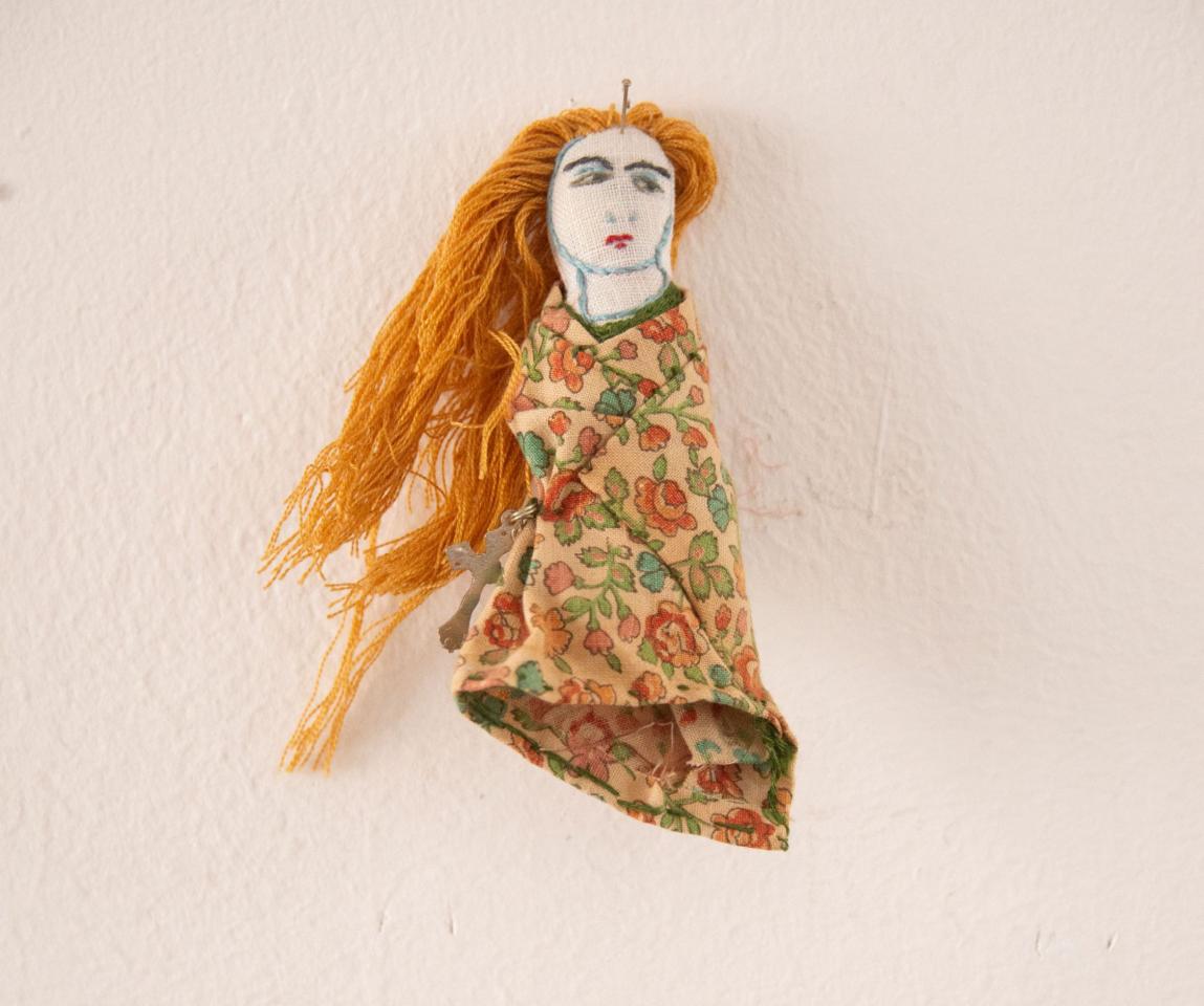 Bustes cousus et rebrodés, fil à broder, tissu, perles, pièces de bijoux et de chapelets, médailles, 10 à 18 cm.