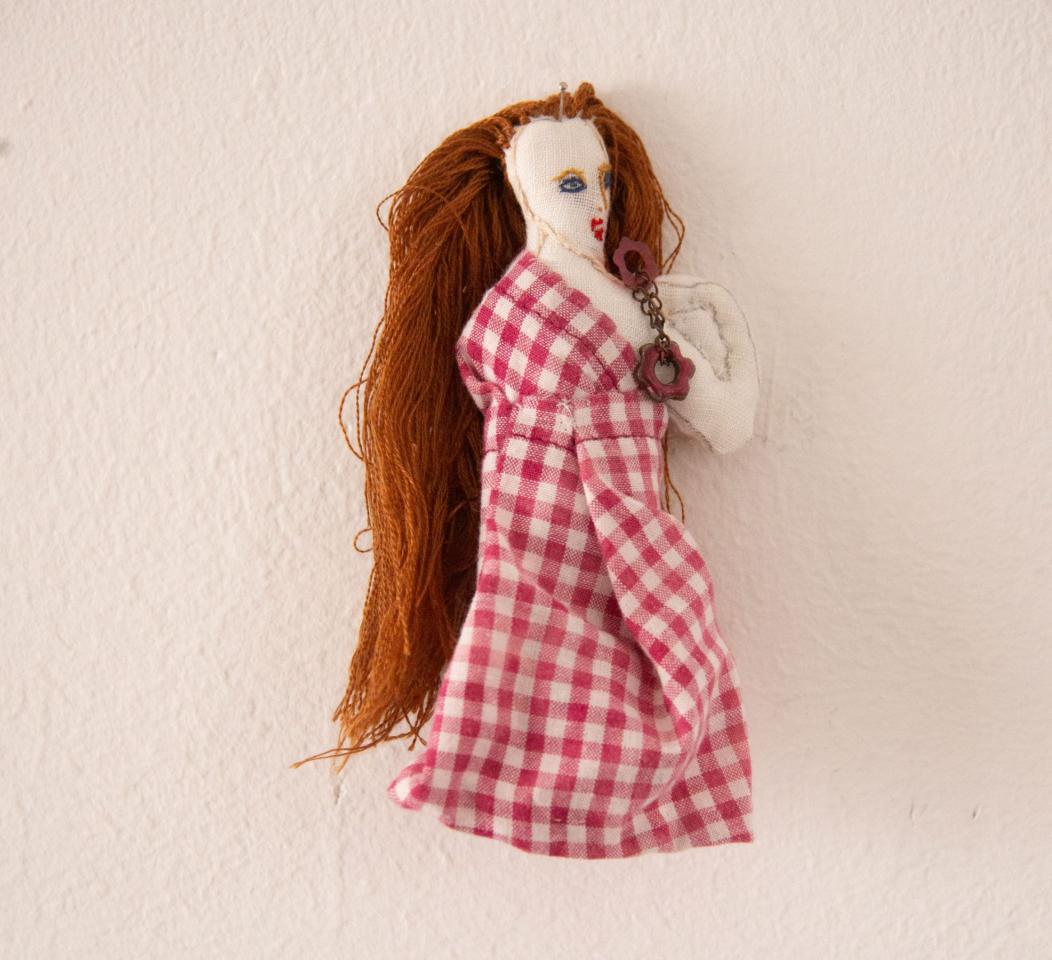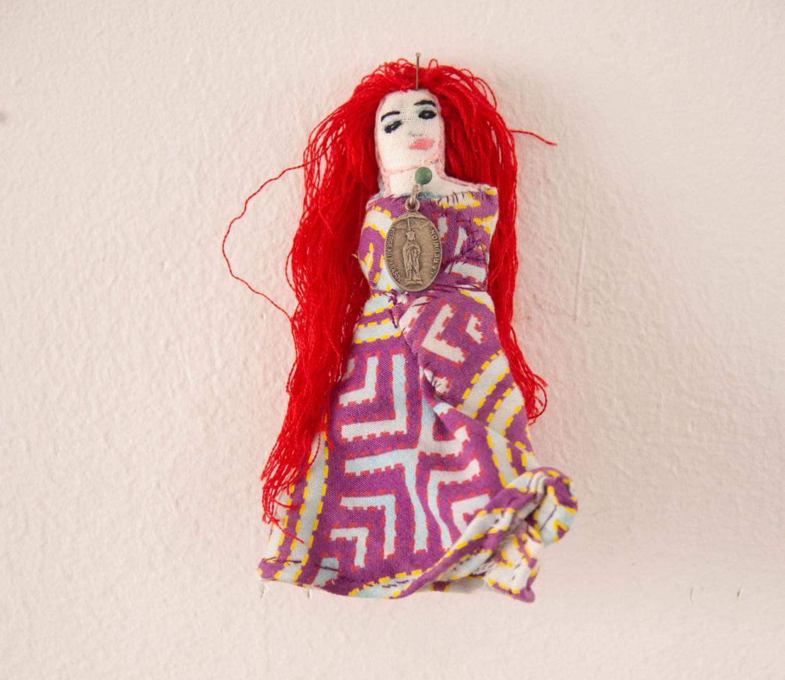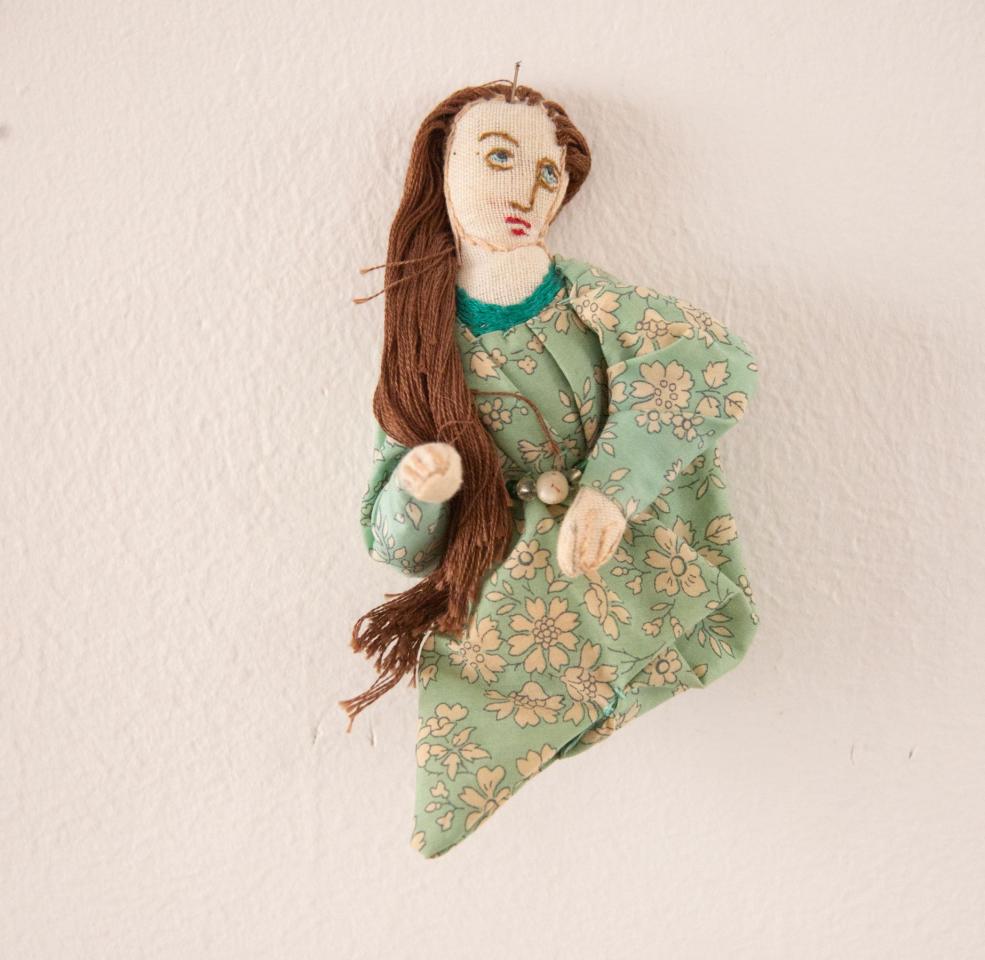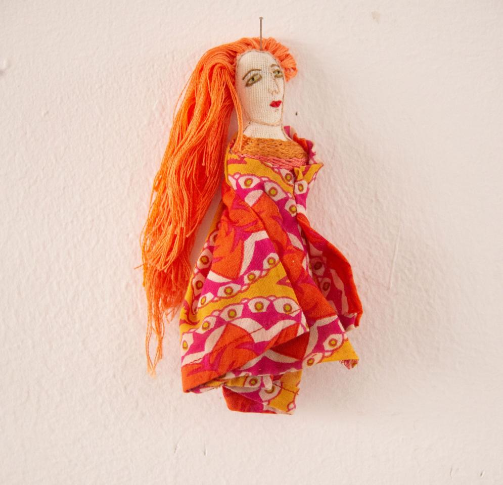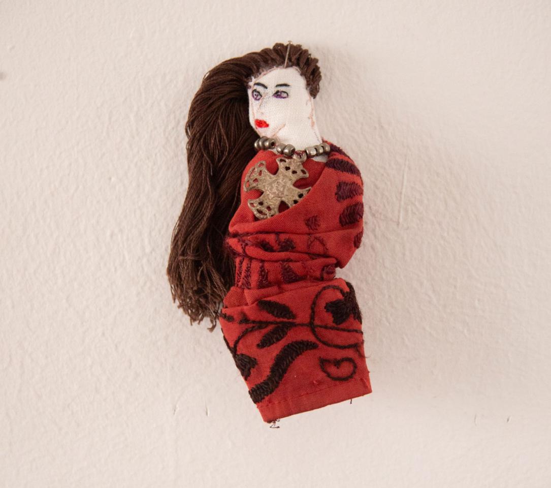 Bustes cousus et rebrodés, fil à broder, tissu, perles, pièces de bijoux et de chapelets, médailles, 10 à 18 cm.