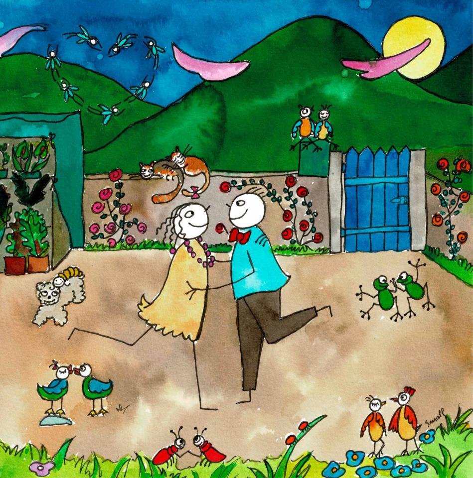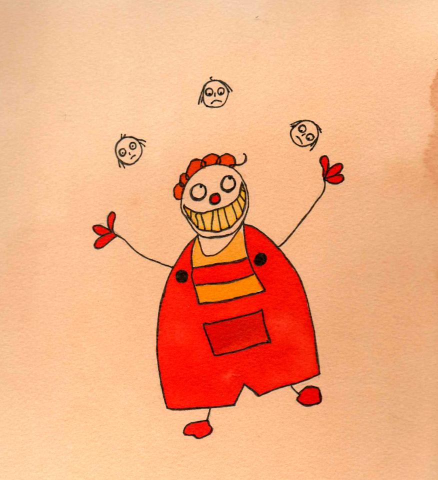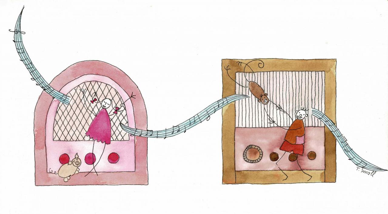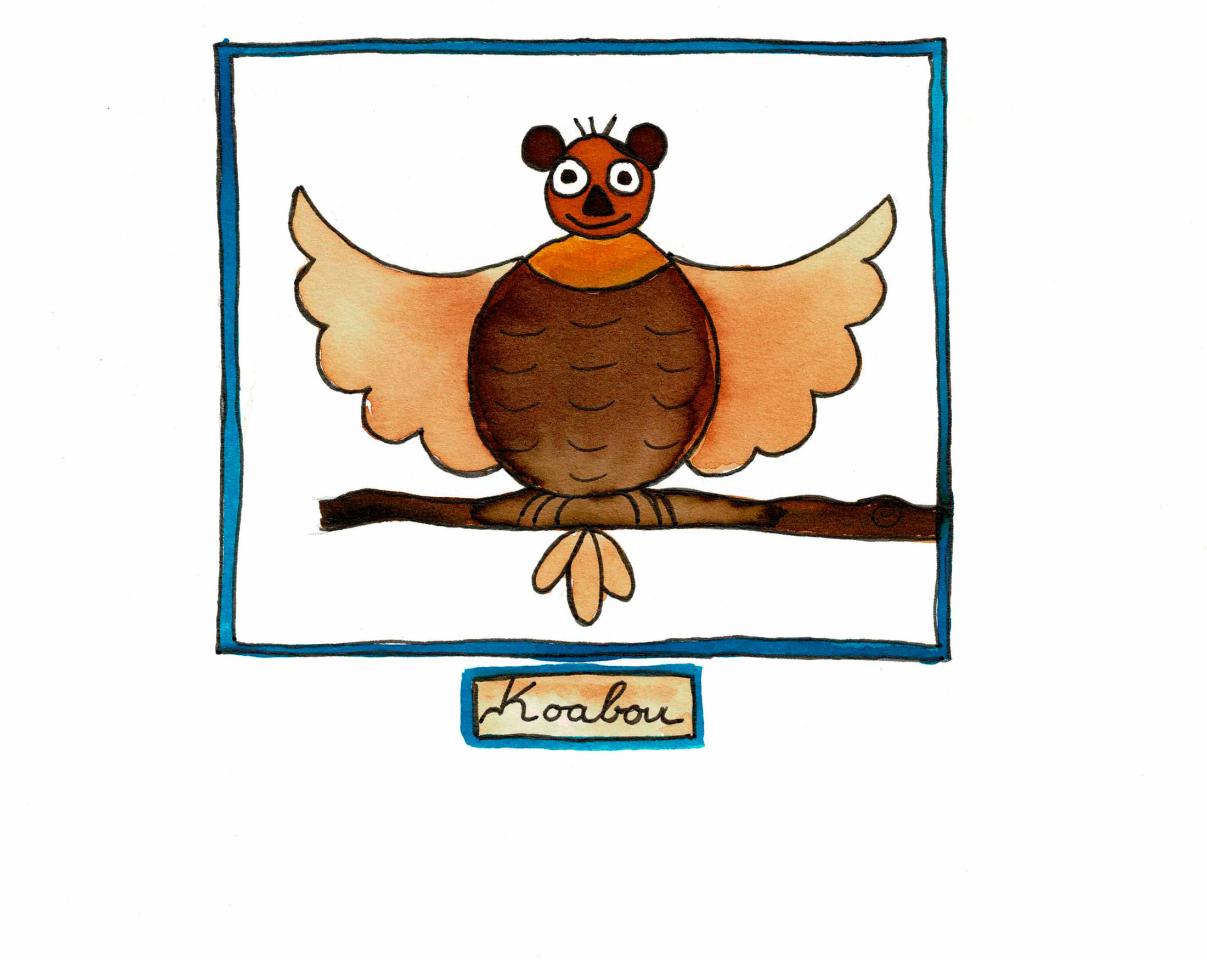 Illustrations pour l’album jeunesse bilingue Comme singe et cochon, texte Catherine Saget et François Robert, édition ThéatrEnfance, 2001.