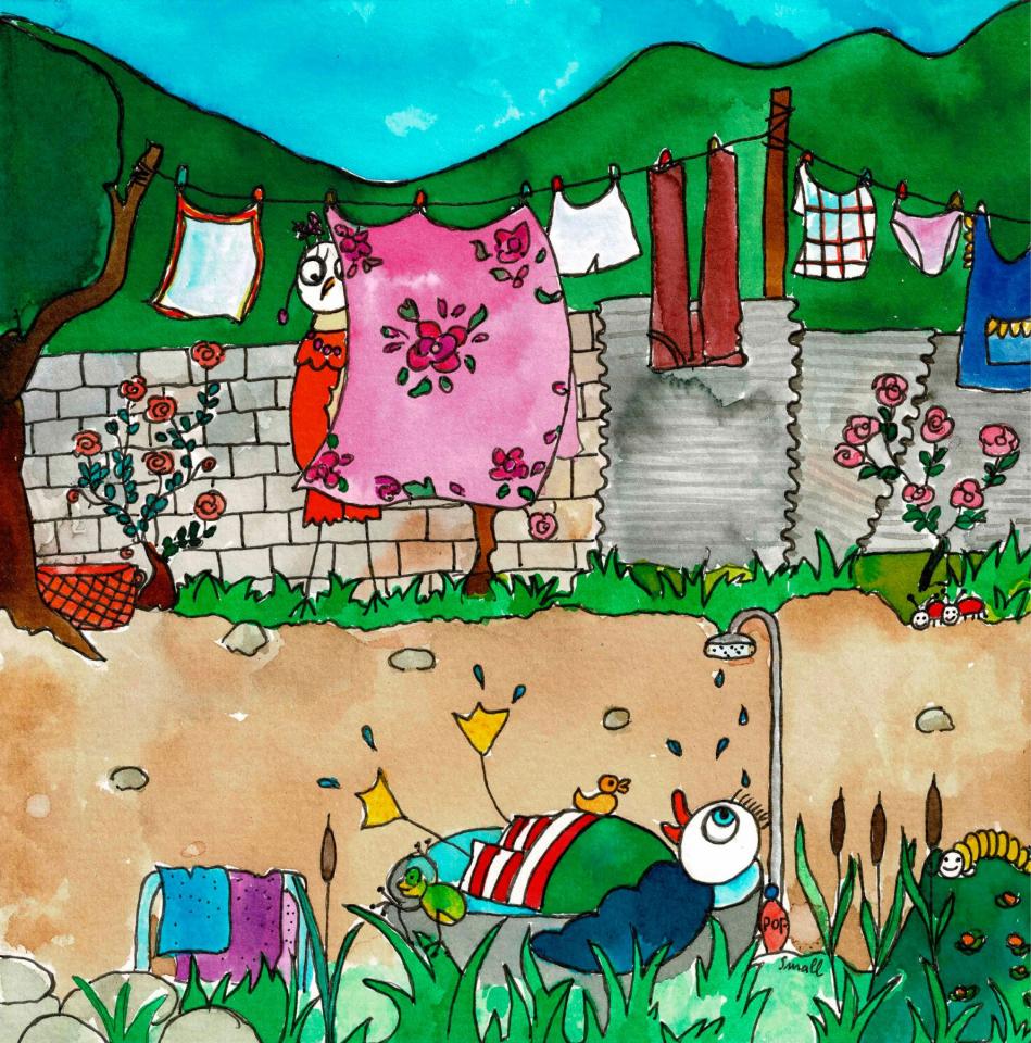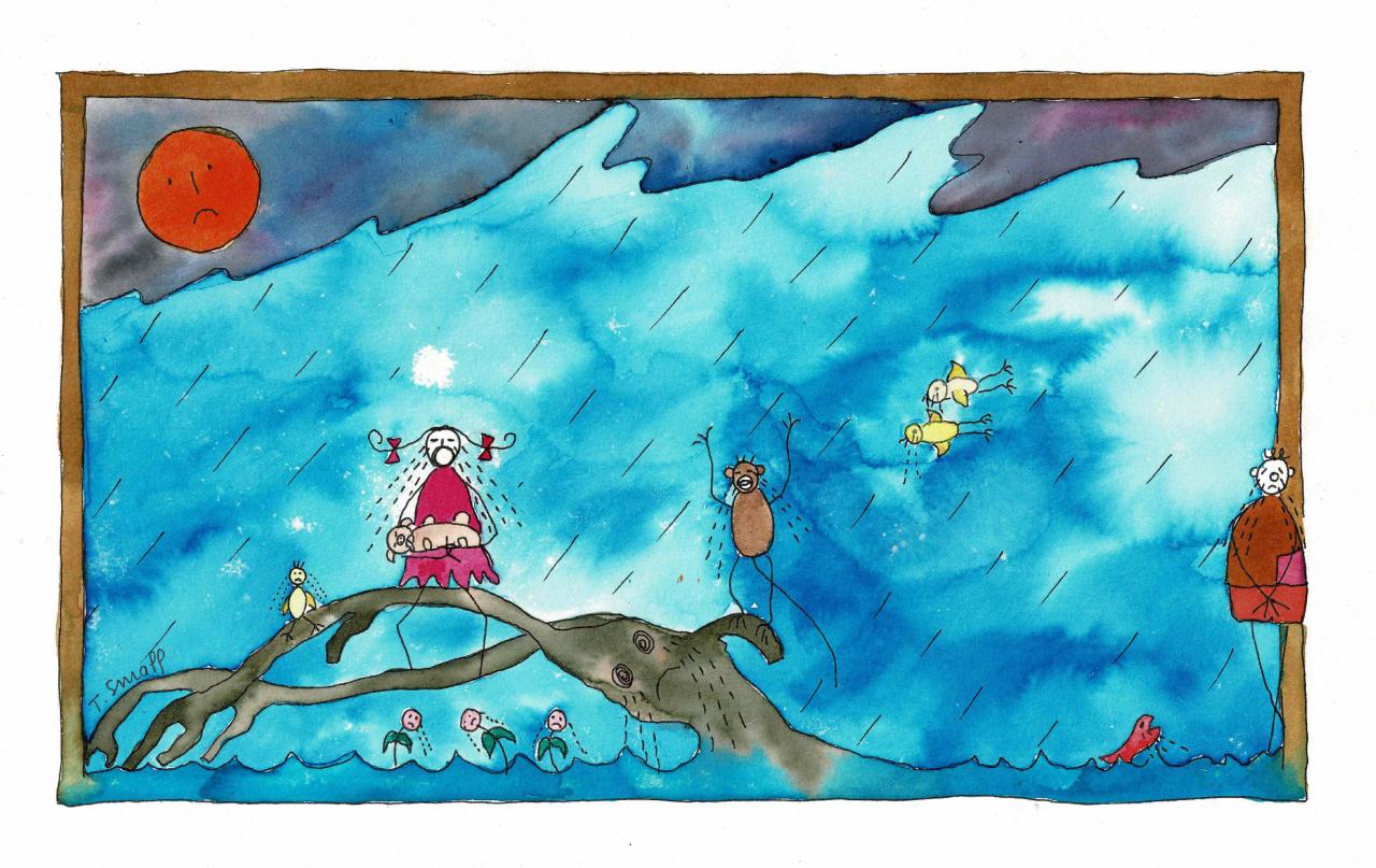 Illustrations pour l’album jeunesse bilingue Trop petits, texte Catherine Saget et François Robert, édition ThéatrEnfance, 2003.