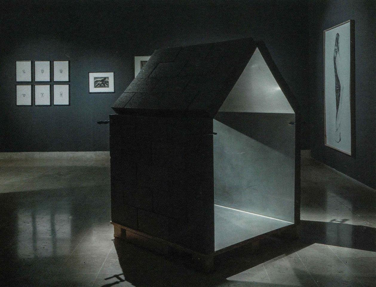 Lorsque nous discutons ensemble de son travail, Tiéri Rivière me parle d’architecture, et notamment celle des cases créoles, dont la fameuse TOMI, un modelé de maison modulable, popularisé par un homme d’affaire réunionnais, Maurice Tomi, que l’on retrouve désormais dans tout l’océan Indien. Reprenant les codes de cette architecture, qui traduit, selon les mots de l’artiste, un système « sclérosant et déshumanisé », la sculpture qu’il présente dans le jardin du musée est toute de piques, de pointes, de fers. S’effondrant presque sur le spectateur, sa grille évoque les barreaux d’une prison, plus qu’elle n’invite à investir un foyer. La légèreté des billes, mobiles, incontrôlables, qui ne cessent d’échapper à la main de l’artiste, semblent en parfaite contradiction avec cette structure rigide et déshumanisée, qui questionne ouvertement puis détourne certains usages créoles.