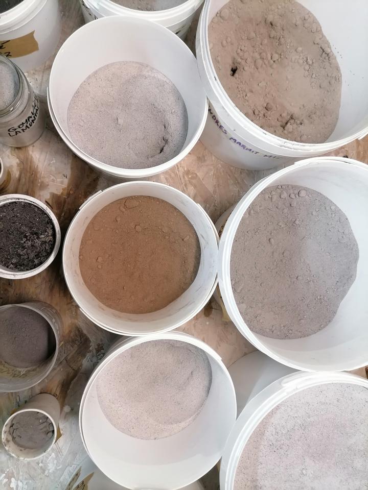 Le jardin est un être vivant. De la fraîcheur de l’hiver austral à la moiteur bouillonnante du mois de décembre, il vit au rythme des saisons. Mais sa flamboyante végétation doit partager son espace vital avec ce qui la verra disparaître demain. Des volutes de fumée montent dans les airs, un feu est allumé dans un bidon métallique. Le terrain garde la trace des feux passés, froids, peut-être encore un peu tièdes. Qui sait. Celui du jour est incandescent, l’artiste s’y attache. Elle est à l’œuvre. Issus d’une sélection rigoureuse d’écorces, de troncs, de feuilles, de cosses ou de pelures des espèces en présence, les végétaux entament leur irrémédiable transmutation. Léchés par les flammes, ces organismes pluricellulaires, capables grâce à la photosynthèse de transformer la matière minérale prélevée dans leur milieu de vie pour produire leur propre matière organique, sont rapidement réduits en cendre pour devenir minéraux à leur tour. Avide de savoirs ancestraux, formée à la céramique traditionnelle comme contemporaine, Alice Aucuit mène une recherche territorialisée sur les cendres de végétaux. Initiée à partir de rebuts (déchets d’élagage, sarments, foins fauchés, plantes de marécages, paille de riz, cosses de café, fleurs coupées), elle s’appuie sur le travail effectué par le Bureau de recherches géologiques et minières sur les sols et gisements réunionnais. De la composition organique de la plante, de son lieu de croissance, de la saison et de l’élément récolté va dépendre la composition des cendres, et donc les caractéristiques de l’émail qui sera réalisé à haute température. Les émaux de cendre, apparus en Chine sous la dynastie Zhou (−1100), permettaient d’imperméabiliser les poteries. Aujourd’hui ils offrent à l’artiste un champ de possibles dans la réalisation de ses pièces, tant au niveau conceptuel que visuel.