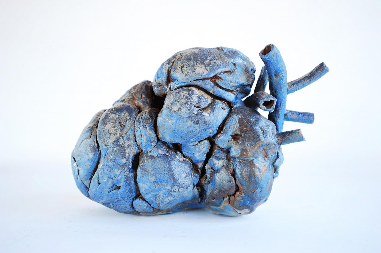 Une pulsation sourde rythme son œuvre. À chaque projet, un kèr (cœur, en créole) prend forme dans les surplus de matière enlevés lors de l’évidage, au moment précis où l’argile a la consistance dite « du cuir ». Ces organes vitaux se glissent dans les cuissons, figés par le feu dans l’éternité. Ils se parent alors d’atours, résultats du travail d’enquête mené par l’artiste sur les cendres pour l’obtention de ses émaux endémiques, que l’on retrouvera utilisés à bon escient dans ses travaux suivants. Un jour, peut-être, exaucera-t-elle également ce souhait (in)avouable d’intégrer des cendres de crémation à son œuvre, car « introduire de la cendre dans les émaux, c’est introduire dans sa recherche la complexité de la vie3 . »