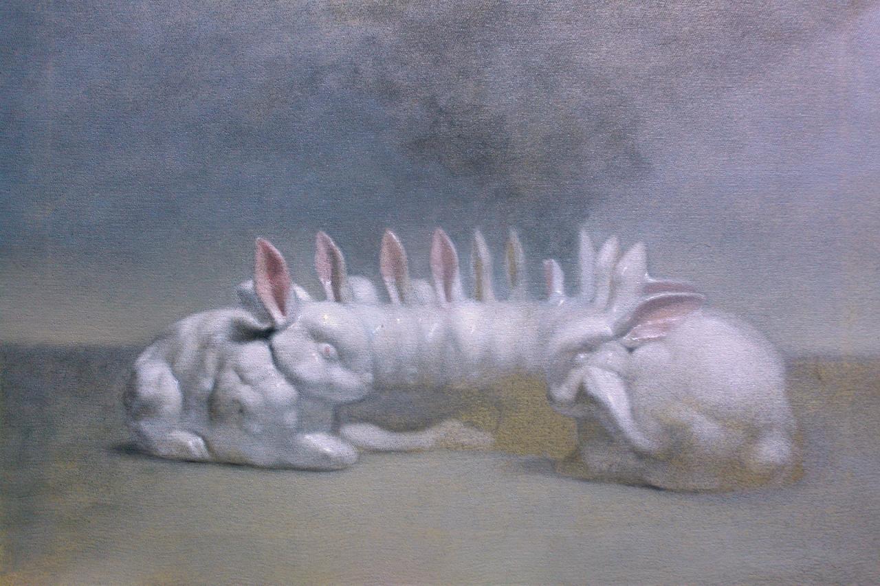 Étudier un pan de la création artistique contemporaine à l’aune de cette notion permet de lier diverses productions plastiques à travers un lexique qui serait davantage associé à la cuisine qu’au domaine artistique : le doux, le calme, le sucré, le mousseux. Une approche picturale du sopitif apparaît particulièrement féconde, en ce que la peinture s’entend elle-même comme une préparation, une émulsion, une plasticité et une stratification. Le sopitif, donc, comme fonctionnement de l’image mais aussi comme métaphore de la peinture : nappage, base, couches, glacis (glaçage). De manière littérale ou figurée, Abel Techer et David Wolle entretiennent, dans des pratiques plastiques différentes, un rapport à cette notion. Les peintures de ces deux artistes ont ceci de commun qu’elles convoquent une vision rapprochée de l’objet peint, vision où la figure ne se soustrait pas au changement. Le sopitif relève de cette double thématique : l’une est celle des matières semi-liquides (fluides, viscosités, mousses, crèmes), l’autre est associée à l’état transitoire, fugitif, inconstant de l’individu social (Abel Techer) ou de l’informe (David Wolle). À travers les motifs de la gestation et de la régénérescence, le sopitif abonde dans le sens d’une mythologie de l’origine. Chez Abel Techer comme chez David Wolle, se retrouvent de manière singulière les colifichets de l’enfance : lapins de porcelaine, pompons et bibelots pour le premier, guimauves, pâtes à sel ou à modeler, et décorations de sucre pour le second. Pour Abel Techer, l’accumulation de couches et de glacis répète celle de l’épiderme, qui se recrée symboliquement à chaque mue du sujet. La crème et le lait restaurent ou renforcent les qualités physiques de cel·lui qui les consomme·: « Le lait est cosmétique, il lie, recouvre, restaure. De plus, sa pureté, associée à l’innocence enfantine, est un gage de force, d’une force non révulsive, non congestive, mais calme, blanche, lucide, tout égale au réel » (Roland Barthes). Enduits de mousse à raser, enveloppés d’une brume laiteuse, les corps gender fluid et imberbes d’Abel Techer se fondent dans l’espace environnant dans une non-délimitation des contours. L’individualité ne les enferme pas plus dans l’espace que dans le temps : le flou rappelle leur statut mutant, le blanc - y compris dans sa symbolique classique de lactescence virginale - les ramène à un état pré-natal. Dans les peintures de David Wolle se retrouve un même principe de transformation : à partir de maquettes numériques ou de sculptures en pâte à modeler, l’artiste dresse des architectures molles et polymorphiques à la ligne ronde et émoussée qui échappe à une fonction évidente. Tout arrière-plan tangible évacué, l’absence d’échelle leur confère une dimension gargantuesque et autophagique où le corps sopitif se nourrit de ce dont il est fait. Comme un insecte pris au piège, il s’englue. Les crèmes de David Wolle s’affaissent, dégoulinent, se liquéfient en châteaux de pâtes d’amande qui ont cédé à l’attaque. Architecture et nourriture sont interchangeables : la vaisselle rococo ressemble elle-même à des pièces pâtissières fatiguées et à la forme défaite, comme si le contenu débordait le contenant. Il existe, pour reprendre une autre formule de Roland Barthes, un « sensualisme alimentaire » de la peinture qui peut être léchée, savourée, et qui, à la fois, « dégoûte » et « dégoutte ». La morale la repousse, l’œil la convoite. Le revêtement sopitif est dès lors un travestissement du médium pictural même, figuré dans cette cuisine rocaille où la base, l’objet premier, est sédiment, enseveli sous des couches visqueuses aux couleurs acidulées. En même temps, les formes malbâties de David Wolle tentent de ressembler à quelque chose de connu, comme des fantômes se faisant maladroitement passer pour des êtres de chair et d’os. Exciter le regard par une surenchère autant que par un camouflage serait le mot d’ordre du sopitif : l’œil trouve dans l’haptique, terme qui désigne le phénomène du toucher, un relief inédit chargé de désir. À la différence de l’optique, l’haptique convoque un espace lisse, sans profondeur visuelle, sans strie, « espace d’affects plus que de propriétés » (Gilles Deleuze). Et il n’y a pas davantage d’aspérités dans le sopitif, qui abolit, dans le vocabulaire relayé par la publicité des crèmes, les rides et la douleur.