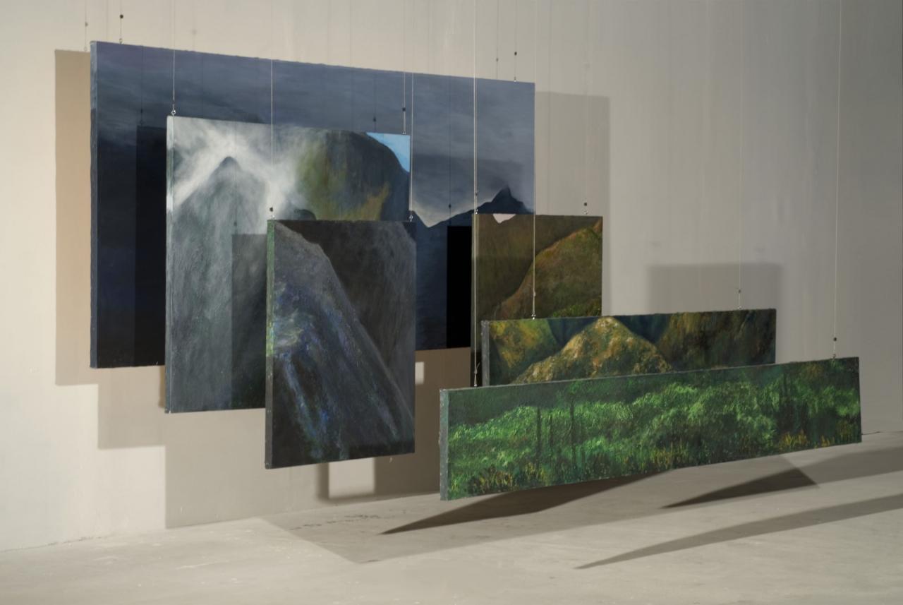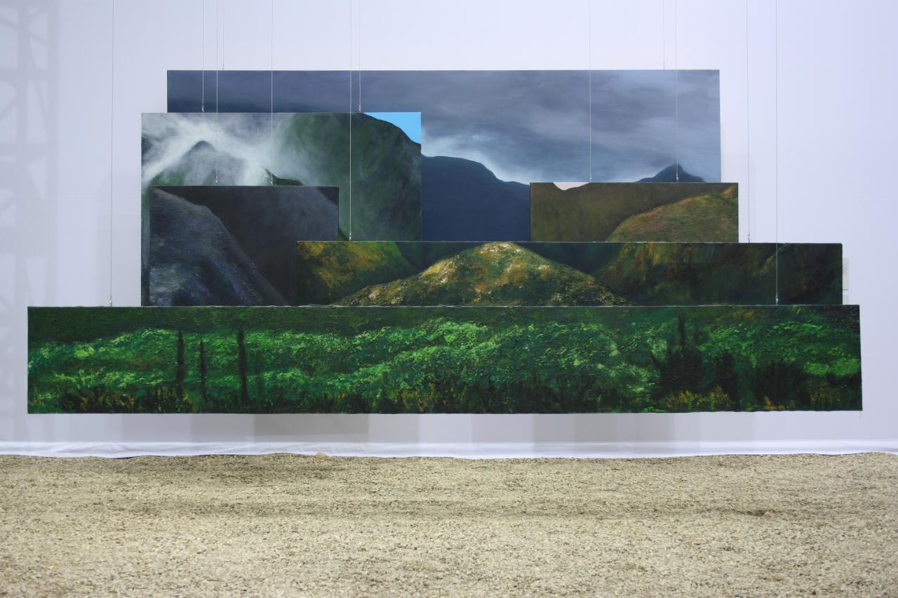 Acrylique sur toile, 150 x 300 cm (6 panneaux suspendus).