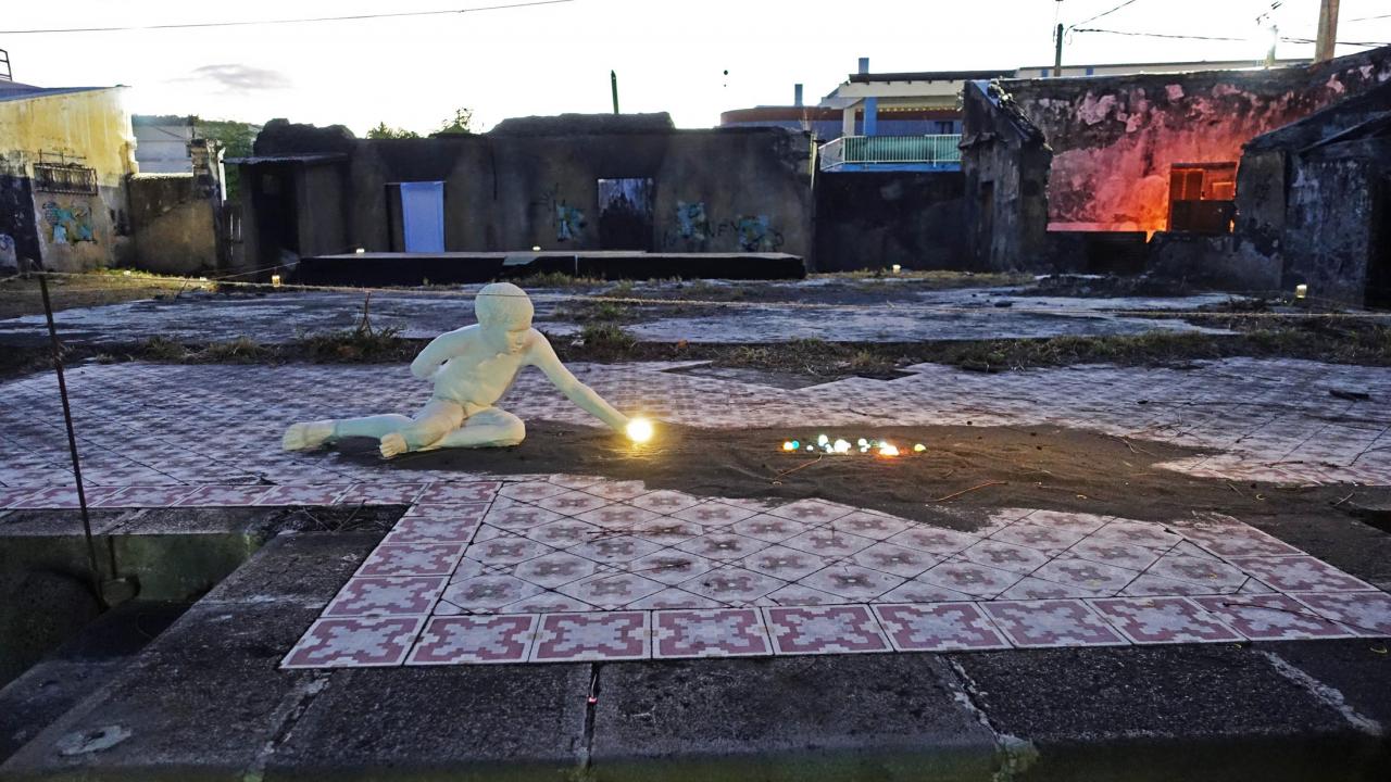 Vue de l’installation Réminiscence à la maison Pota dans le cadre du festival Réunion Métis, Saint-Paul, La Réunion, 2021.