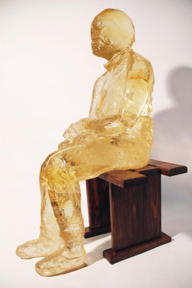Naturellement, donc, Stéphanie Hoareau a aussi fait des démarches vers d’autres errances émotionnelles. Son projet Éloges Vagabonds, entamé en 2012, teste les limites de l’artiste guérisseuse – au sens chamanique et non pas médical –, car il porte sur des personnes vulnérables, souvent atteintes de troubles mentaux. Après avoir développé une relation avec elles, l’artiste a réalisé leurs portraits à la peinture acrylique sur toile, ainsi que des dessins à la mine d’or et à la mine d’argent sur papier, puis, finalement, la sculpture Jacqueline (2014) en résine jaune pâle translucide. Toutes les œuvres de cette série portent le prénom de la personne représentée. Comme partout dans son travail, Stéphanie Hoareau se réfère à des choses et à des personnes réelles, qu’elle connaît.