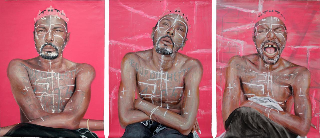 La question de la relation entre sujet et artiste se pose ici, ainsi que celle du consentement : à quel point ont-iels compris leur rôle de sujet artistique ? Mais la notion de guérison s’immisce ici ; nous ne sommes ni dans l’instrumentalisation de la relation entre l’artiste et « sa muse », ni dans une quelconque vérité véhiculée au sujet de celleux qui sont représenté·es. Les portraits ont un point focal essentiel, tous, qui est le regard. Aucun·e ne regarde l’artiste ou le·la spectateur·rice avec complaisance, dans cet espace souvent transactionnel entre regardeur·se et regardé·e. La façon dont Stéphanie peint leurs yeux montre un regard à la fois d’enfant et de personne troublée, perdu entre les strates de réalités insondables. Nous savons que derrière cette image, se cache une rencontre, et que, face à elle, se trouve un engagement éthique.